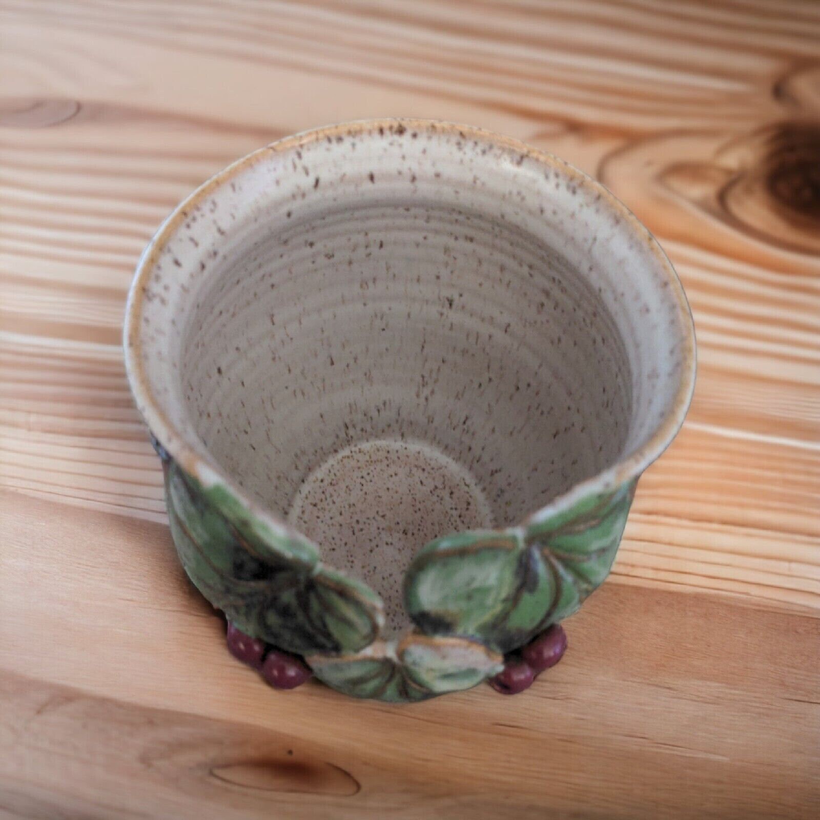Discover a unique piece of American studio pottery with this vintage Old Patagonia vase, masterfully crafted by artist Marty Frolick in 1998. This charming stoneware piece features exquisite hand-sculpted berry and leaf detailing, showcasing Frolick's signature nature-inspired style. Perfect for rustic farmhouse aesthetics, eclectic interiors, or as a distinctive addition to any pottery collection. A true heirloom piece that makes an exceptional gift.In excellent condition. No chips or cracks. It has a height of 6 inches and a width of 7 inches. F30