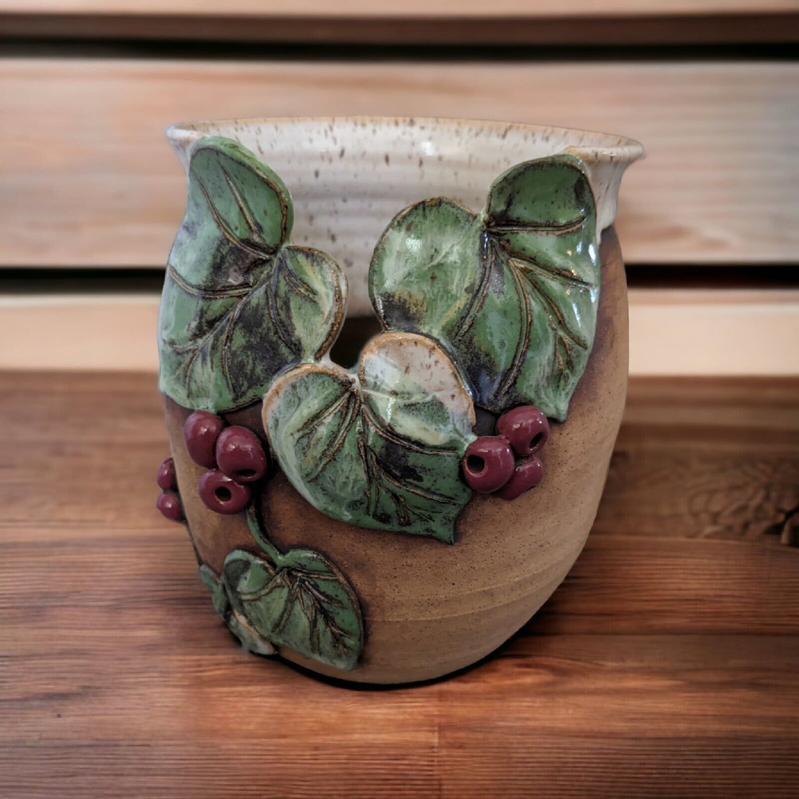 Vintage Old Patagonia Pottery Vase, Marty Frolick 1998, Hand-Sculpted Berry & Leaf Studio Pottery,Hand Sculpted Relief