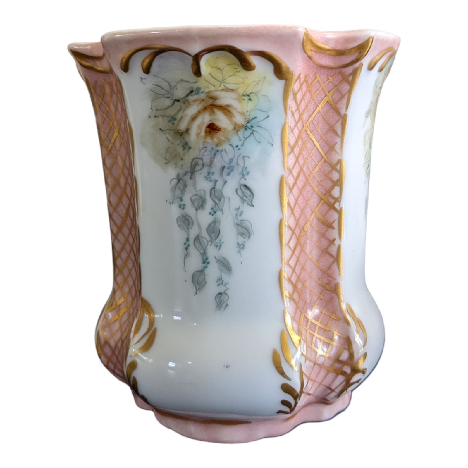 Louise Gardiner Hand Painted Porcelain Mug 2002 - Vintage Victorian Style Rose & Gold Gilt Coffee Cup - Grandmillennial Decor