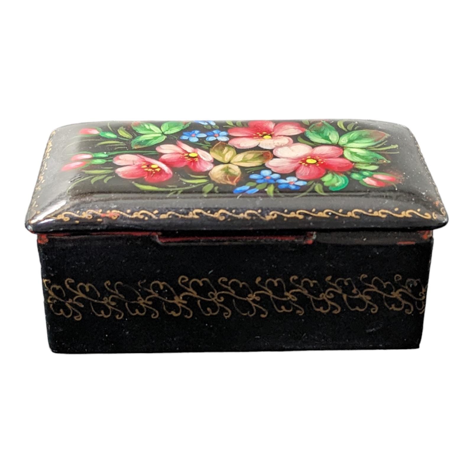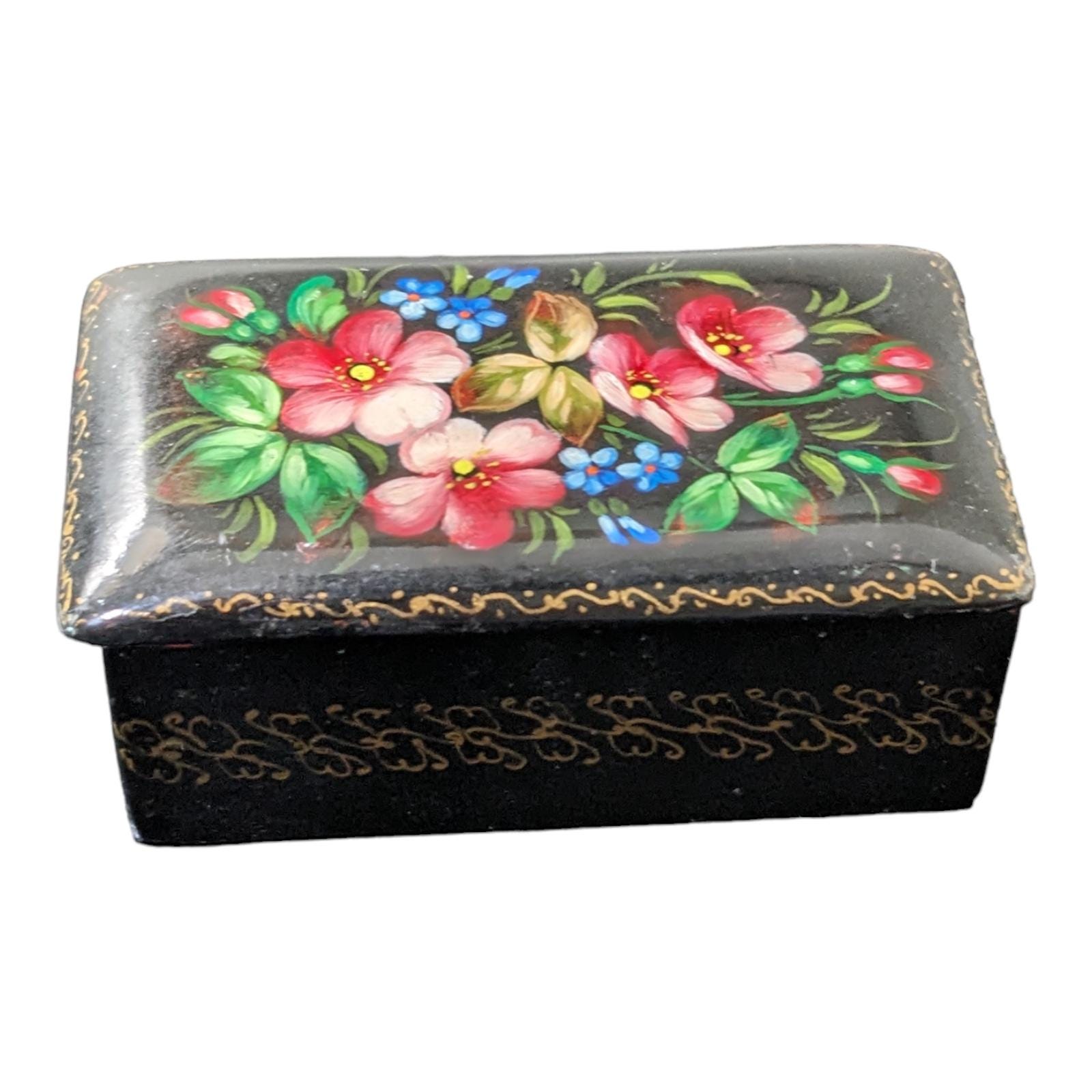 Adorable little Russian hand painted floral trinket box. 3 inches long and 2" inches wide . K17