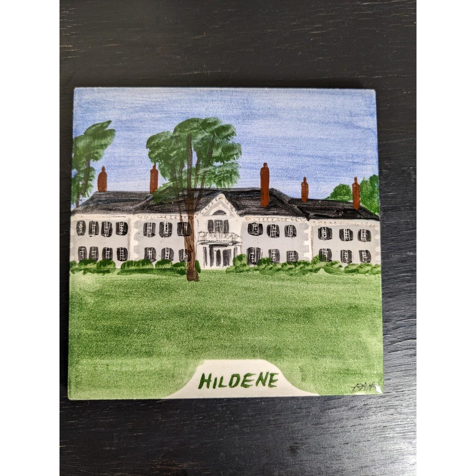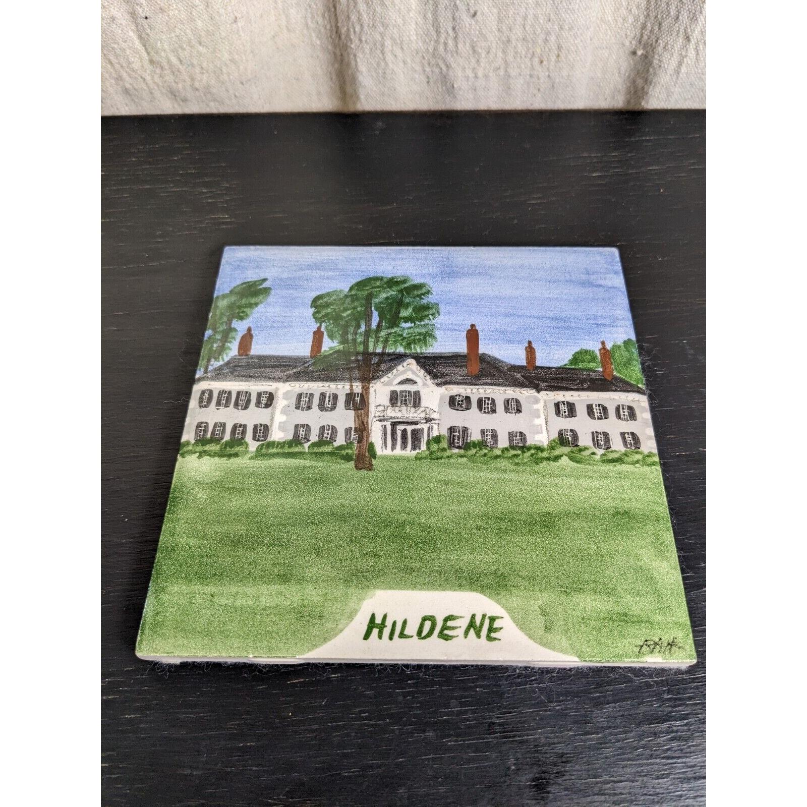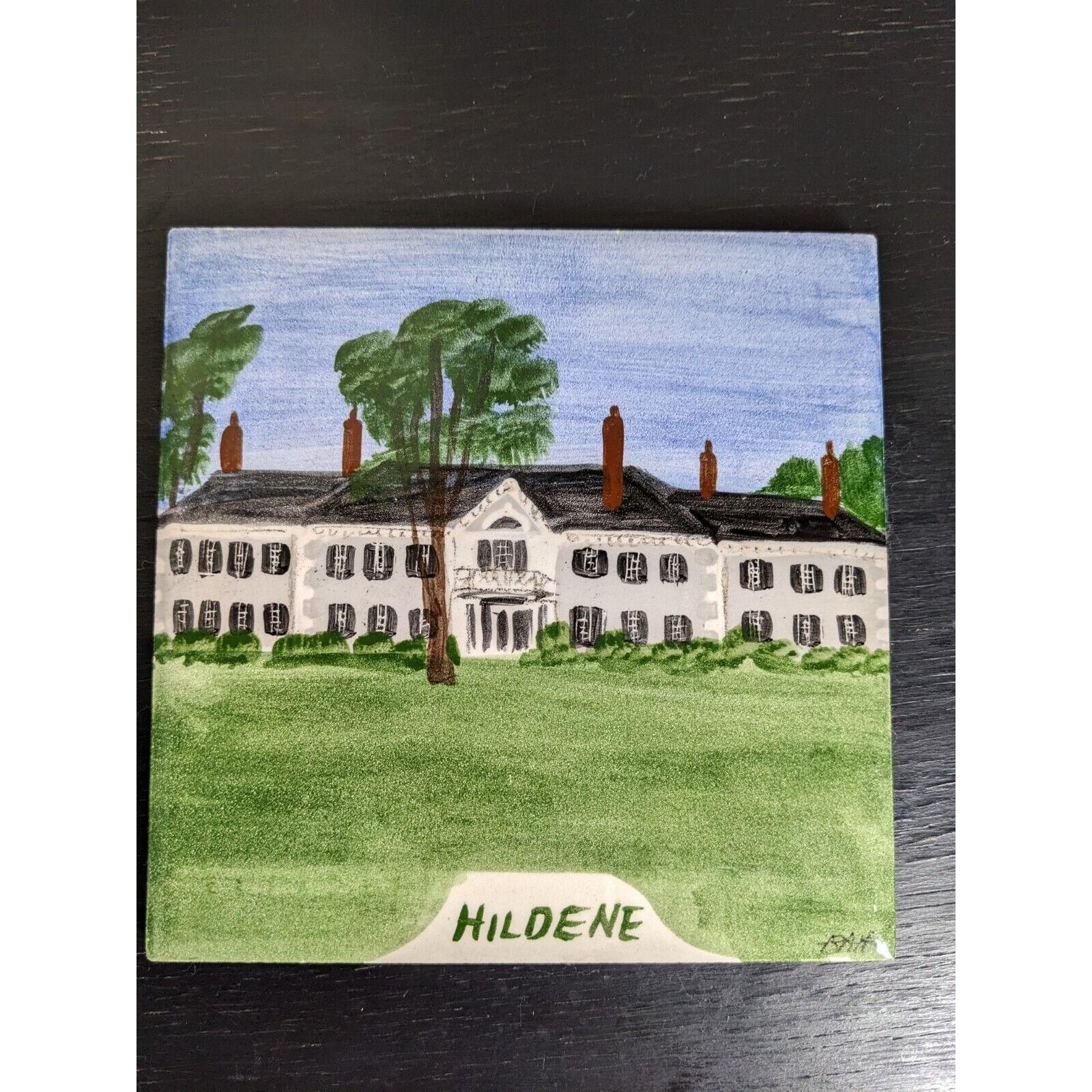 Beautiful hand painted tile of Hildene . 6 by 6 tile. Felt on back . Great vintage tile. H23