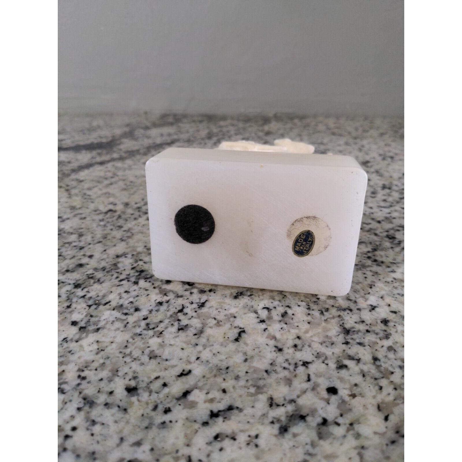 Bring a touch of timeless Italian elegance to your home with this stunning alabaster elephant sculpture by the renowned A. Giannelli. Crafted in the heart of the Volterra region—Italy’s historic center for alabaster—this piece reflects the original design intent of the Egregia workshop: blending classical sculptural techniques with mid-century sophistication.The finish is a soft, matte off-white that captures light beautifully, highlighting the gentle curves of the trunk and the powerful stance of the animal. Made of recomposed alabaster on a solid stone /marble base . 6 1/2" inches tall and approximately 4 inches wide.Excellent vintage condition. M2