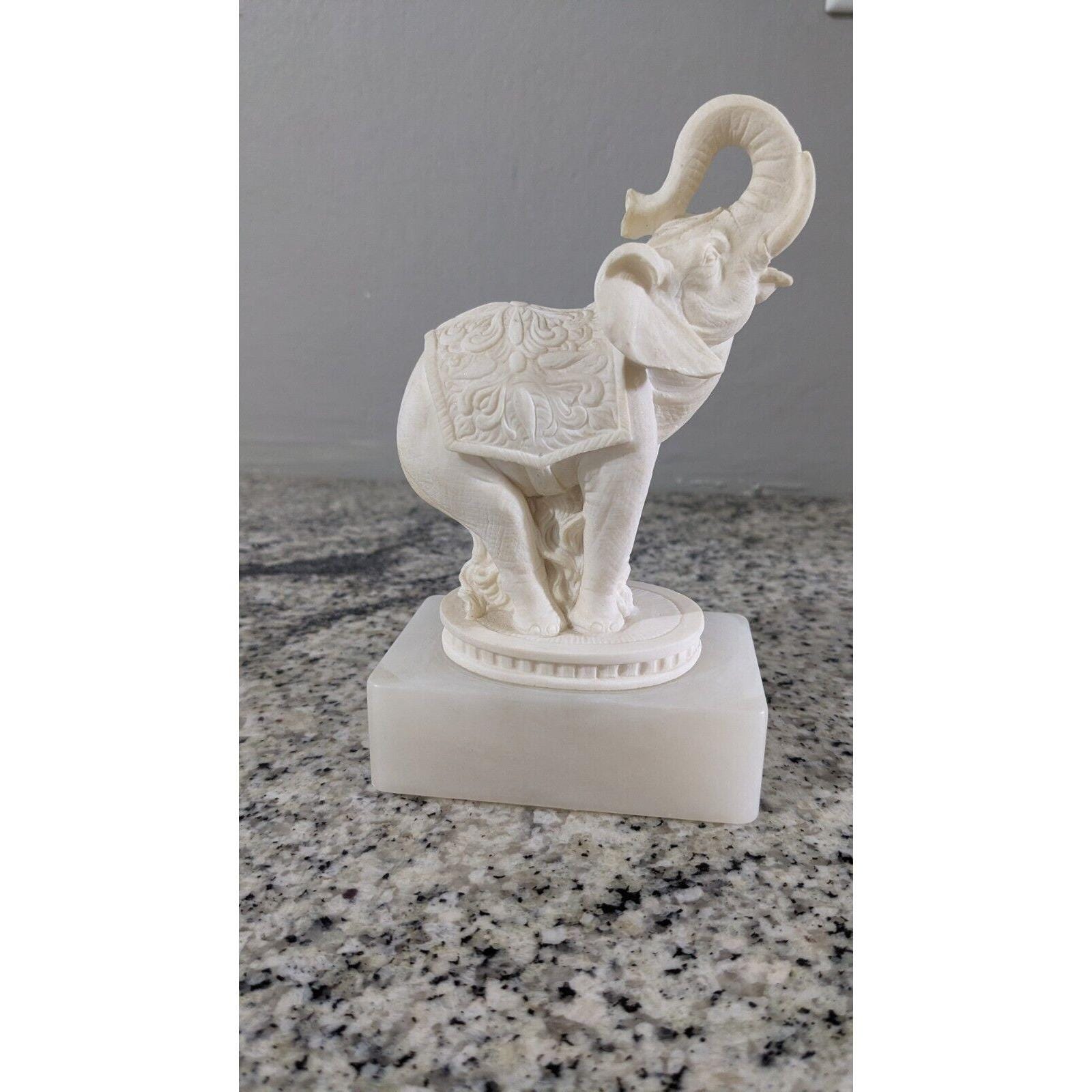 Vintage A. Giannelli Alabaster Elephant Sculpture – Handcrafted in Italy – Mid-Century Modern Animal Figurine