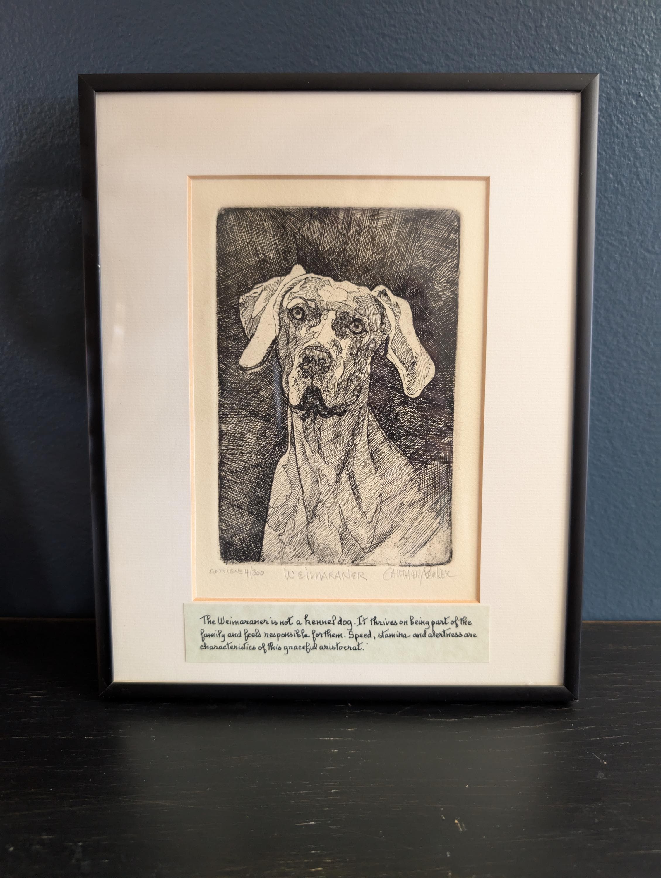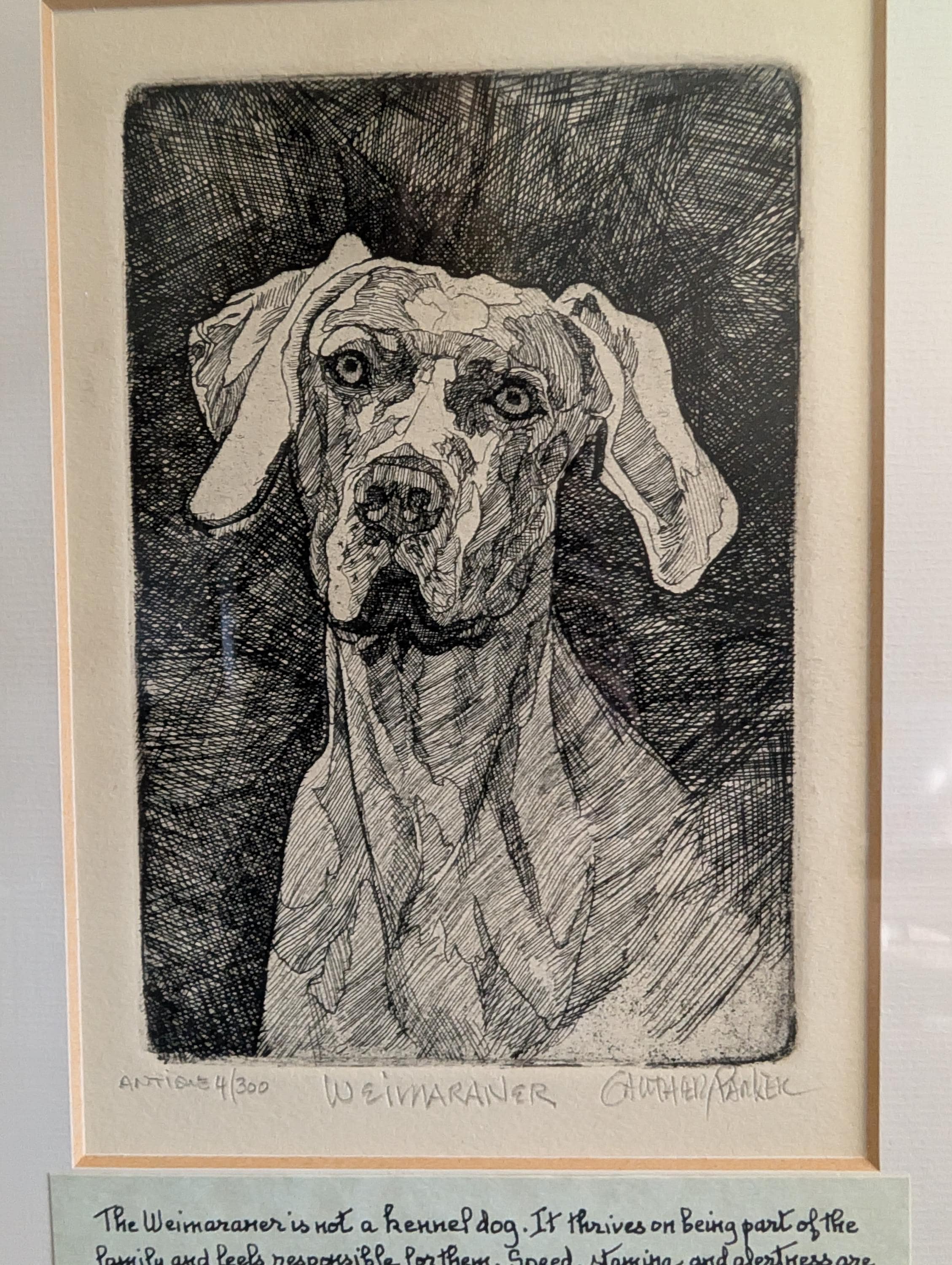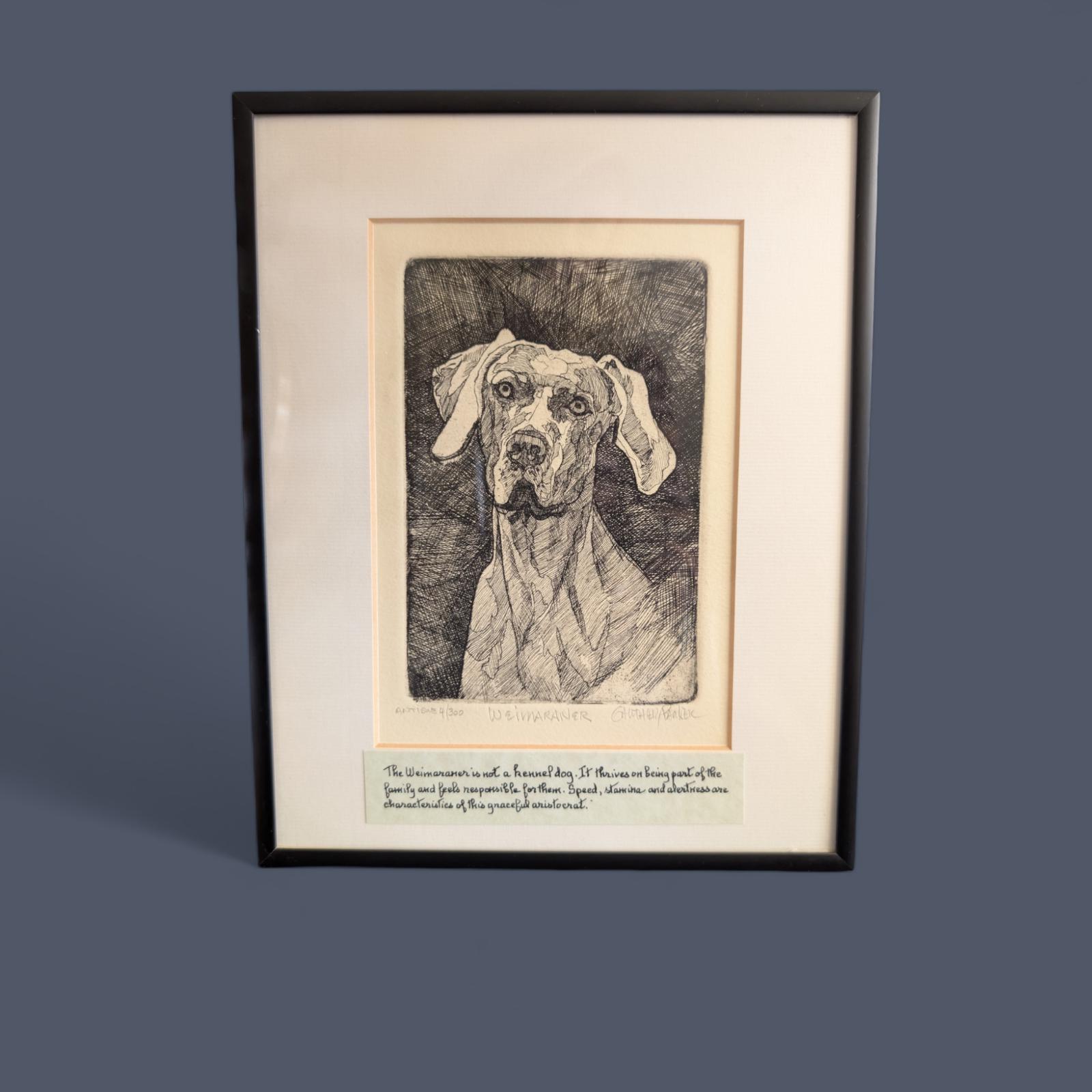 Gauthier / Parker Weimaraner Etching, Signed Limited Edition 4/300, Studio Dog Art, Framed 8.5x10 Canine Sketch, Gift for Dog Lovers