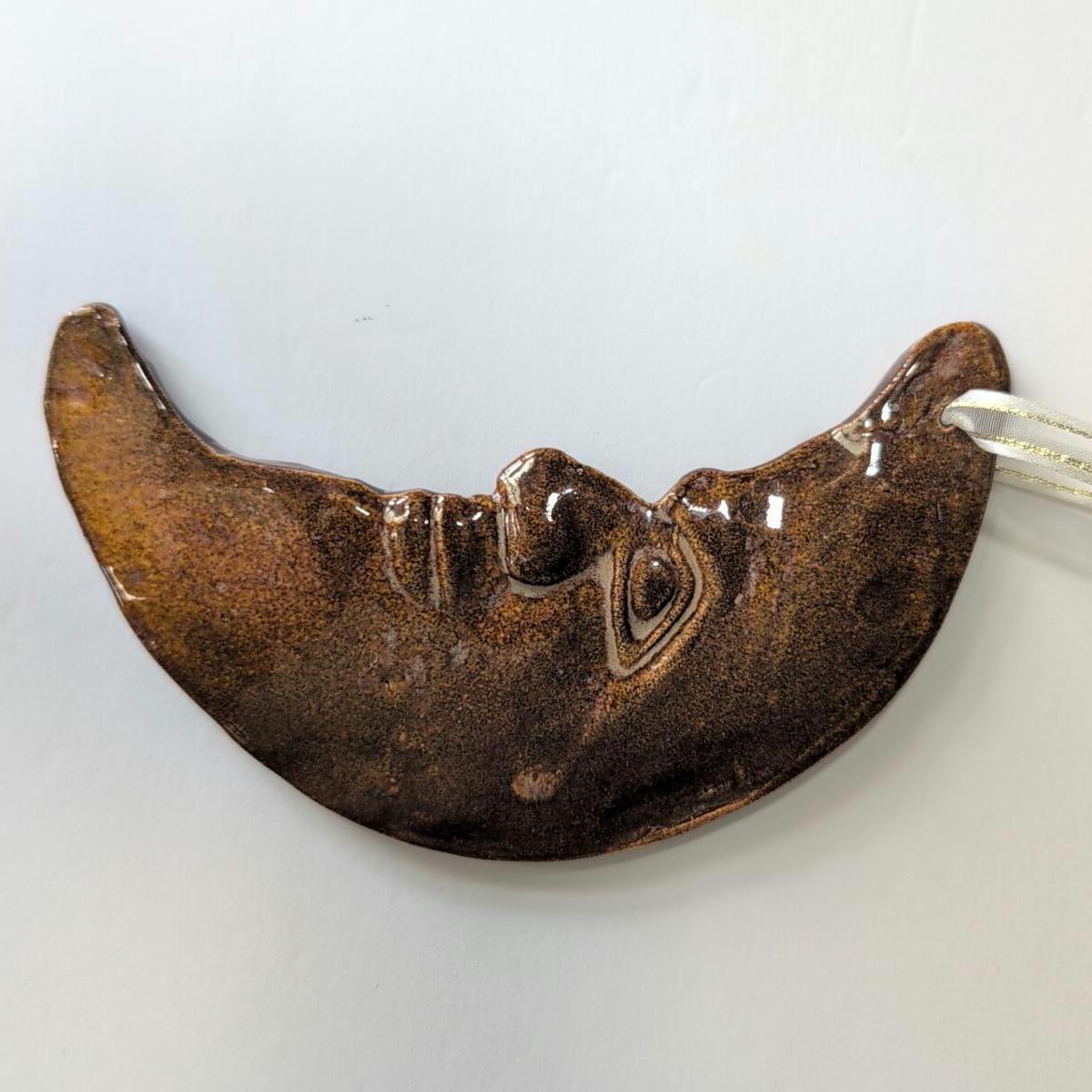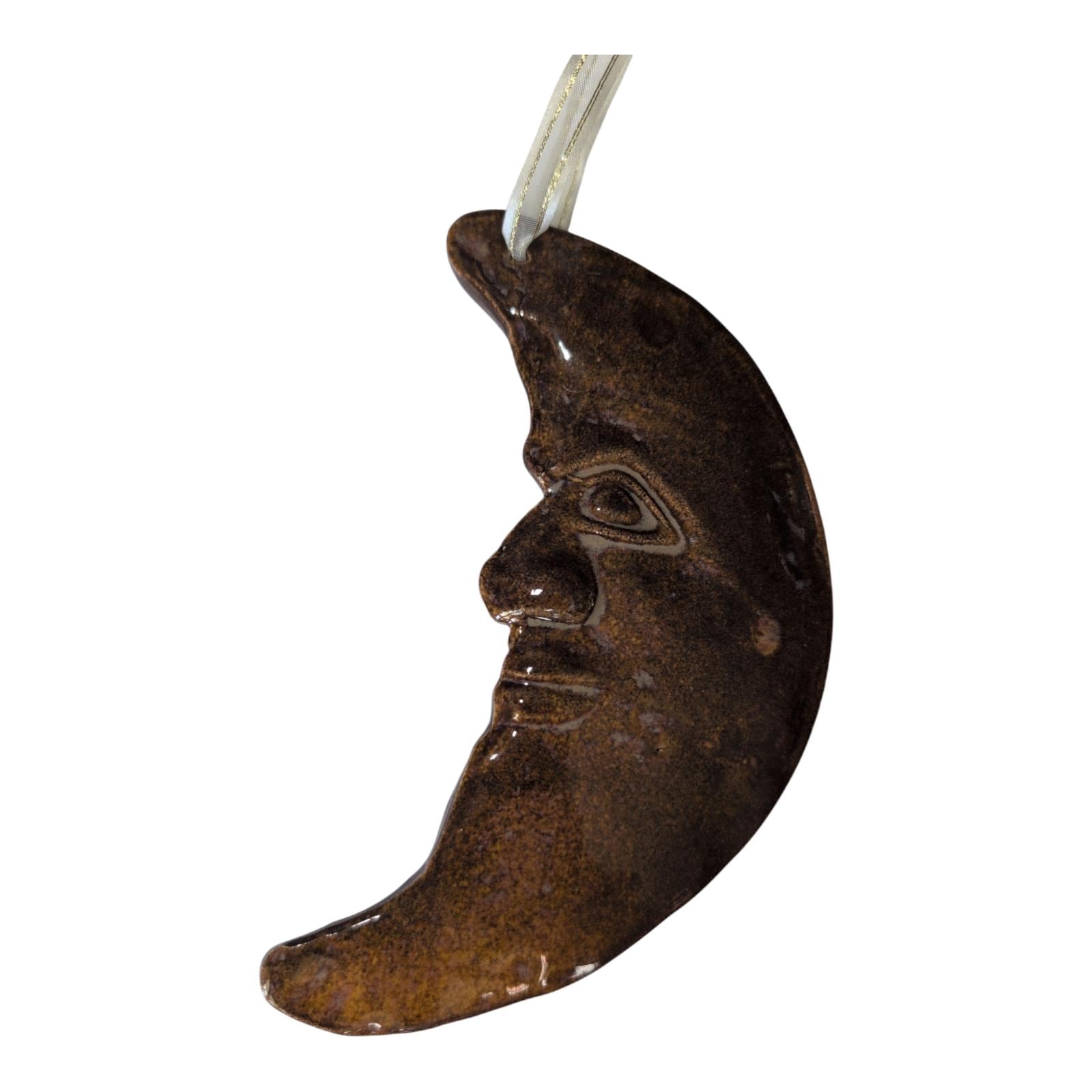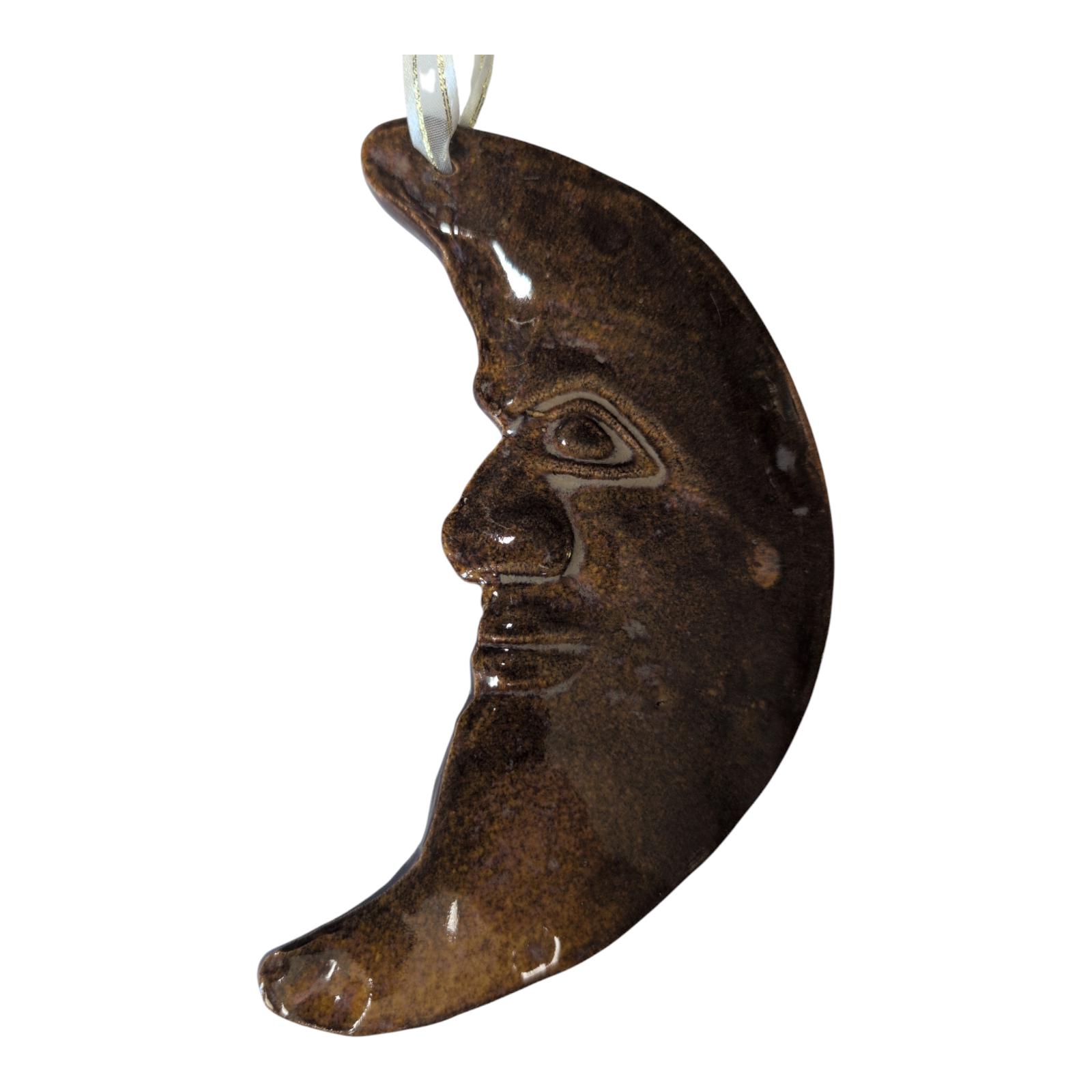 Vintage Windsong Pottery Crescent Moon Ornament - Man in the Moon Celestial Decor - Handmade Ceramic Art