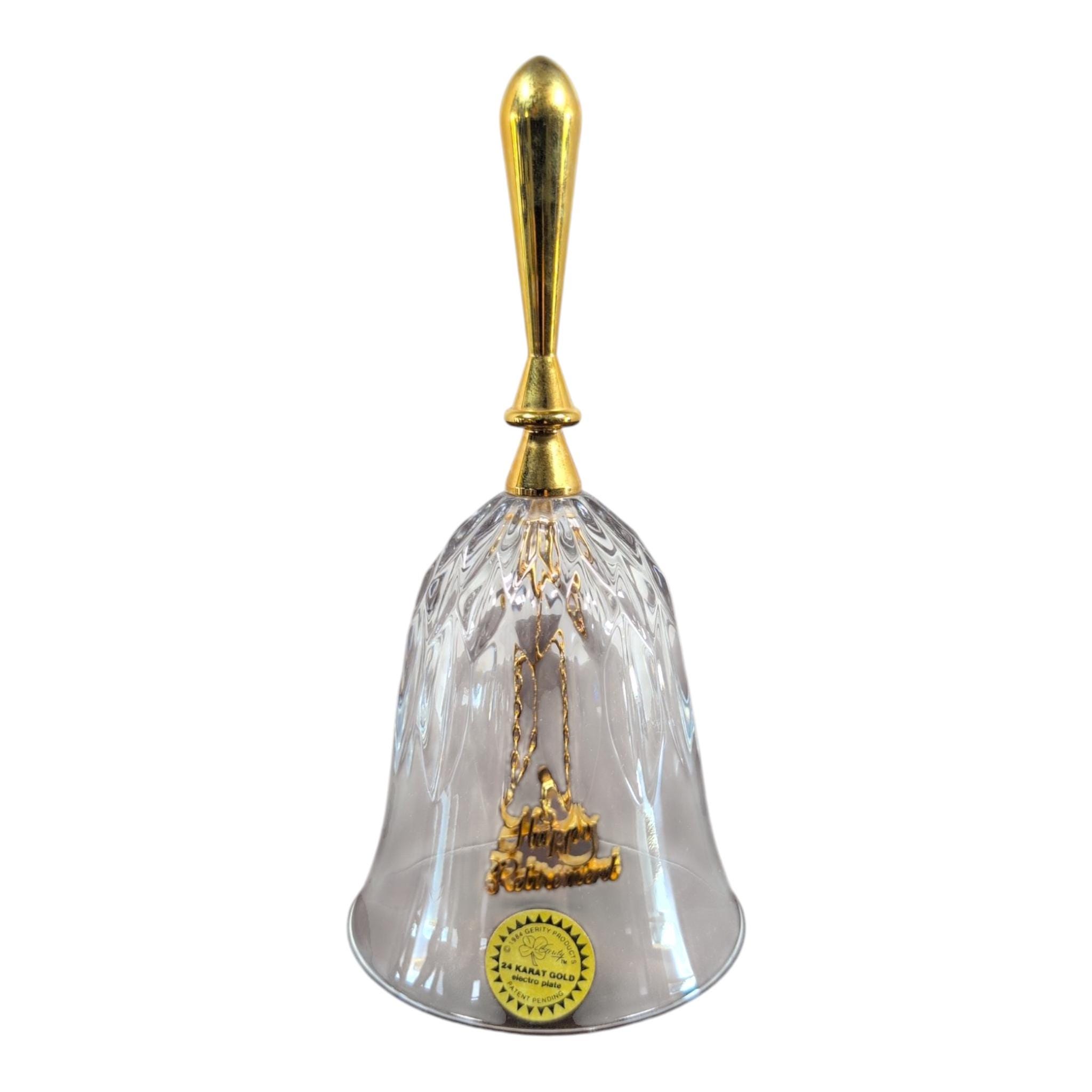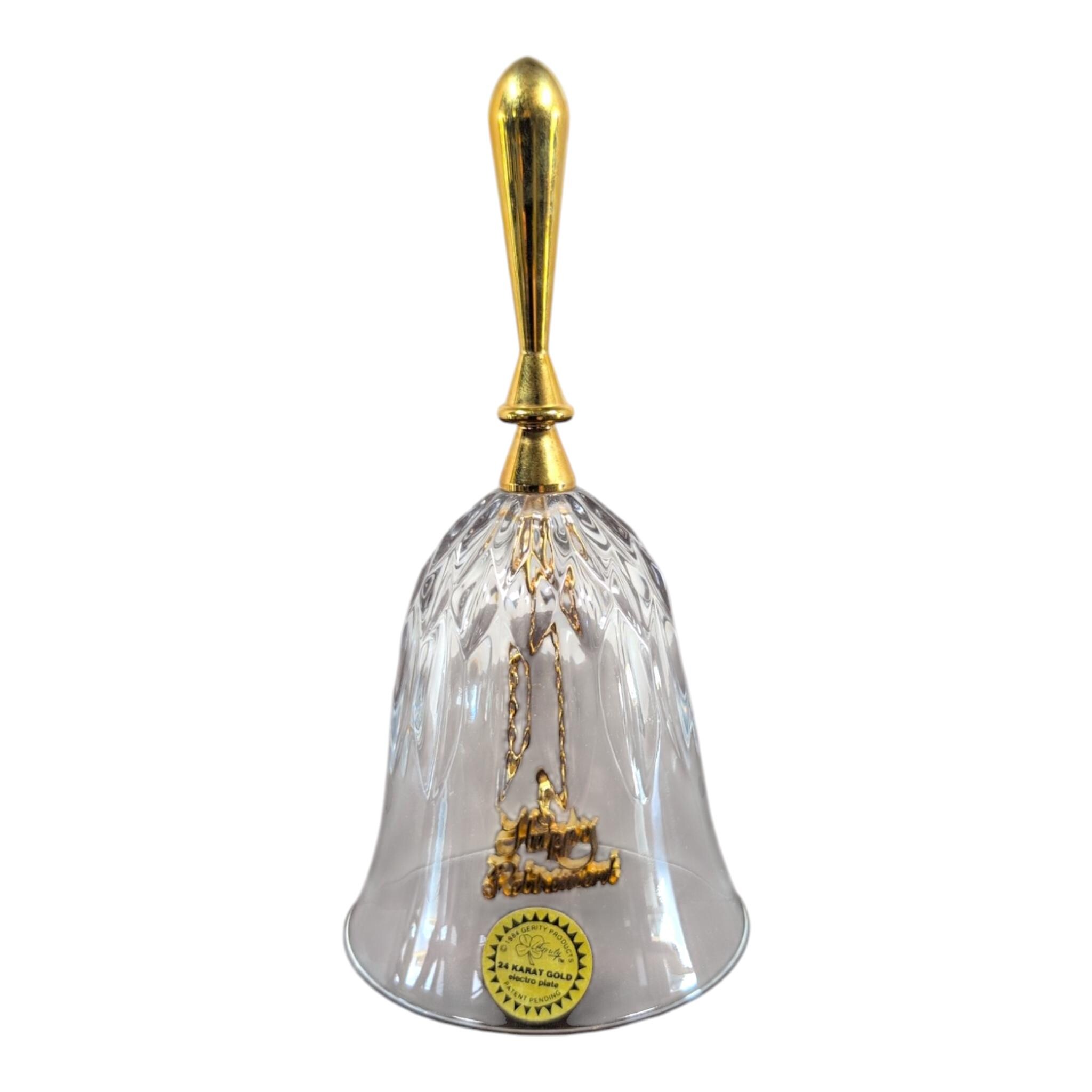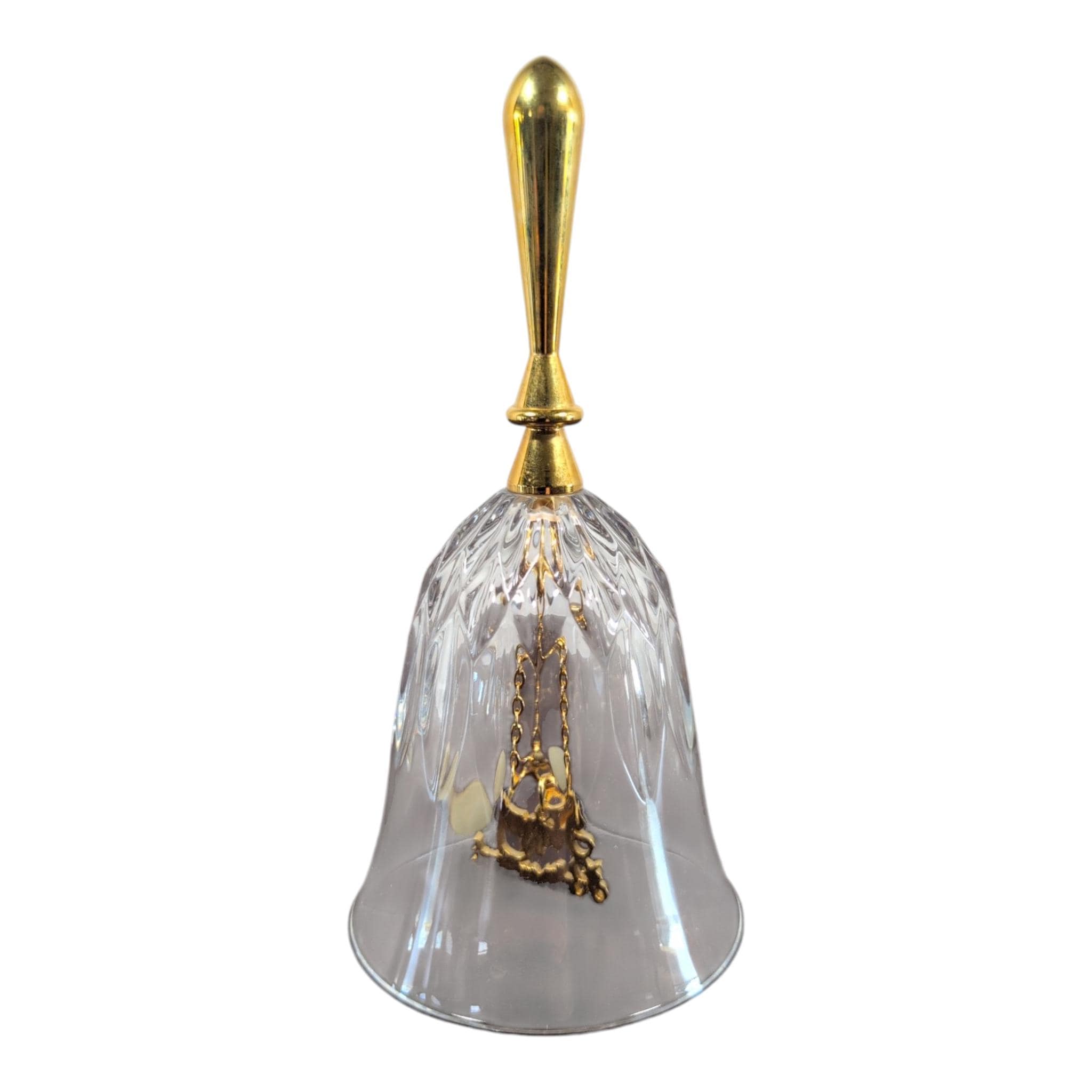 This is a vintage Gerity 24% cut lead crystal bell with 24 karat gold electroplating for a happy retirement theme. The bell measures 6.5 inches in length. It is suitable for decoration in any room and is from the 1980s. Perfect for gifting or for retirement celebrations. In great condition.X9