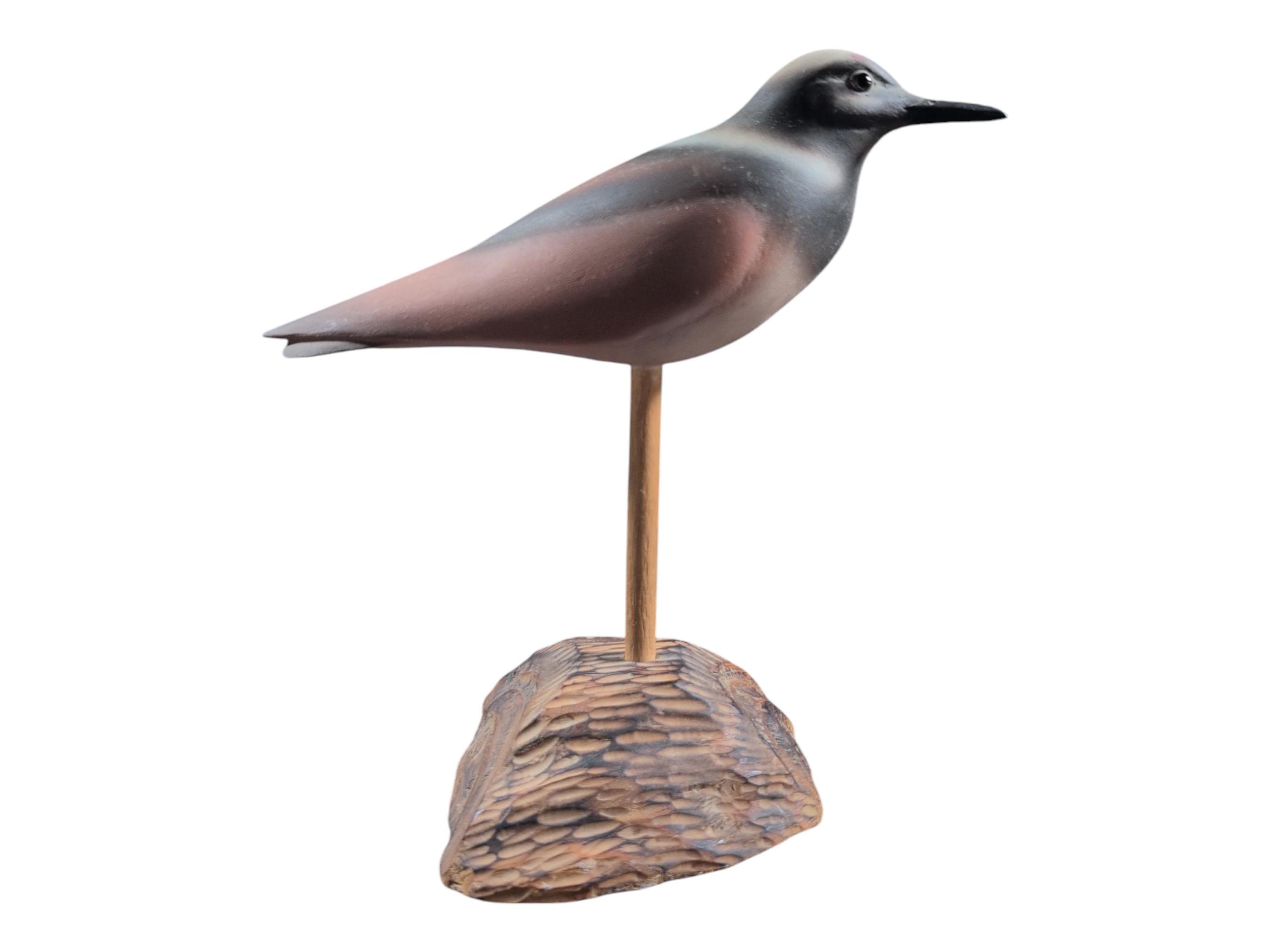 Evoke the quiet beauty of the Atlantic coastline with this authentic hand-carved shorebird decoy. This piece captures the "smoothie" style of traditional American folk art, focusing on form and soft, blended color rather than heavy texture. With its serene expression and weathered wood base, it’s a perfect centerpiece for a "Coastal Grandmother" aesthetic or a rustic lakehouse mantle. In great used condition. 9 inches tall and 8 1/2 inches long. 5 inches wide at base. X5