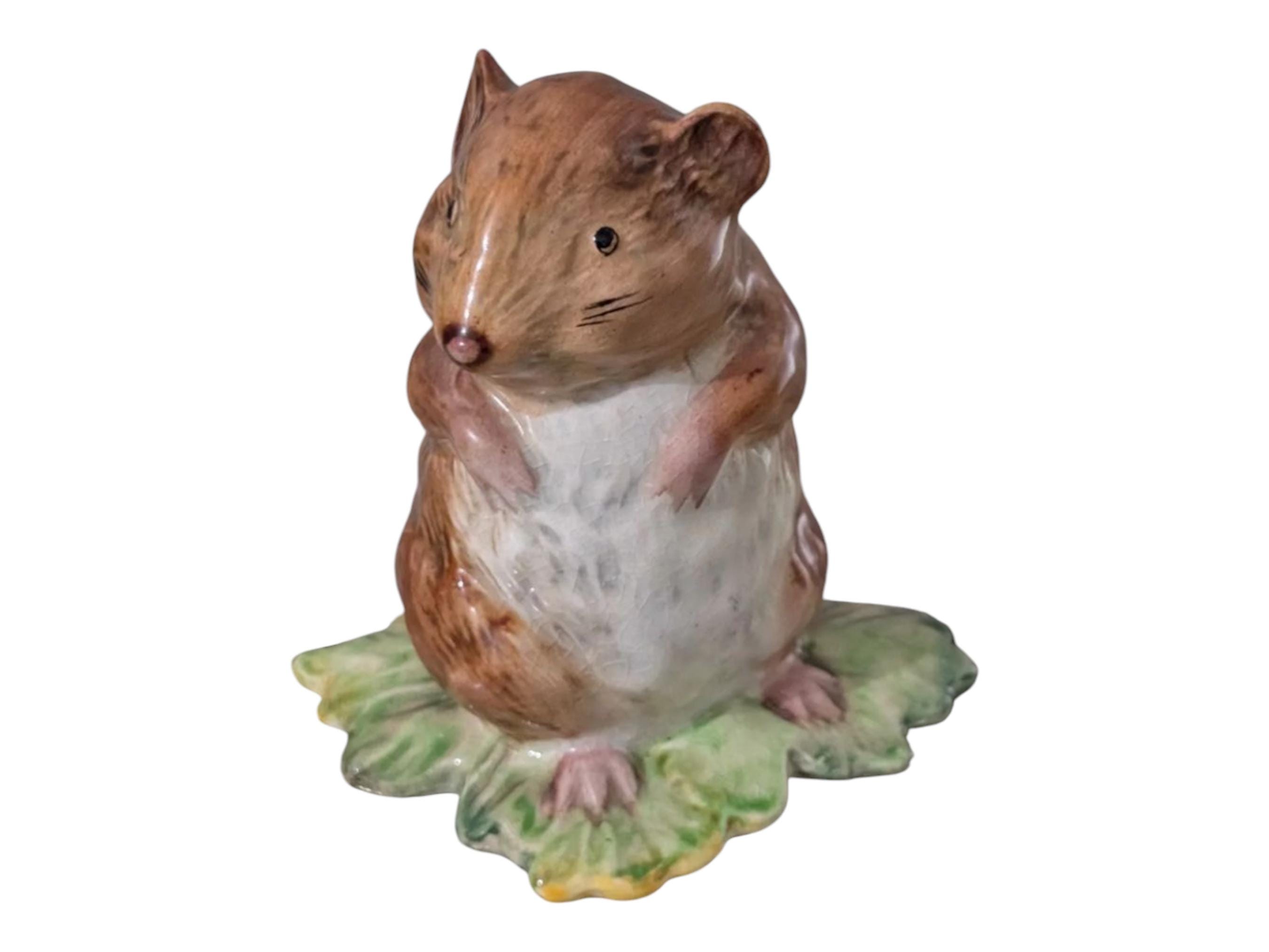 Bring a piece of Beatrix Potter's enchanting world into your home with this delightful vintage Beswick figurine of Timmy Willie. This lovable country mouse, known from "The Tale of Johnny Town-Mouse," is beautifully captured in this hand-painted porcelain figure. In great condition.