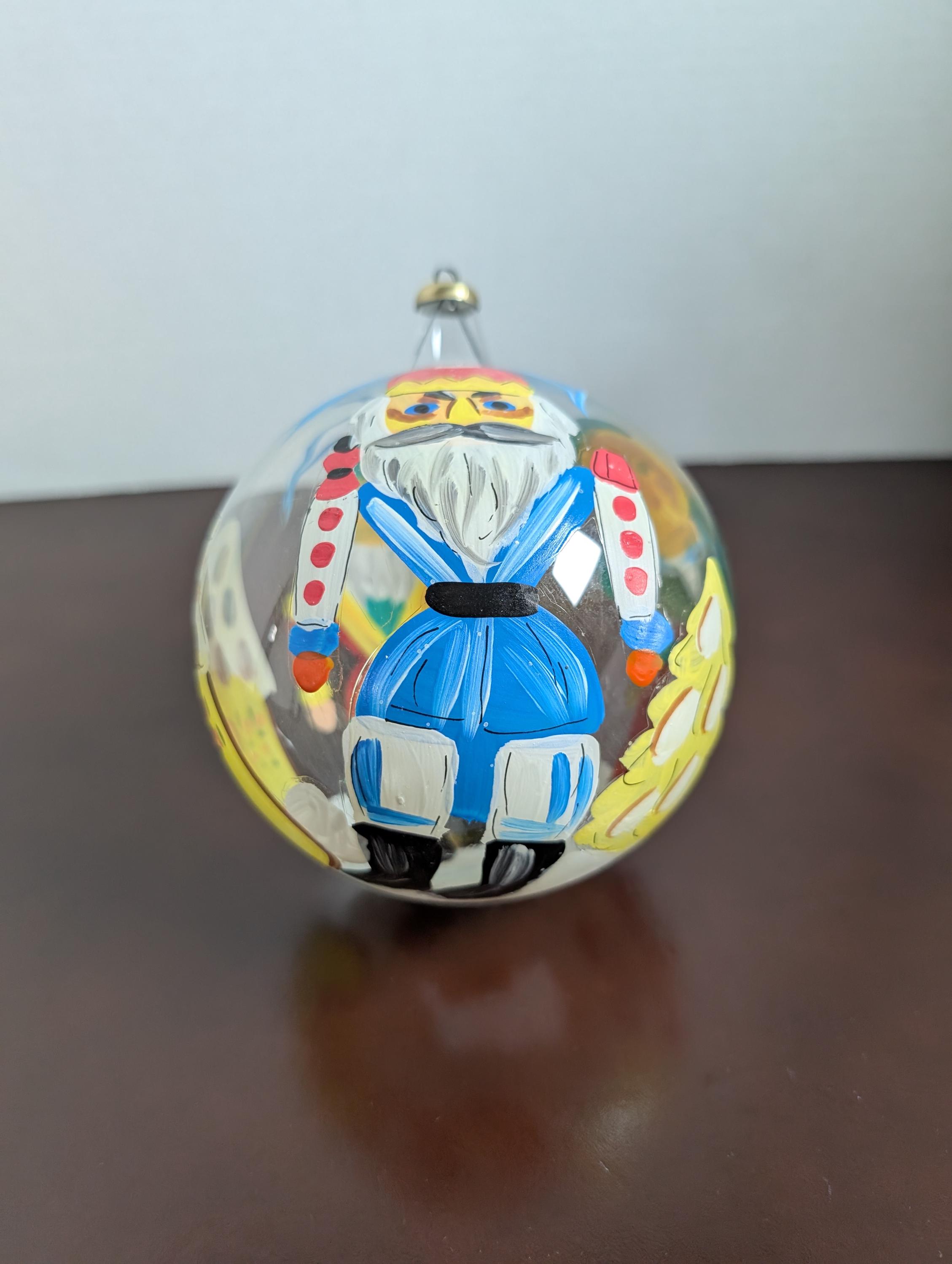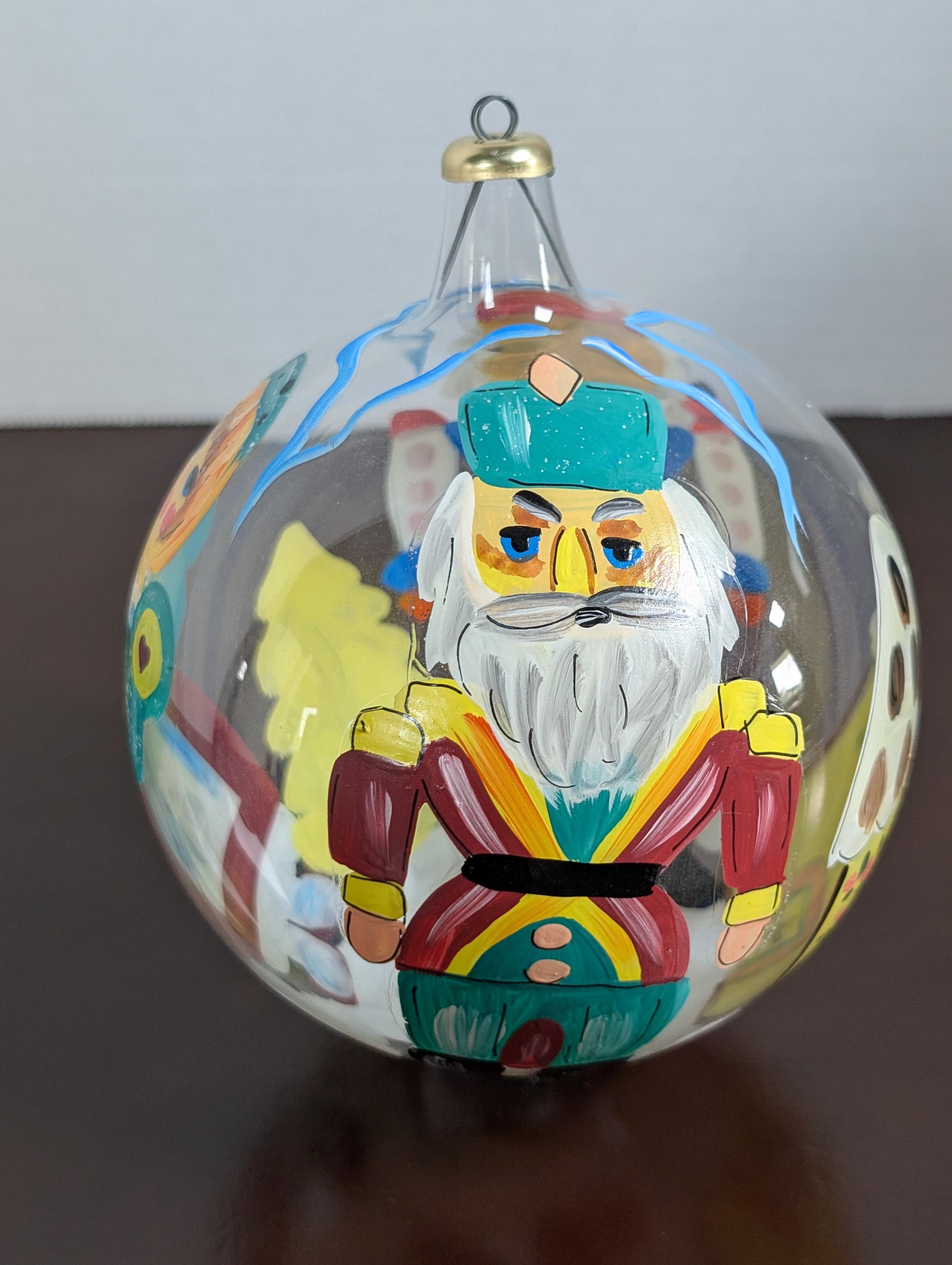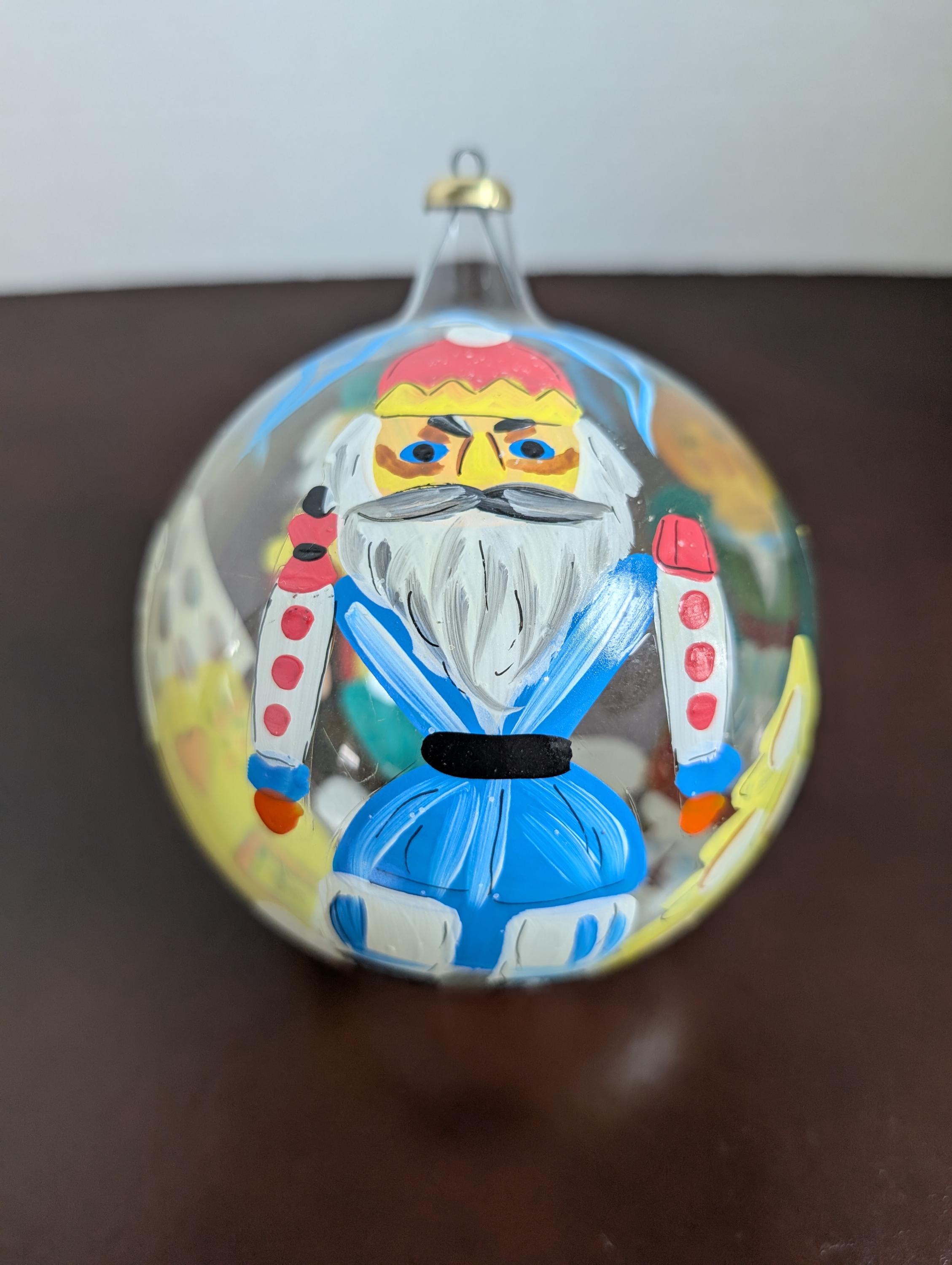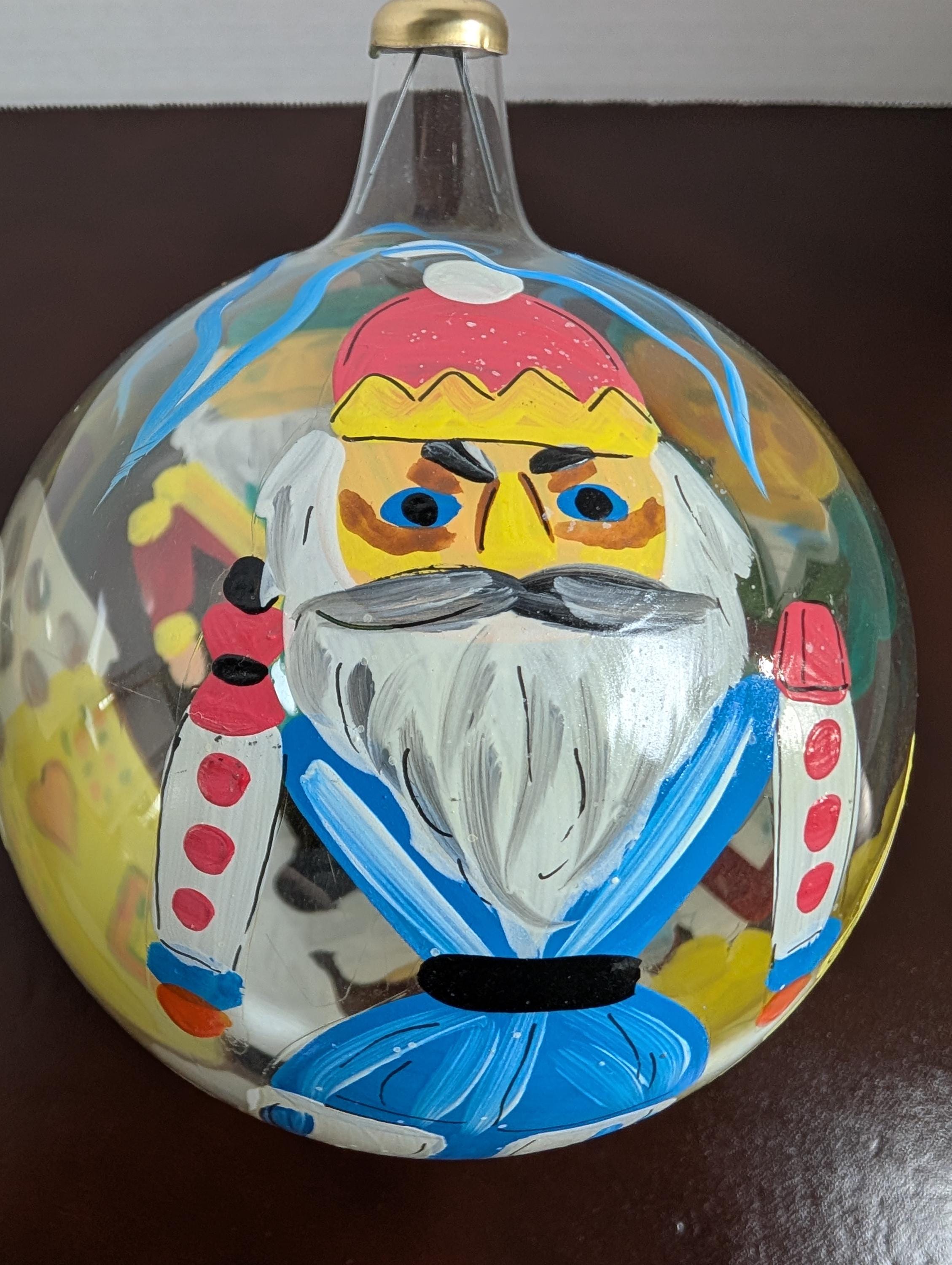 Vintage Hand-Painted Large Italian Blown Glass Christmas Ornament - Nutcracker Bulb -Artisan Folk Art Bauble