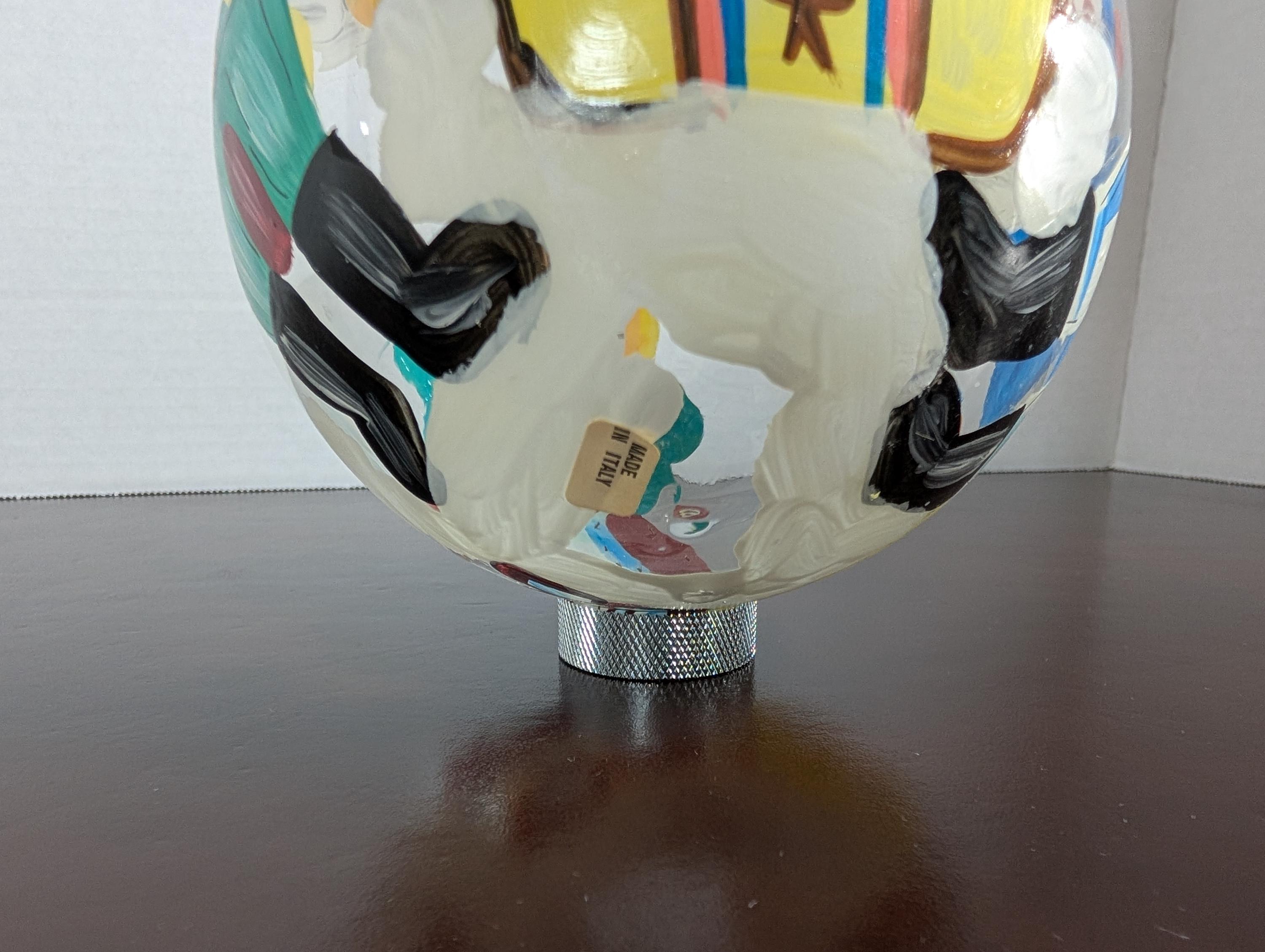 This is a substantial, high-quality ornament that stands out as a focal point. Whether you are a collector of Italian glass or looking for that one "special" piece to anchor your holiday decor, this hand-crafted treasure captures the whimsical spirit of the season with authentic European flair. In excellent condition. 6 inches wide and 6 inches tall. X31