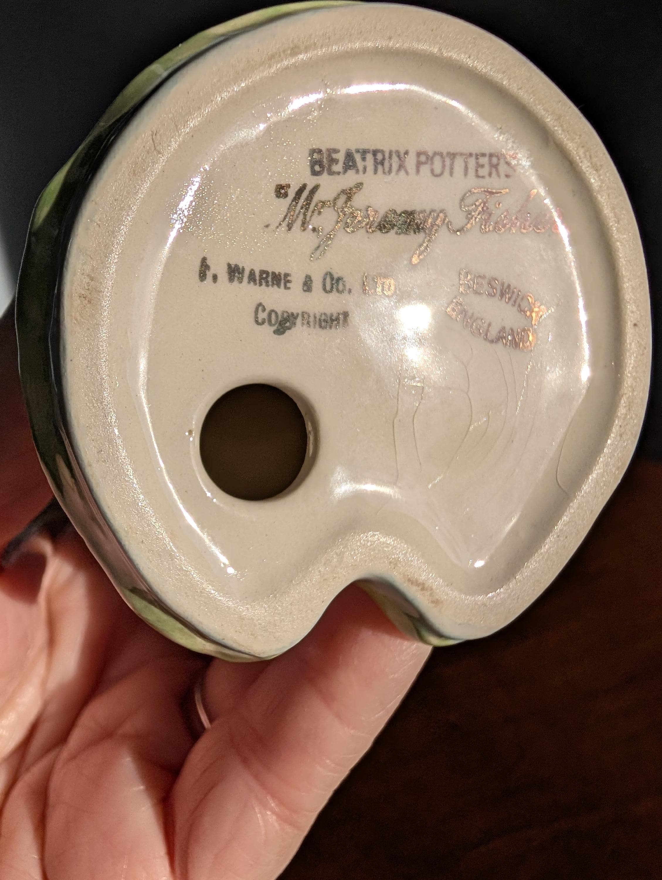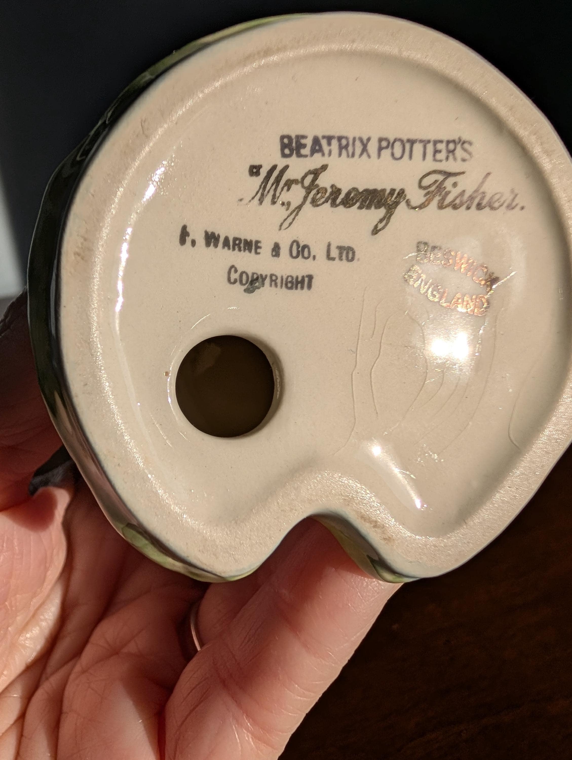 Rare Mr.Jeremy Fisher-BP2A Gold Oval Beatrix Potter Figurine Beswick Pottery England