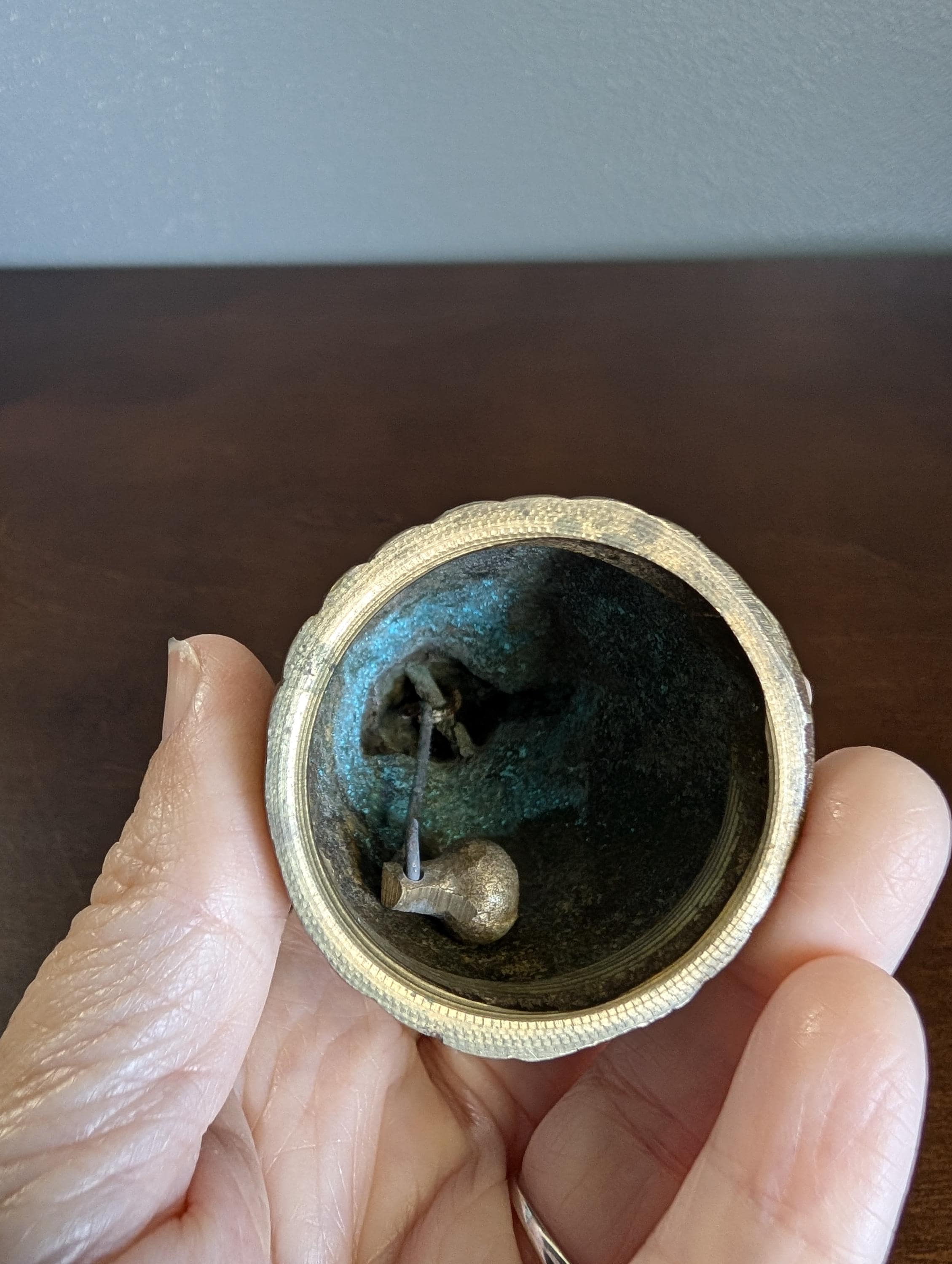 Condition: Excellent vintage condition. Features a natural darkened patina and minor surface wear consistent with age; clapper is original and fully functional.