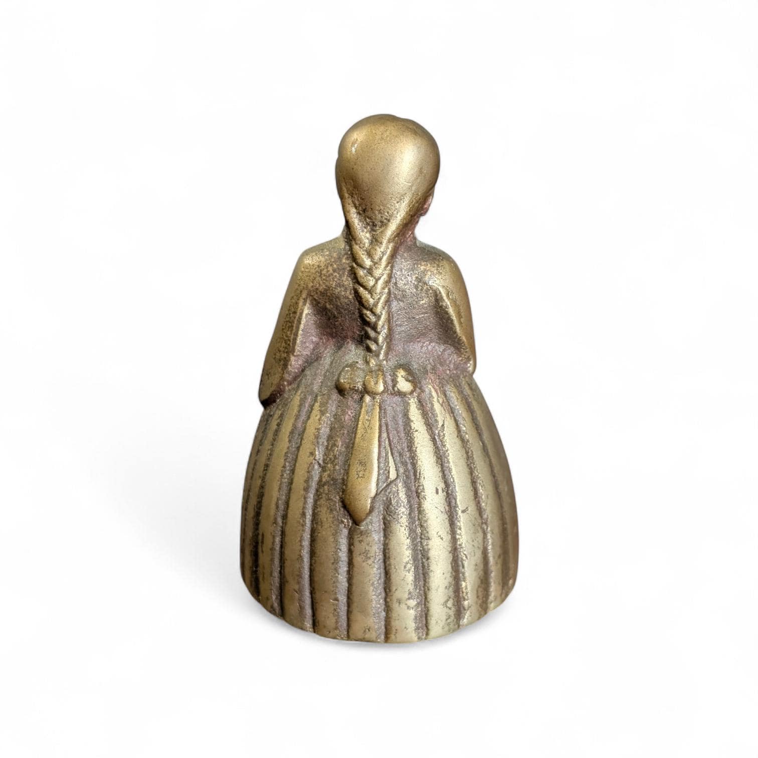 Vintage Brass Lady Bell Mid Century Figurine Girl with Flowers and Braid Solid Brass 1950s