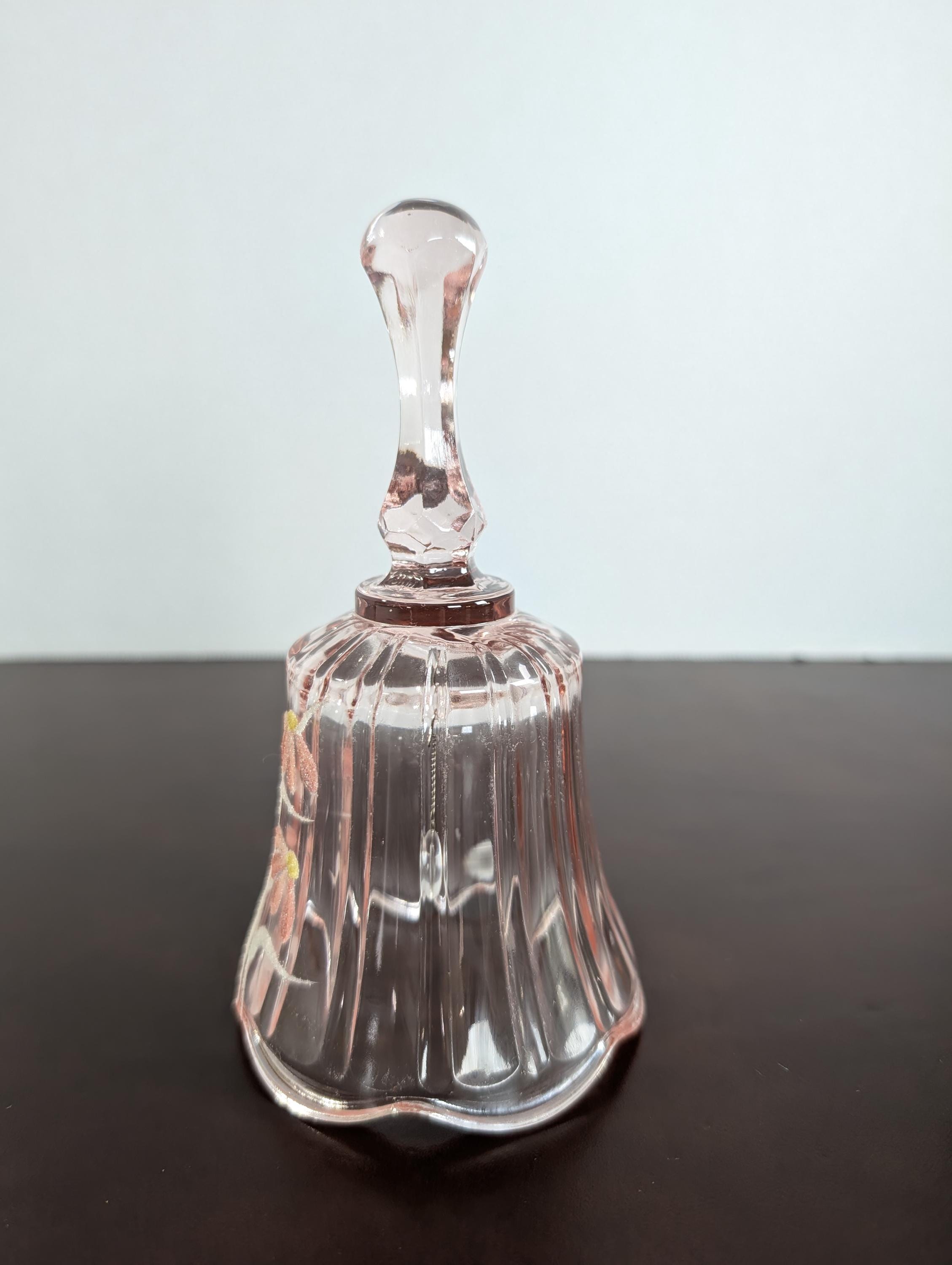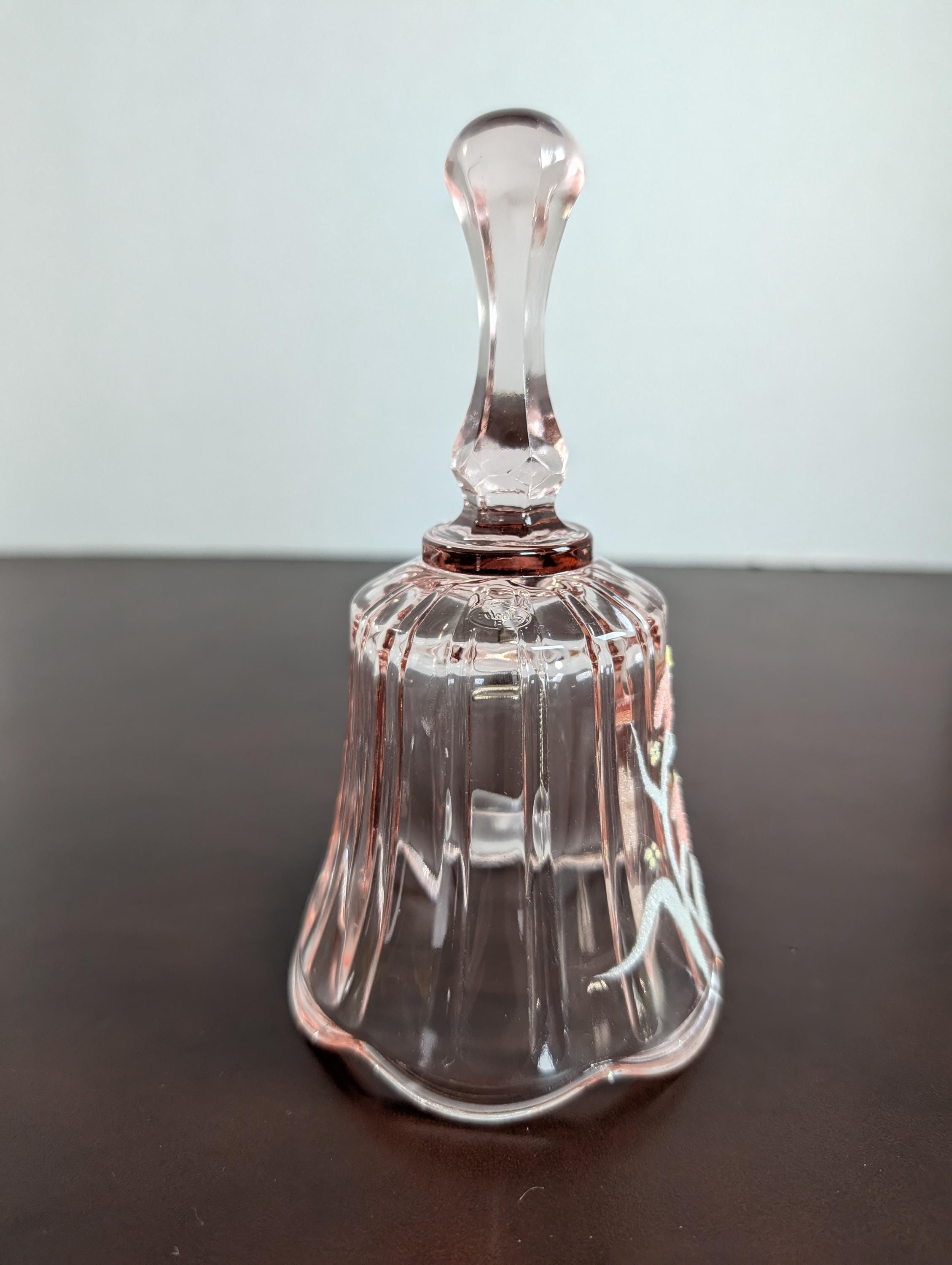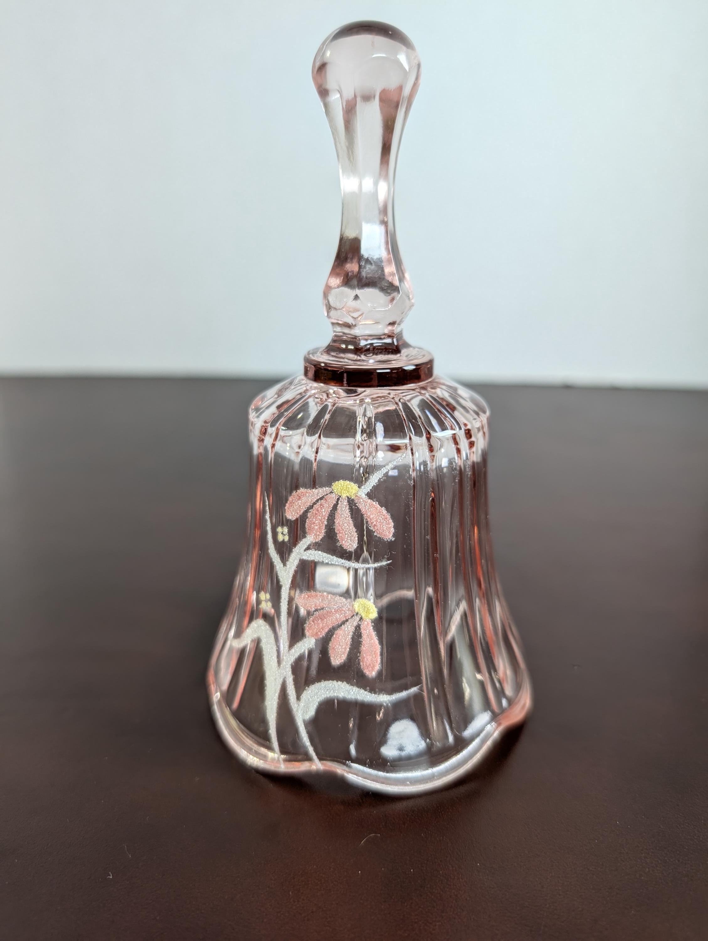Vintage Fenton Pink Glass Bell - Hand Painted Floral Design - Ribbed Art Glass Collectible - Artist Signed - 1980s Home Decor