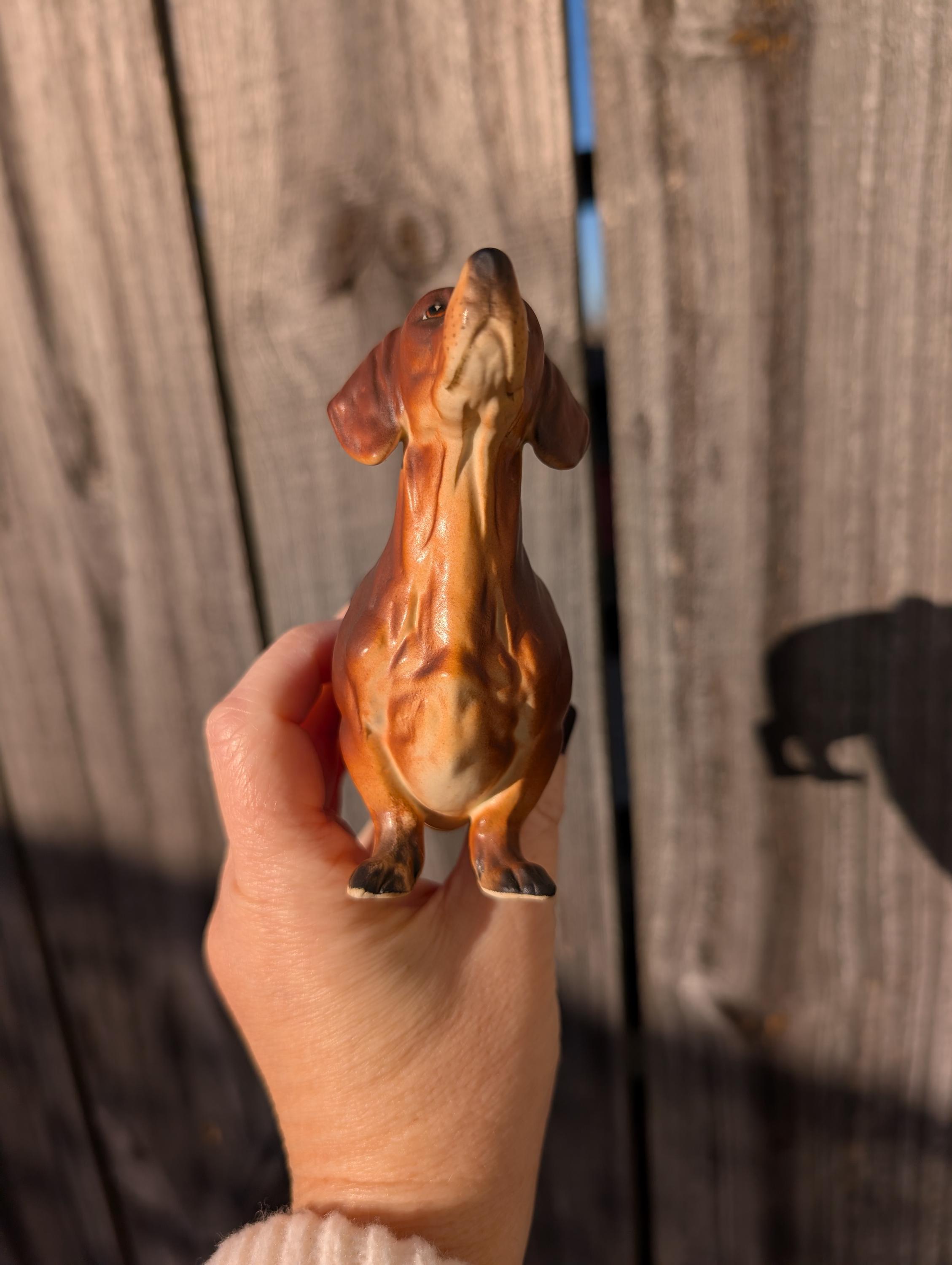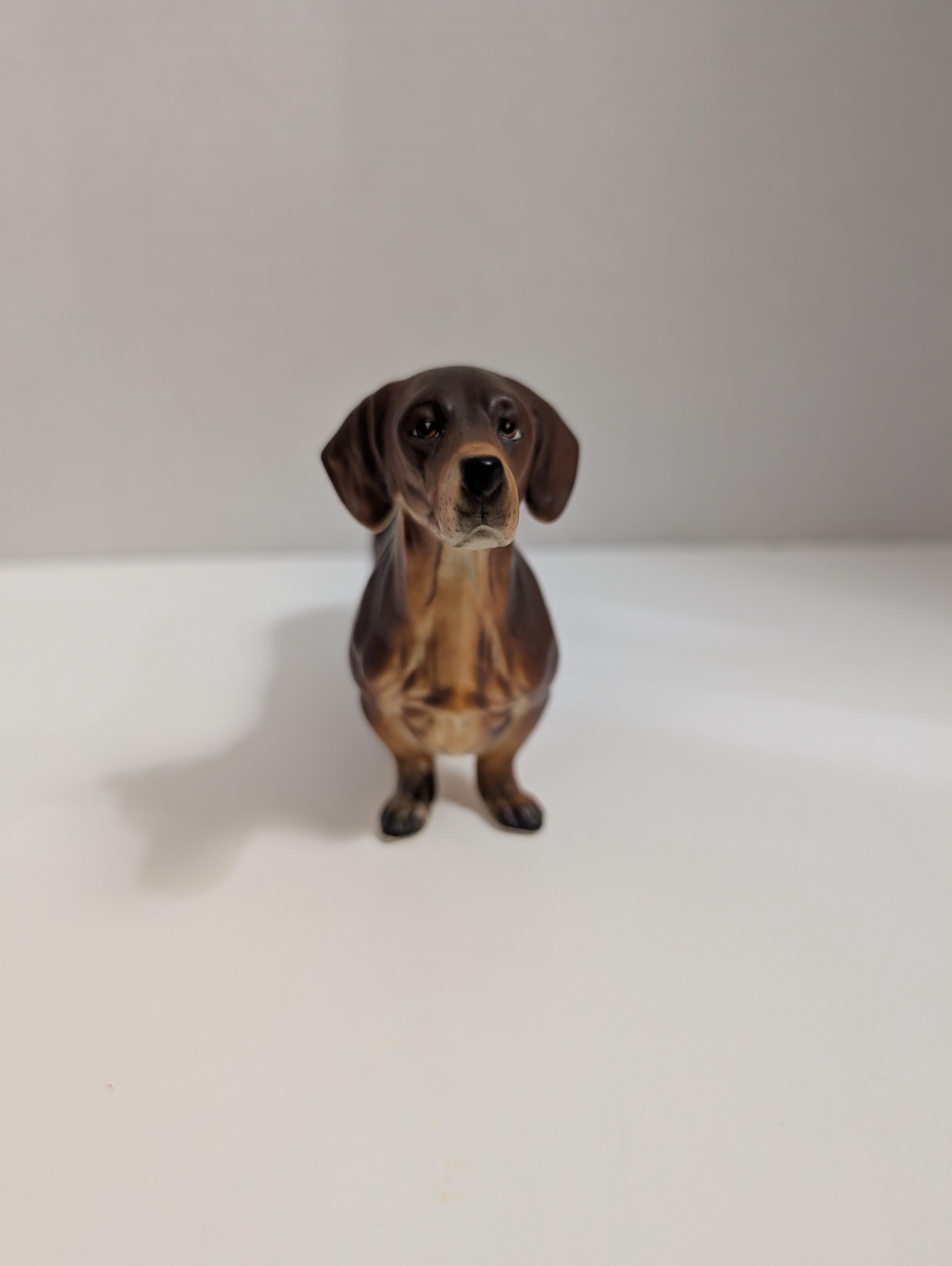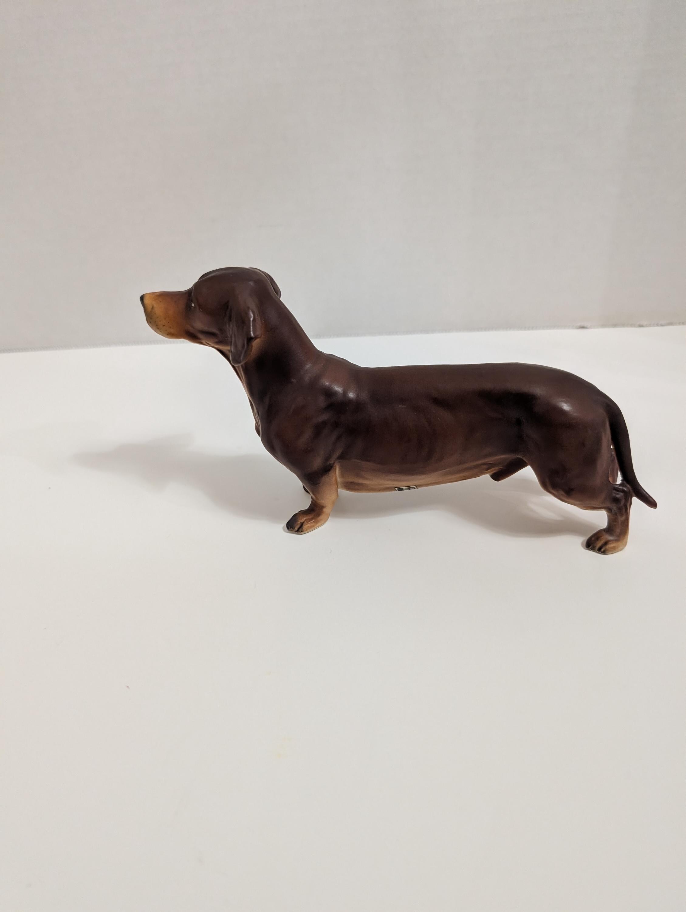 Bring a touch of vintage charm and canine loyalty to your home with this exquisite Brinnco Japan Dachshund figurine! This beautifully crafted piece captures the endearing spirit of the beloved "wiener dog" with remarkable detail and rich, realistic coloring. Original sticker still on belly . In great condition. 7 inches long and 4 inches tall. M2