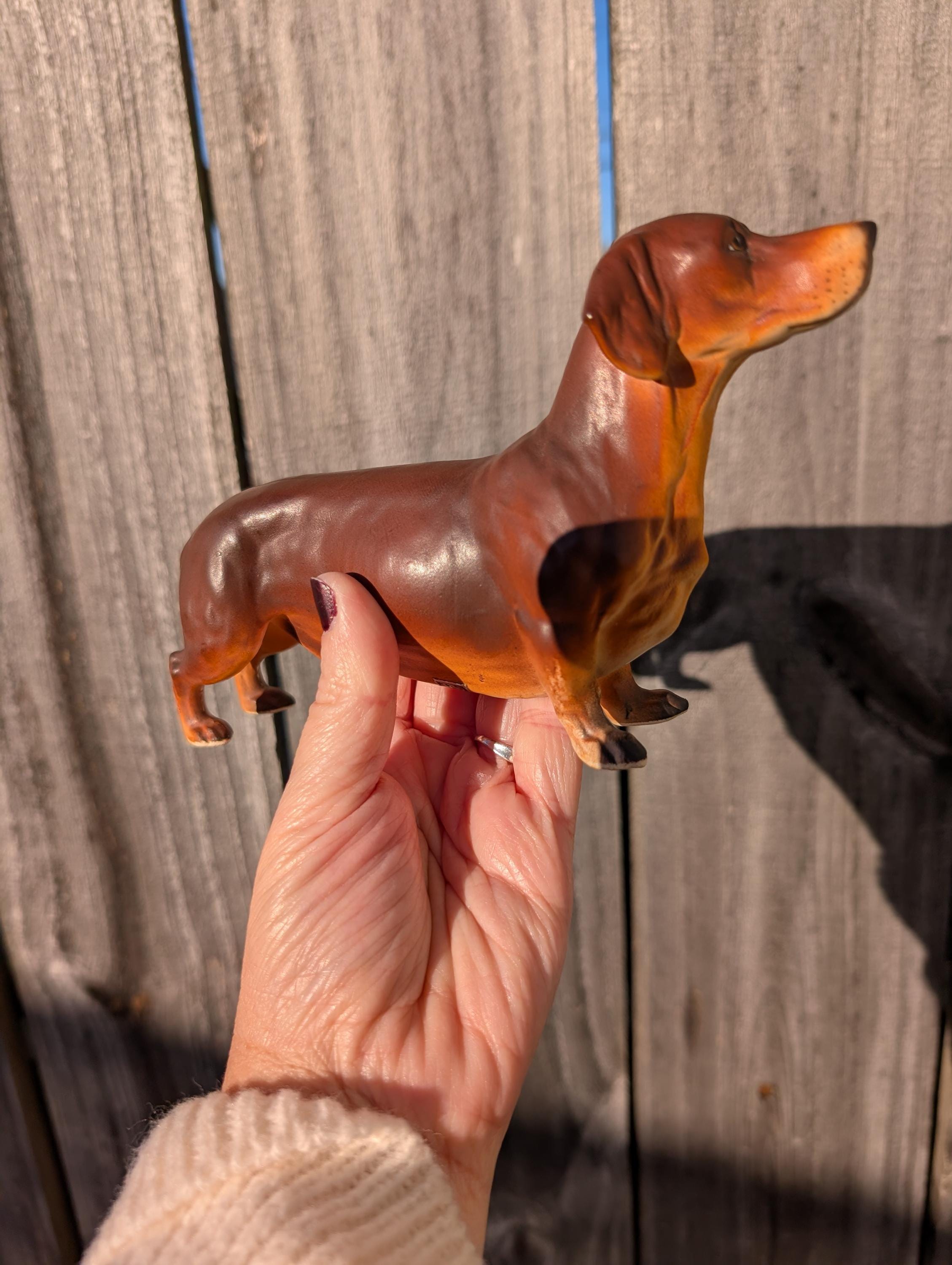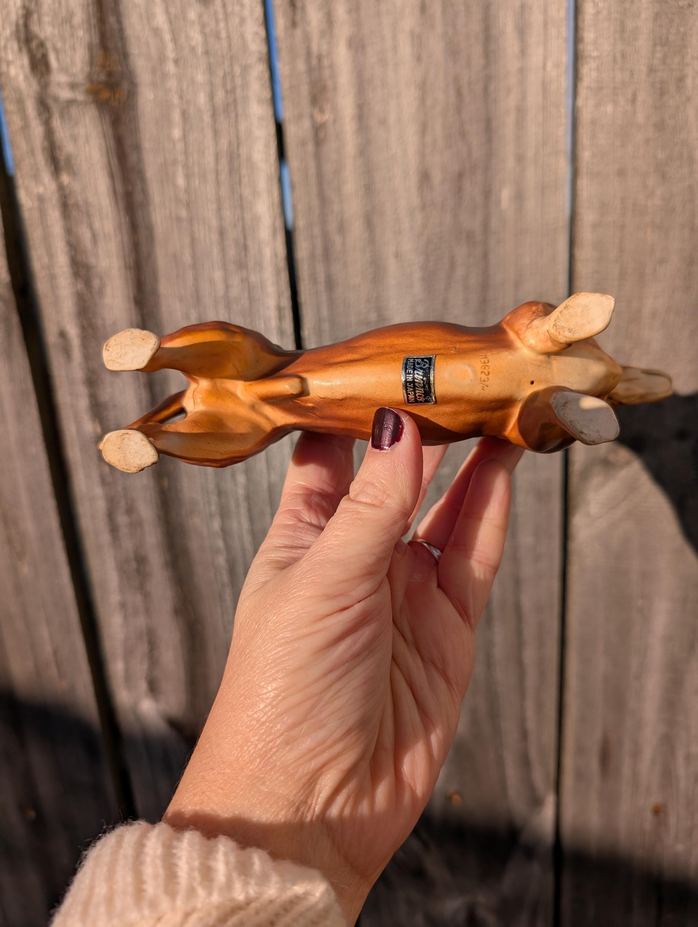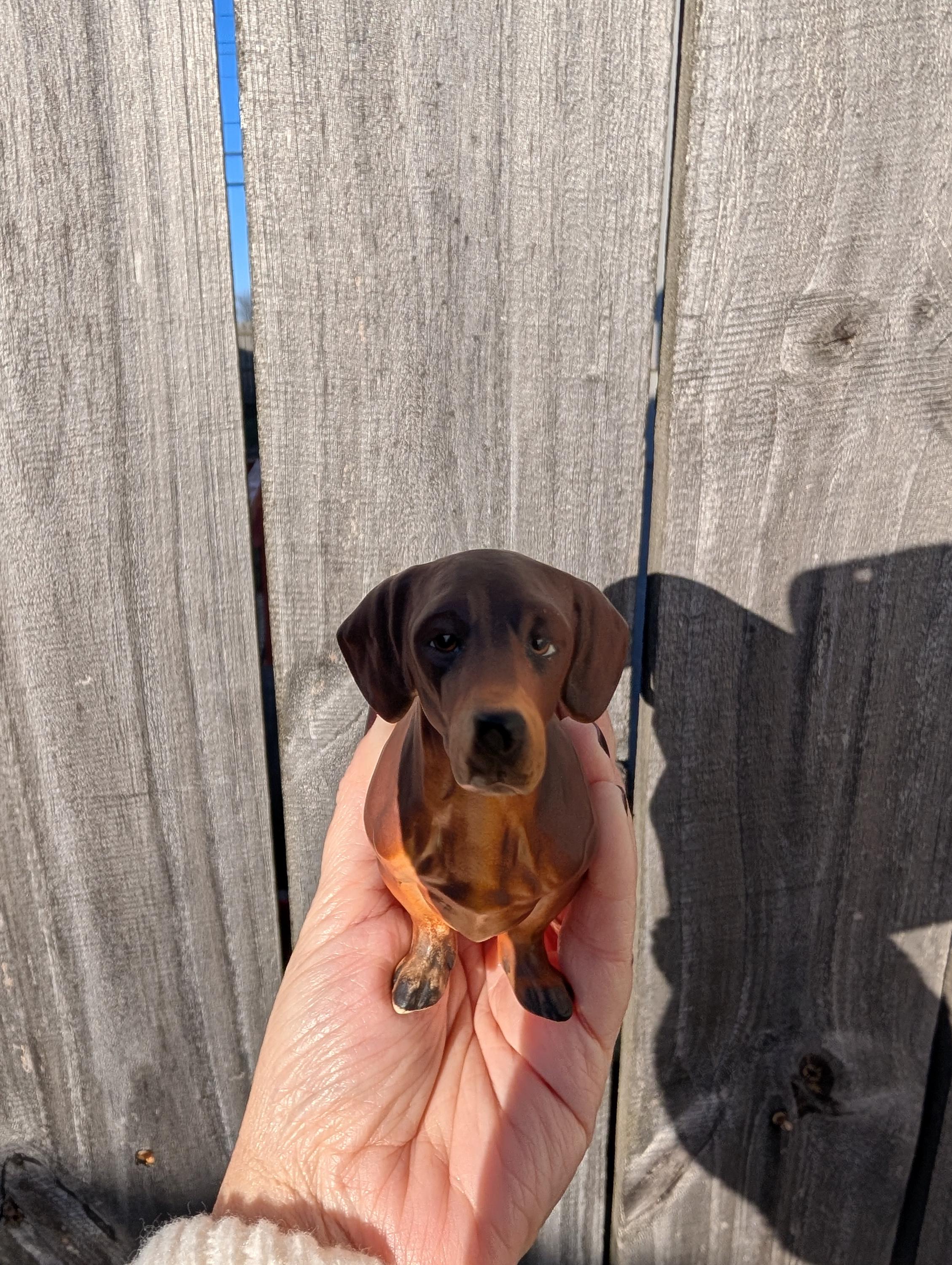 Bring a touch of vintage charm and canine loyalty to your home with this exquisite Brinnco Japan Dachshund figurine! This beautifully crafted piece captures the endearing spirit of the beloved "wiener dog" with remarkable detail and rich, realistic coloring. Original sticker still on belly . In great condition. 7 inches long and 4 inches tall. M2