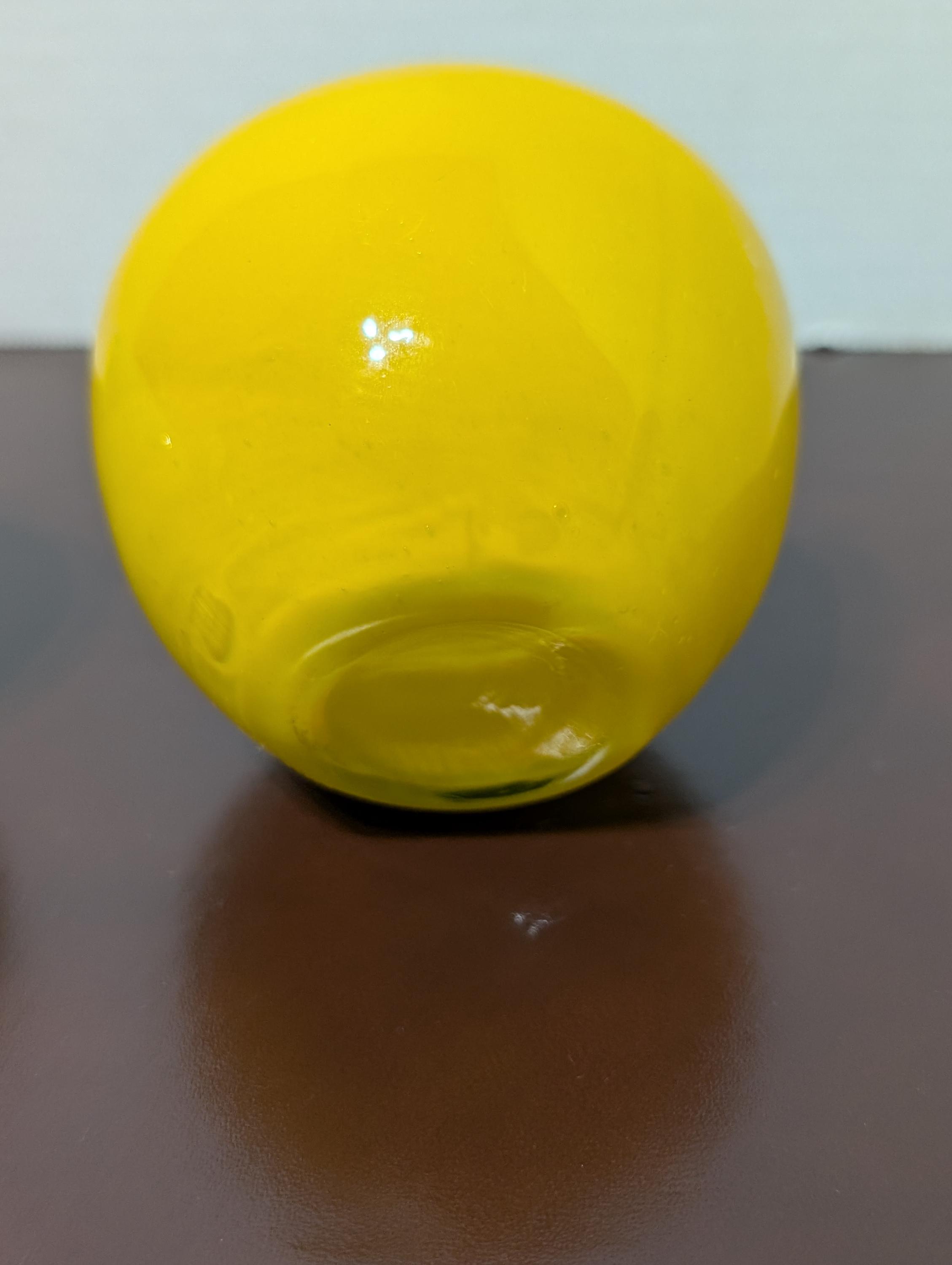 Add a splash of bright color to your home with this stunning Vintage Hand-Blown Glass Apple. Available in a luminous sunny yellow, this piece embodies the authentic 1960s design intent of bringing nature-inspired art into the modern home.