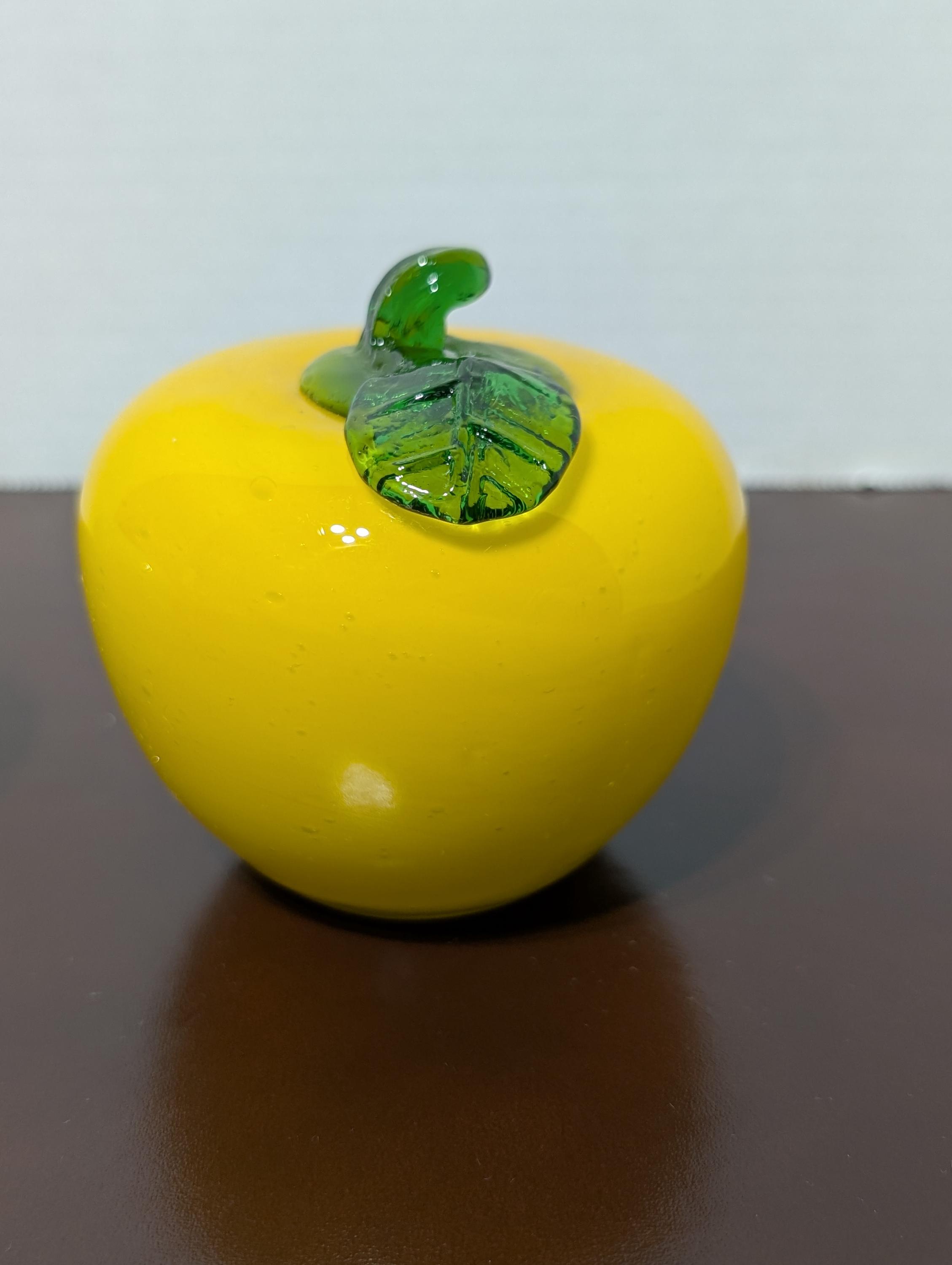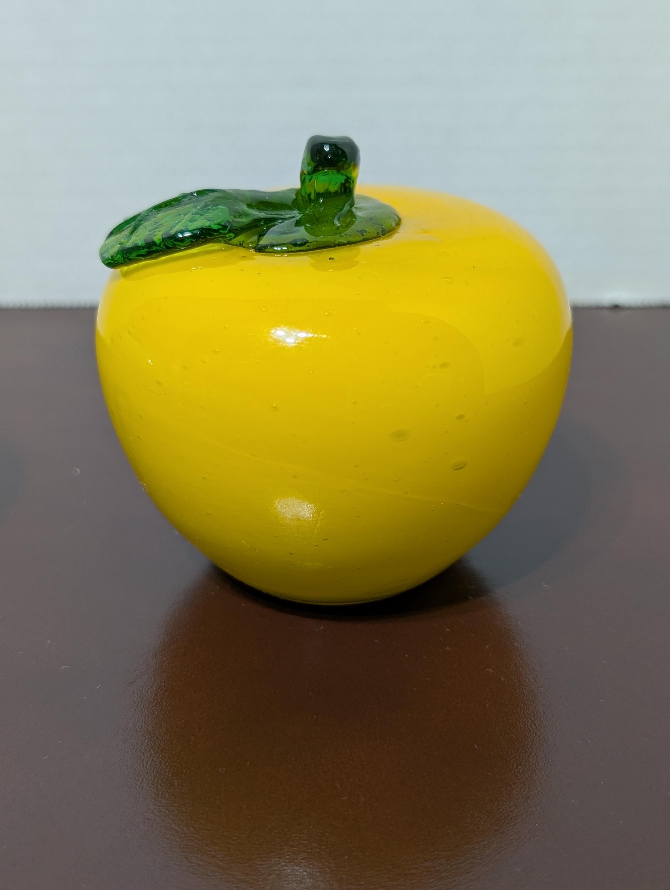 Vintage Hand-Blown Glass Apple | MCM Yellow Art Glass Fruit | Nonna Holiday Kitchen Decor | Supper Club Centerpiece | 1960s Glass