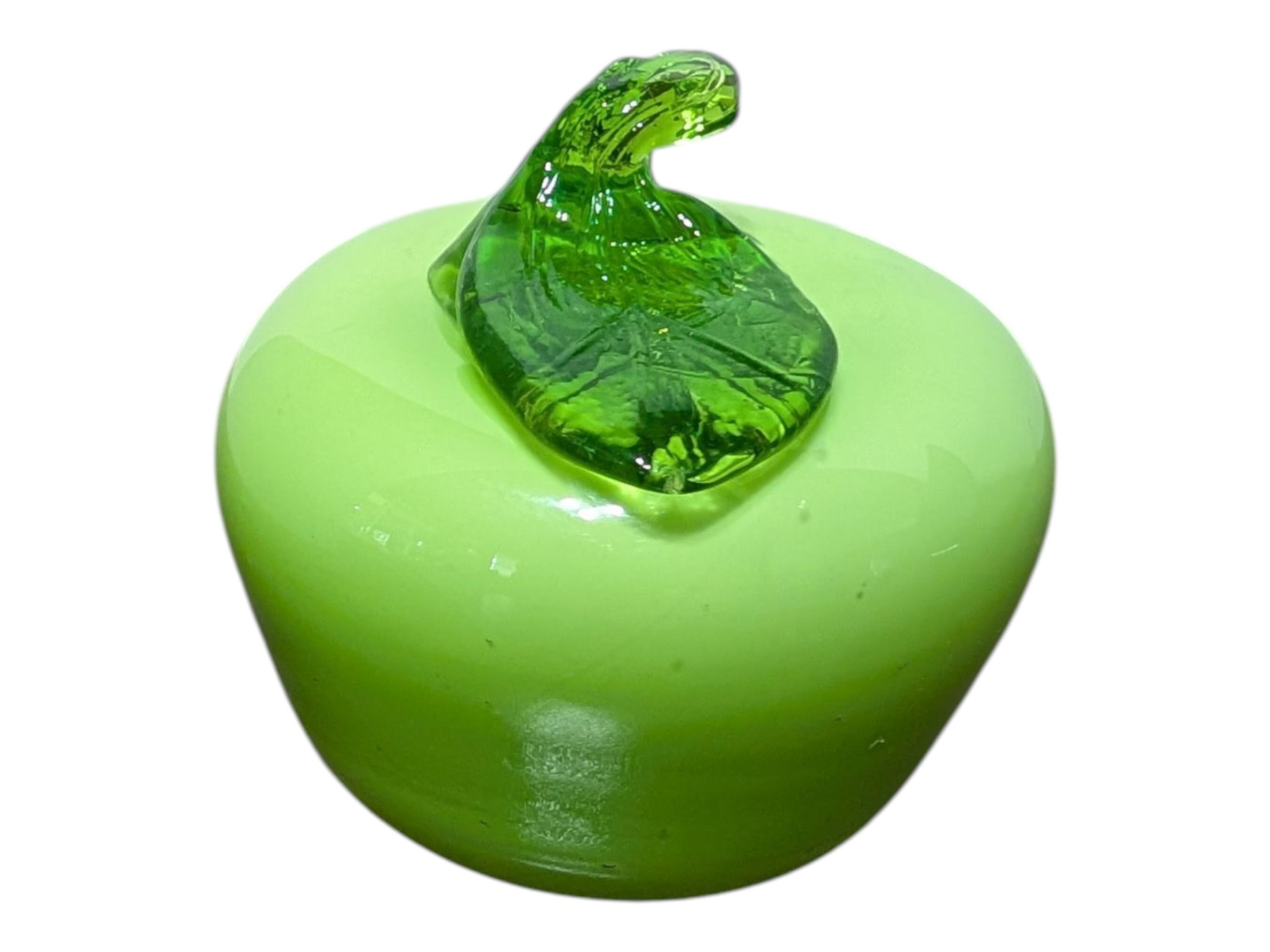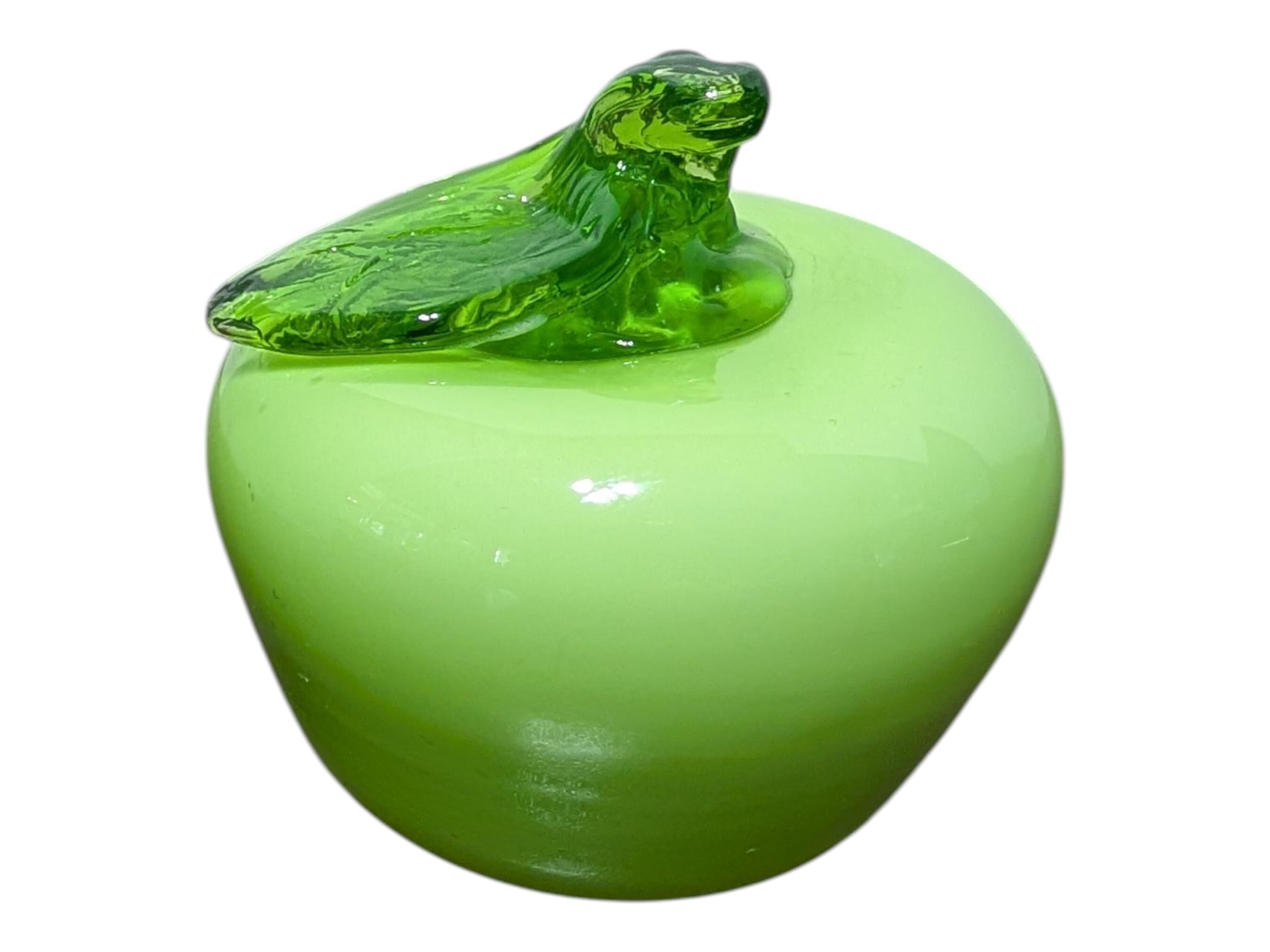 Vintage Hand-Blown Glass Apple | MCM Green Art Glass Fruit | Nonna Holiday Kitchen Decor | Supper Club Centerpiece | 1960s Glass