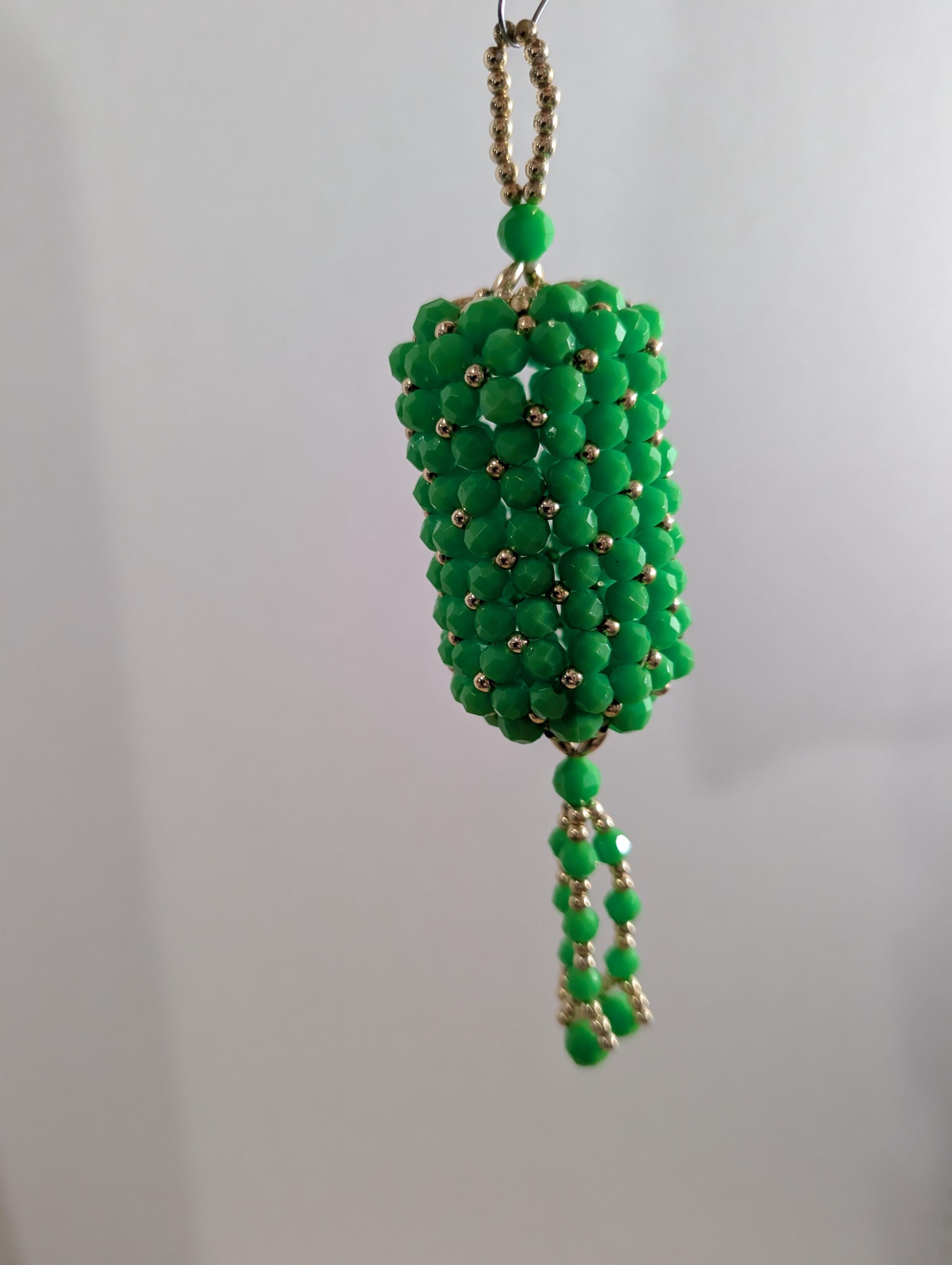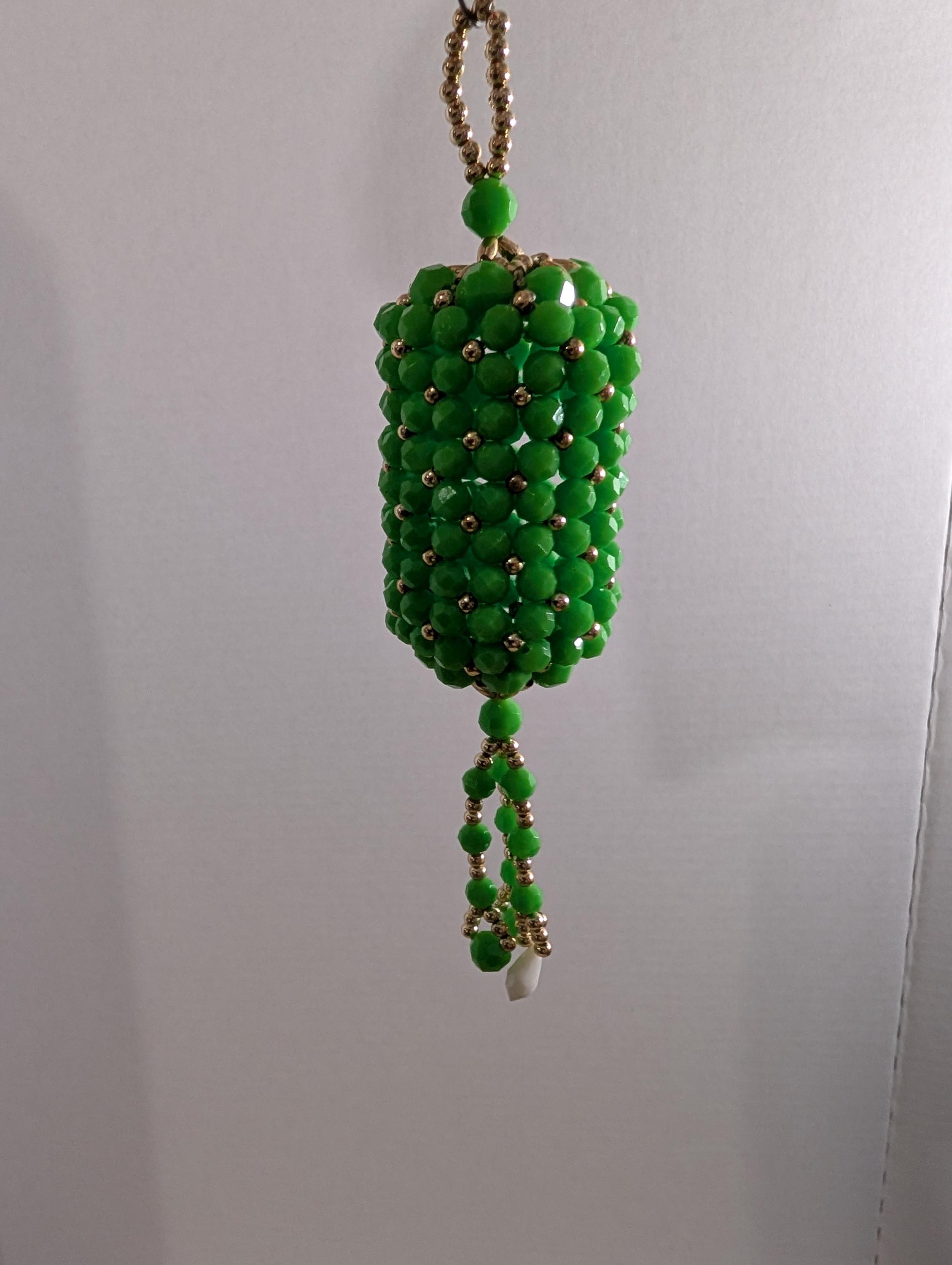 Vintage Beaded Christmas Chandelier Ornament - Green & Gold Sparkling Decor