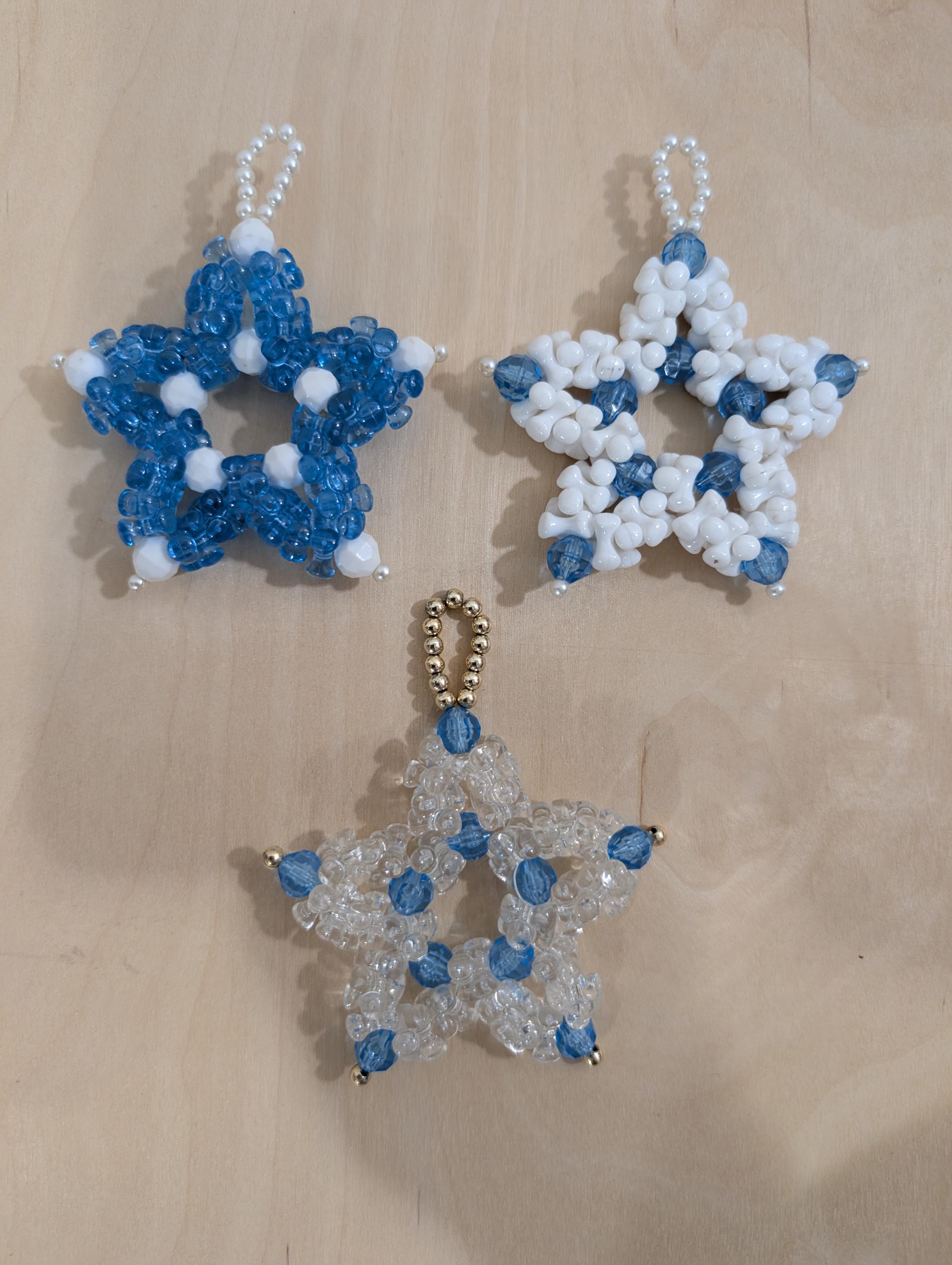 Perfect for adorning your Christmas tree, hanging in a window, or gifting to a loved one who appreciates unique, handcrafted treasures. These three assorted stars retro appeal and sparkling beauty will bring joy and warmth to your home for many seasons to come. In great vintage condition.3 inches long and 2 1/2" " inches wide.