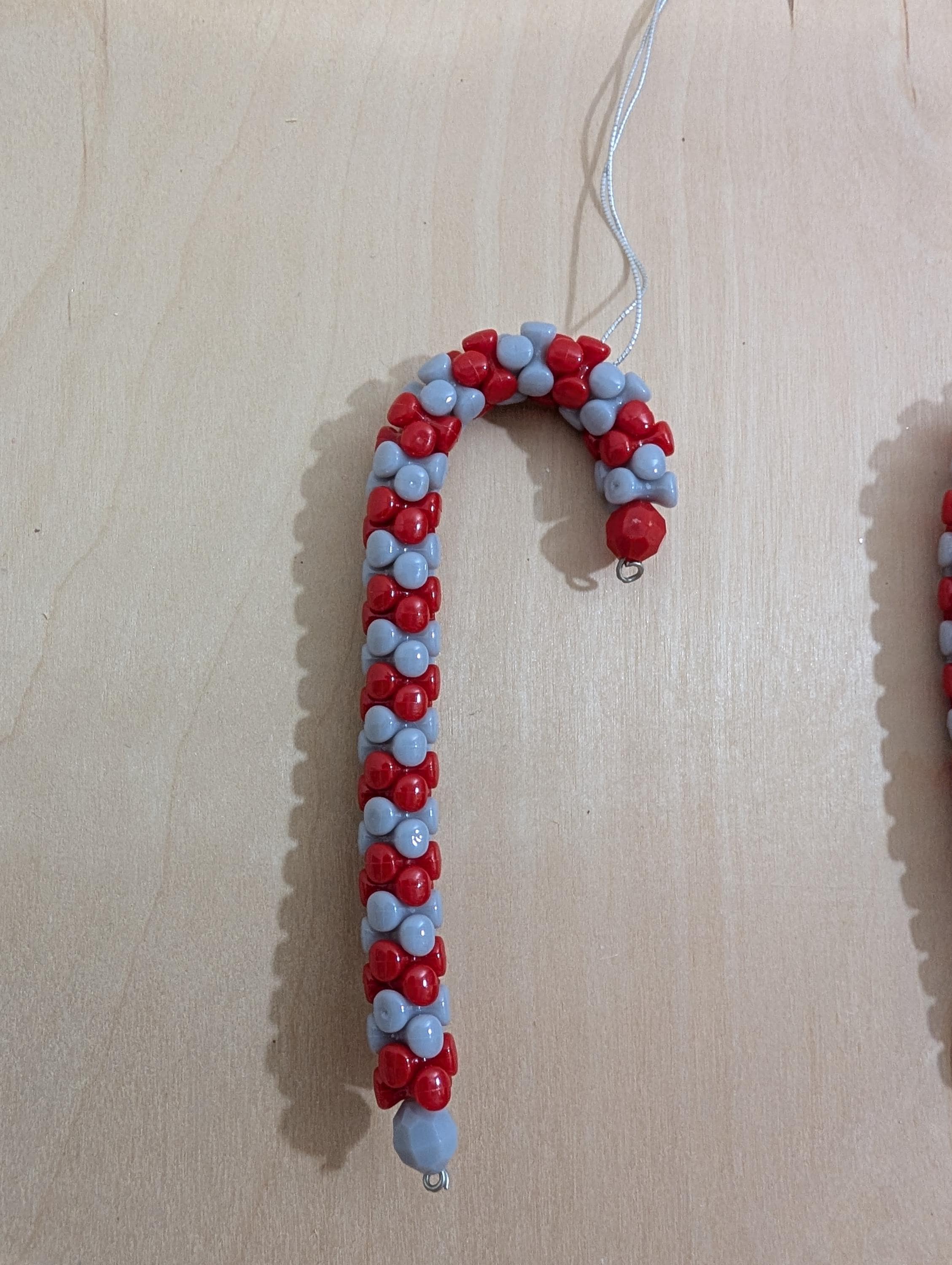 Vintage Beaded Candy Cane Ornaments - Traditional Christmas- Red and Gray -Set of 2