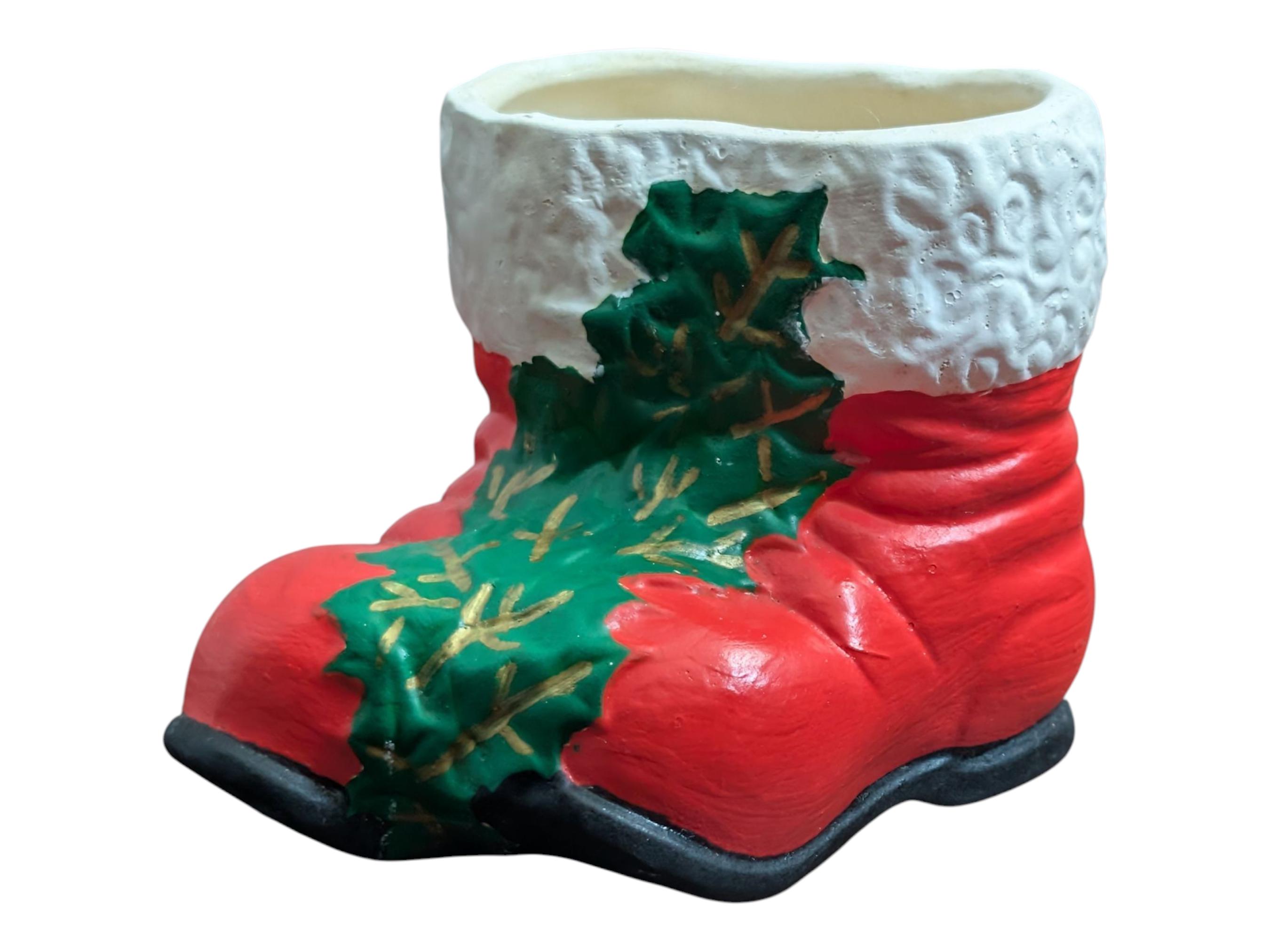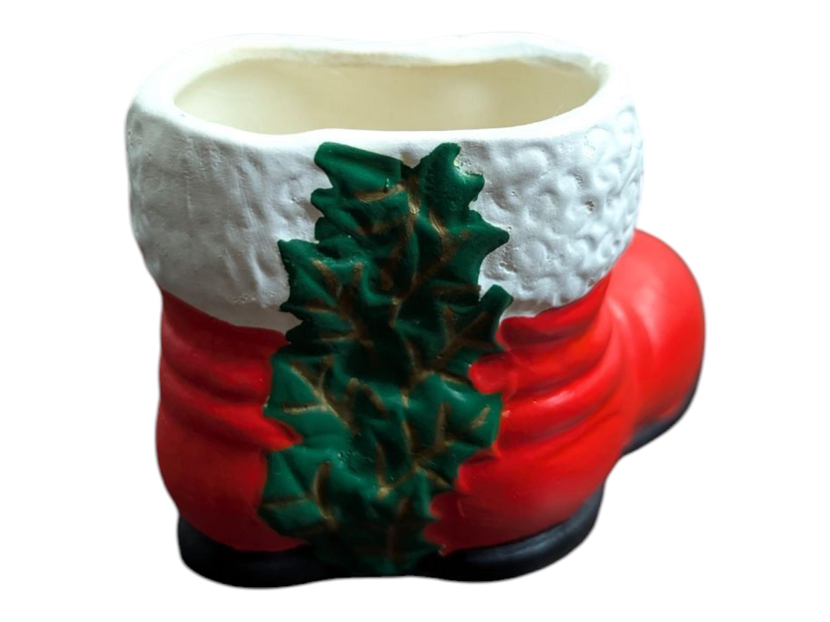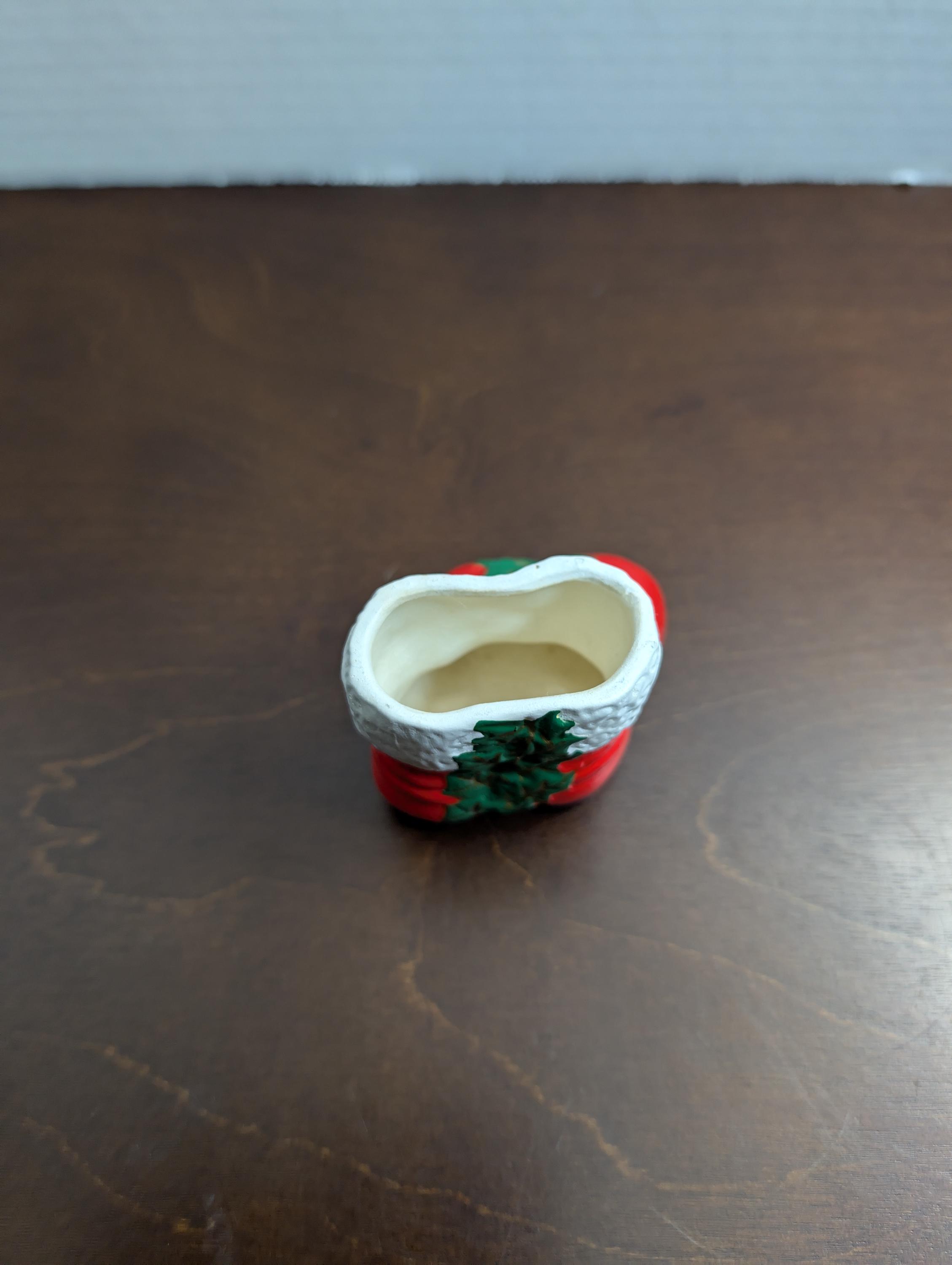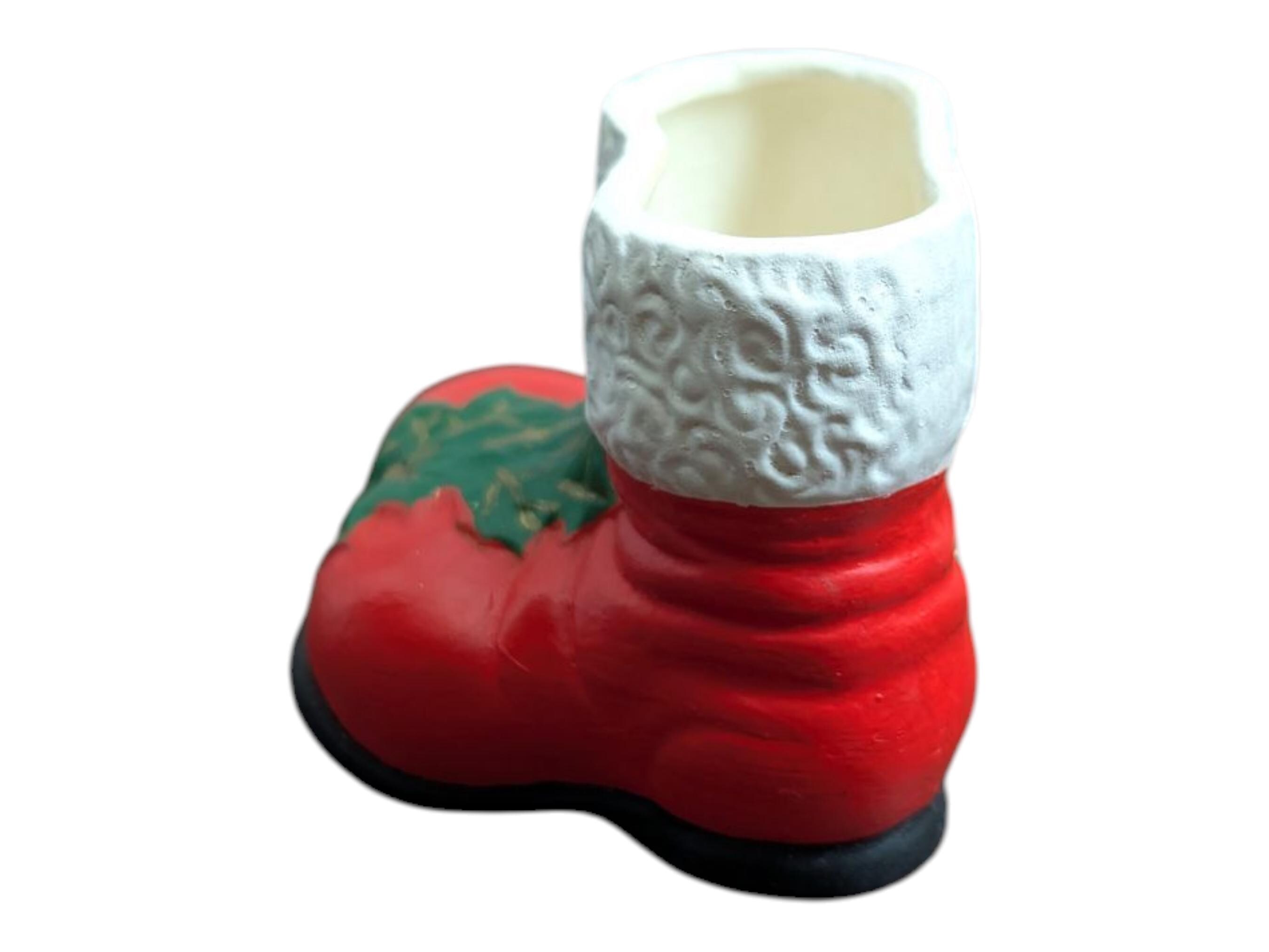 Mini Ceramic Santa Boot - Hand-Painted Christmas Decor - Tiny Holiday Home Accent-