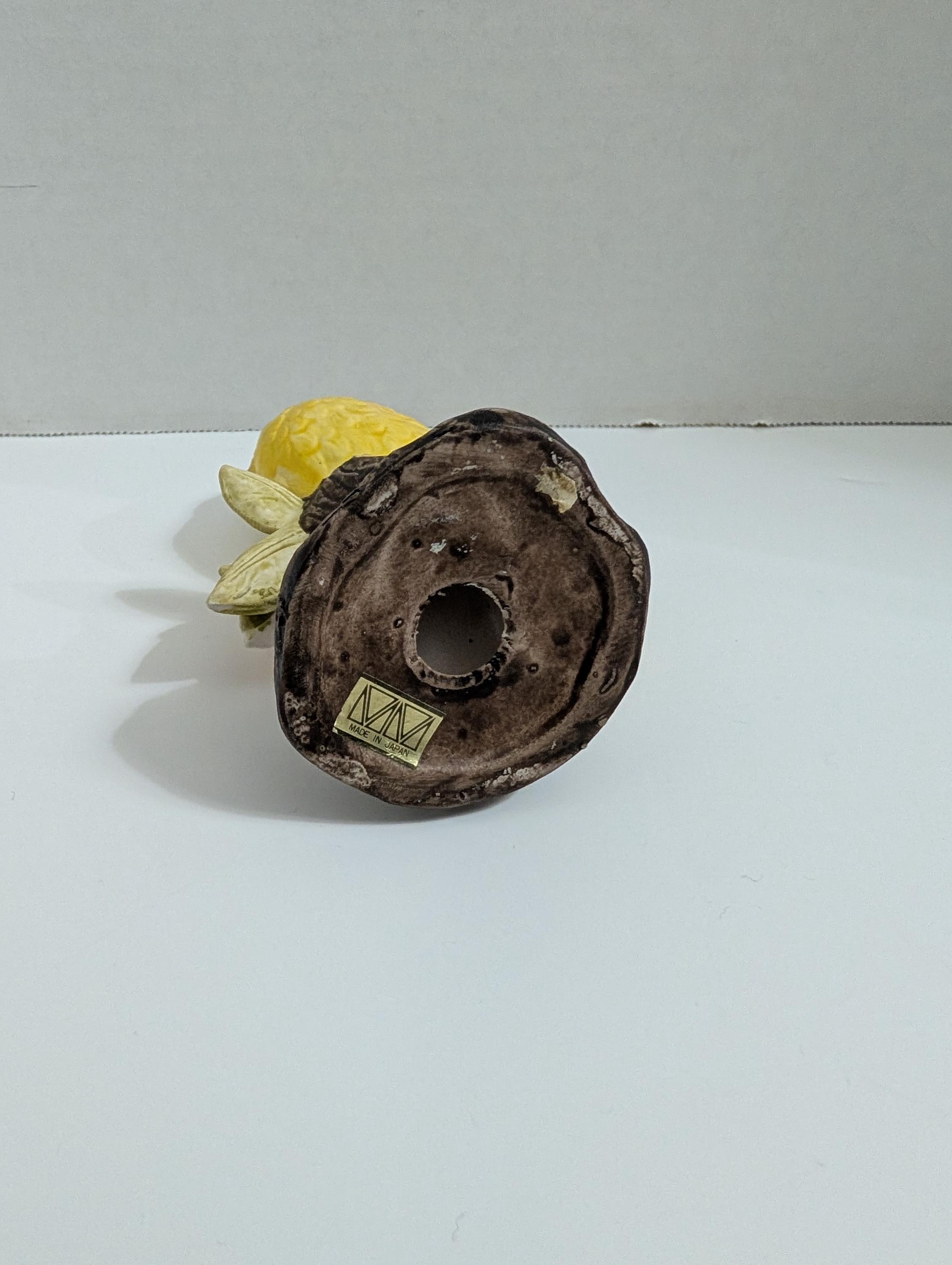 Vintage Yellow Canary Figurine Made in Japan - Ceramic Singing Bird on Flowering Branch - Mid Century Porcelain Decor - MN Japan Sticker