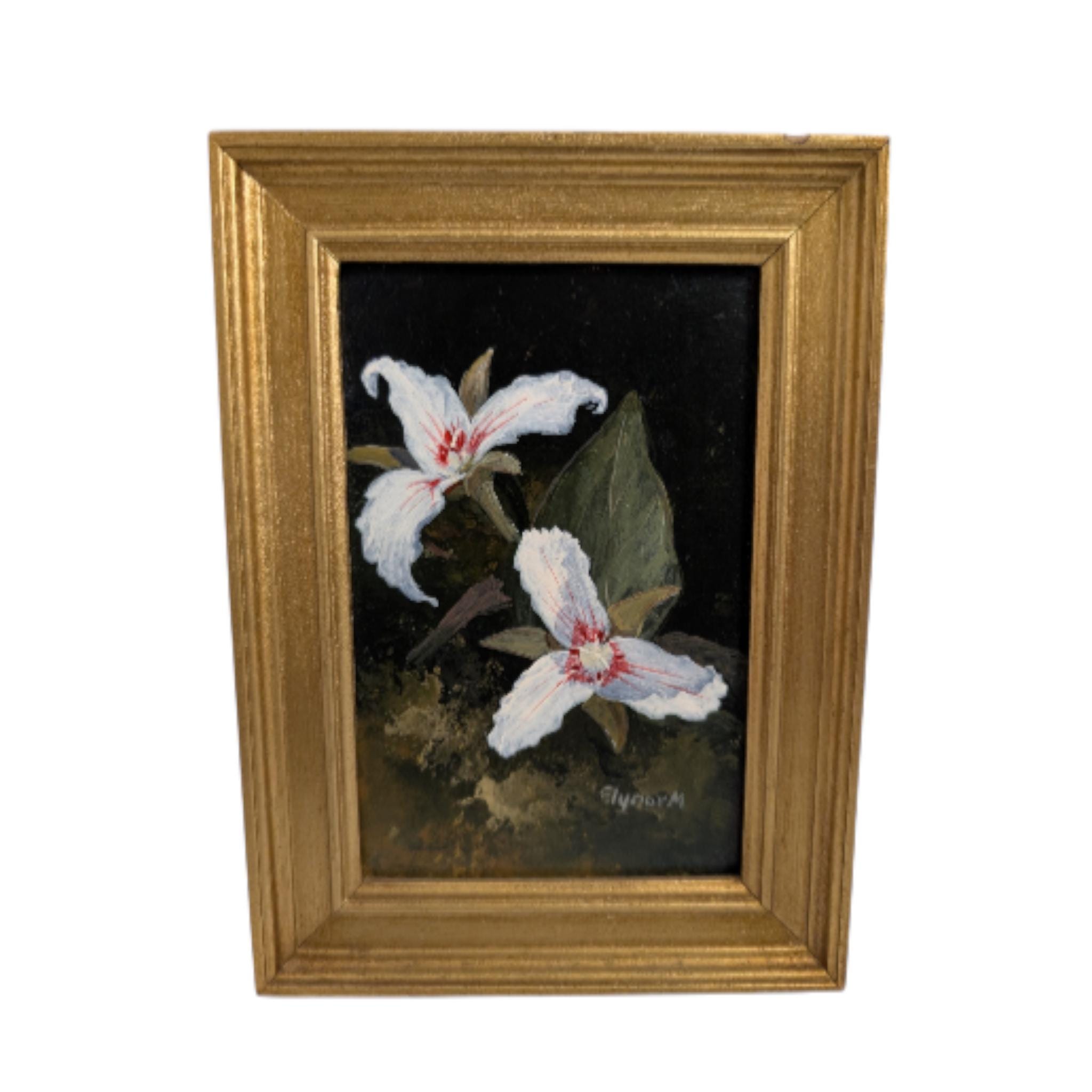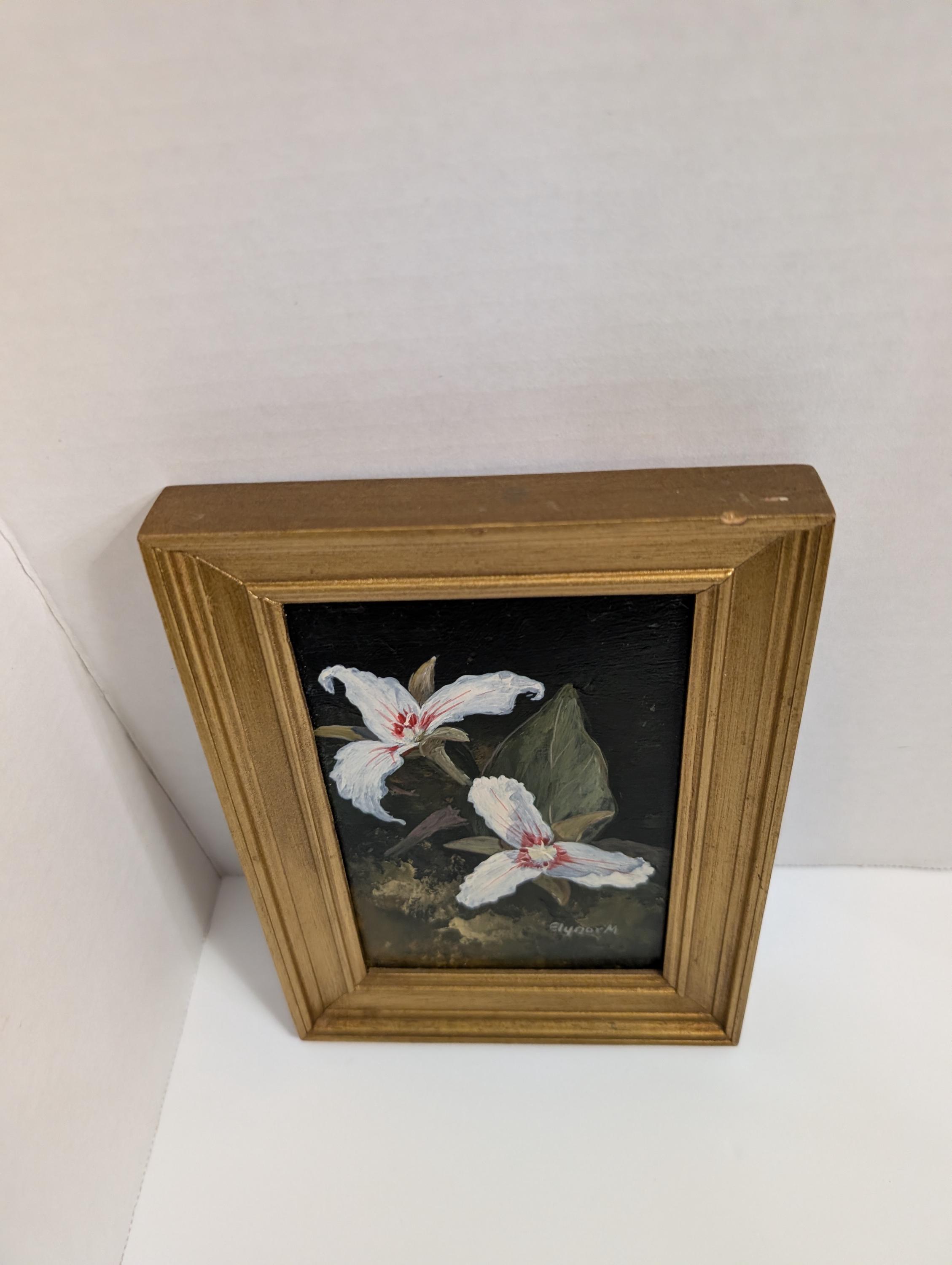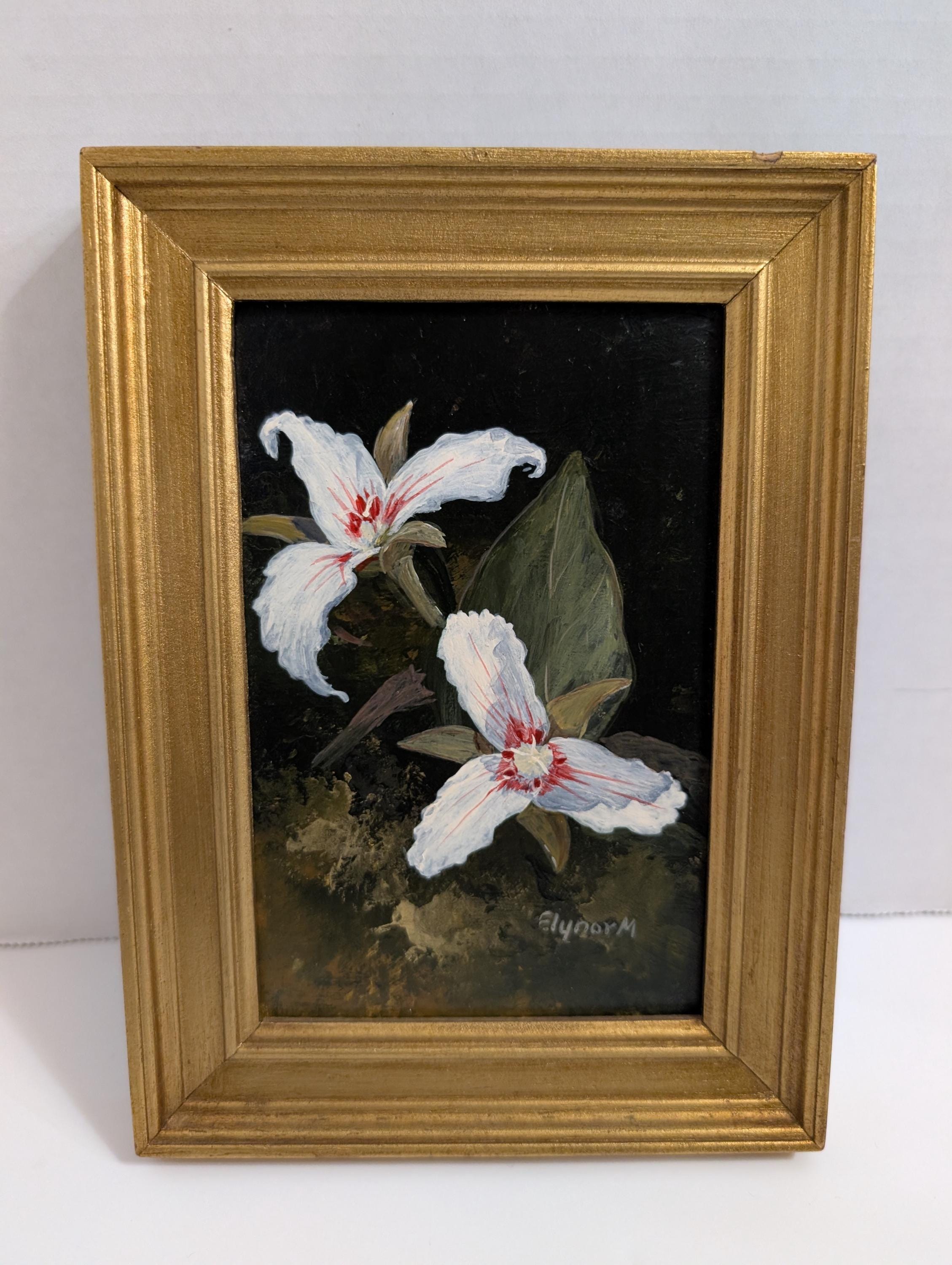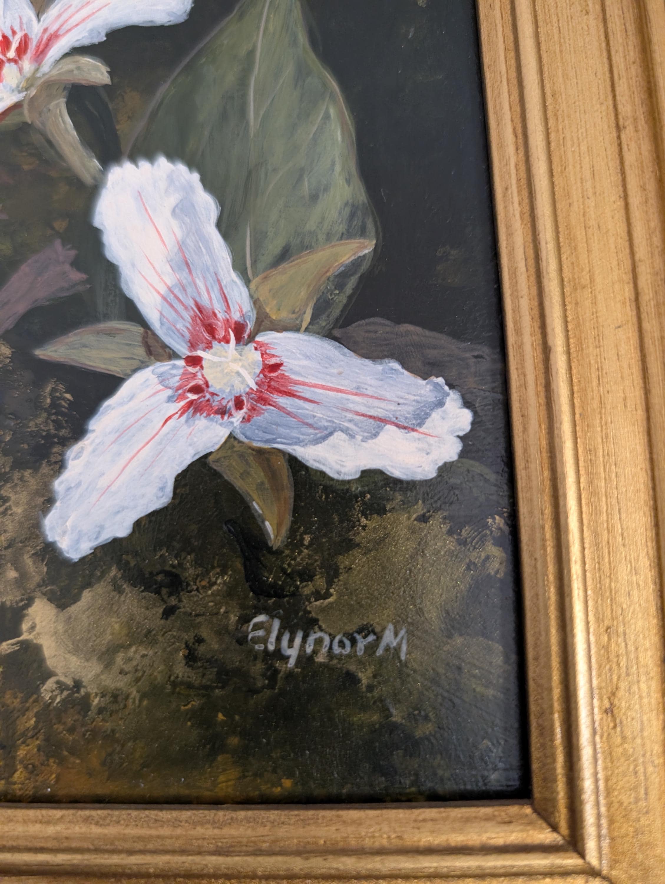 Original Oil Painting Painted Trillium Wildflower | Vintage 1980s Botanical Art by Eleanor McNerney | 5x7 Gold Framed Floral Wall Decor