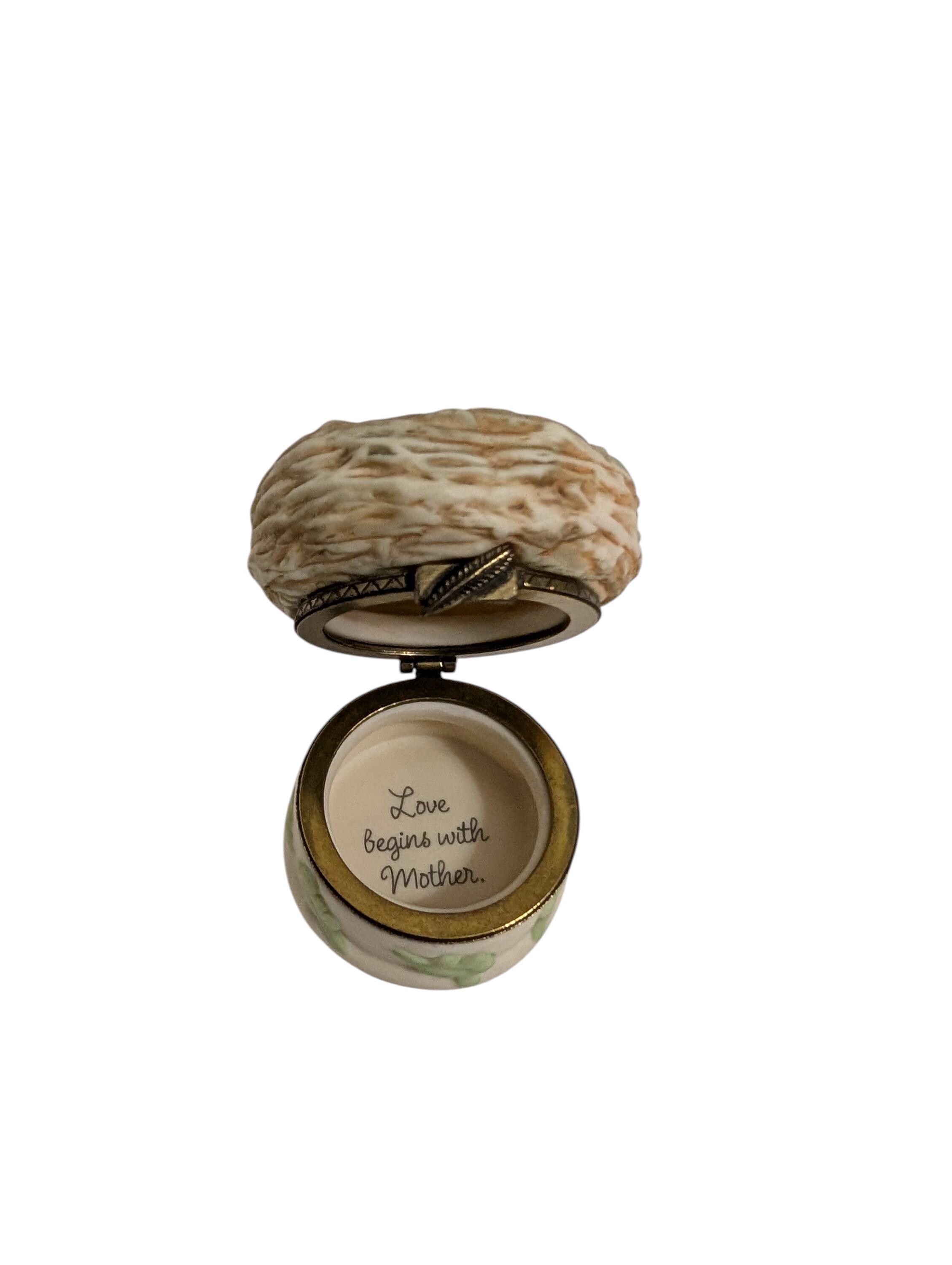 Vintage 1999 Marjolein Bastin Bird Nest Trinket Box - "Love Begins With Mother"