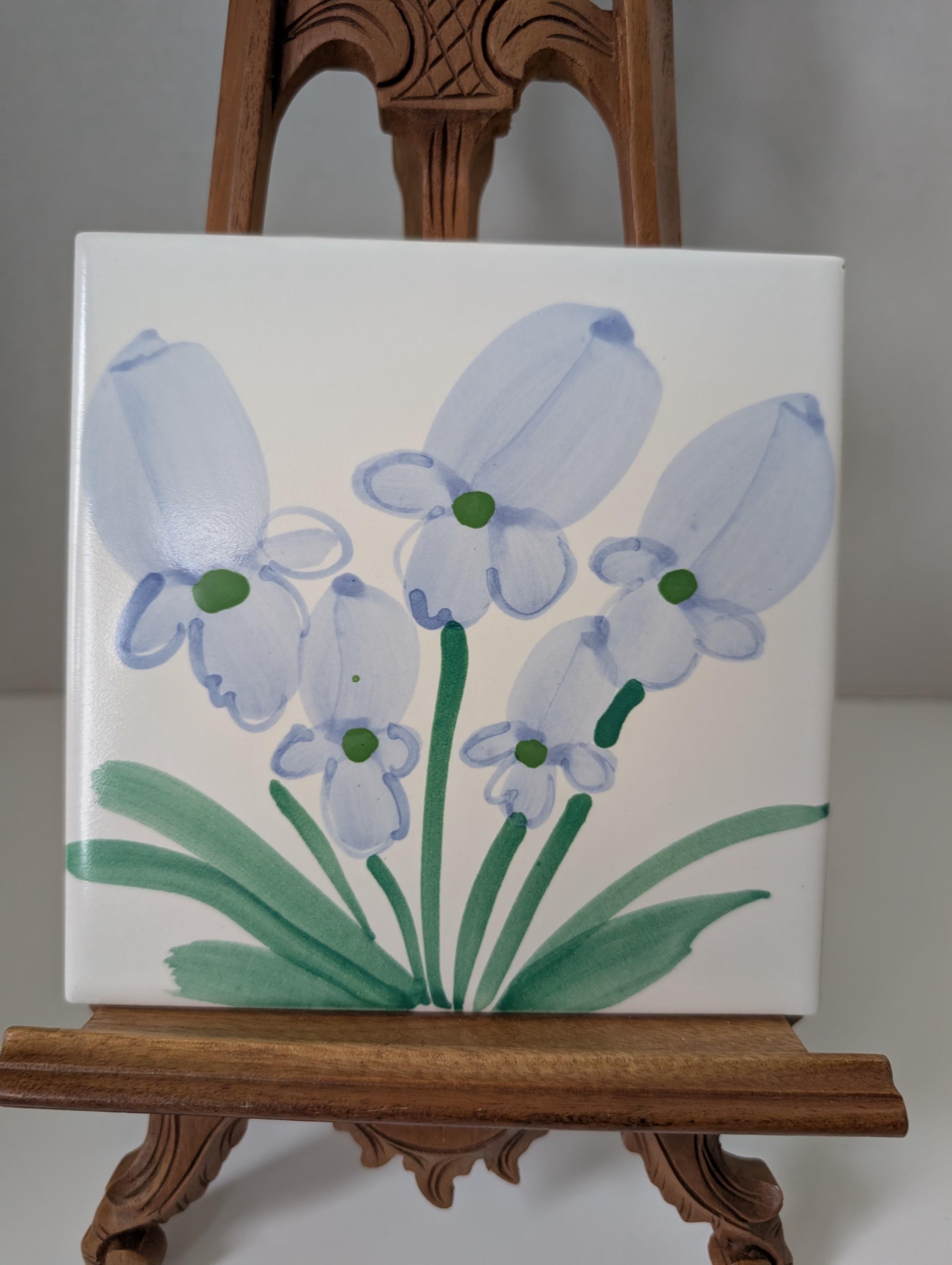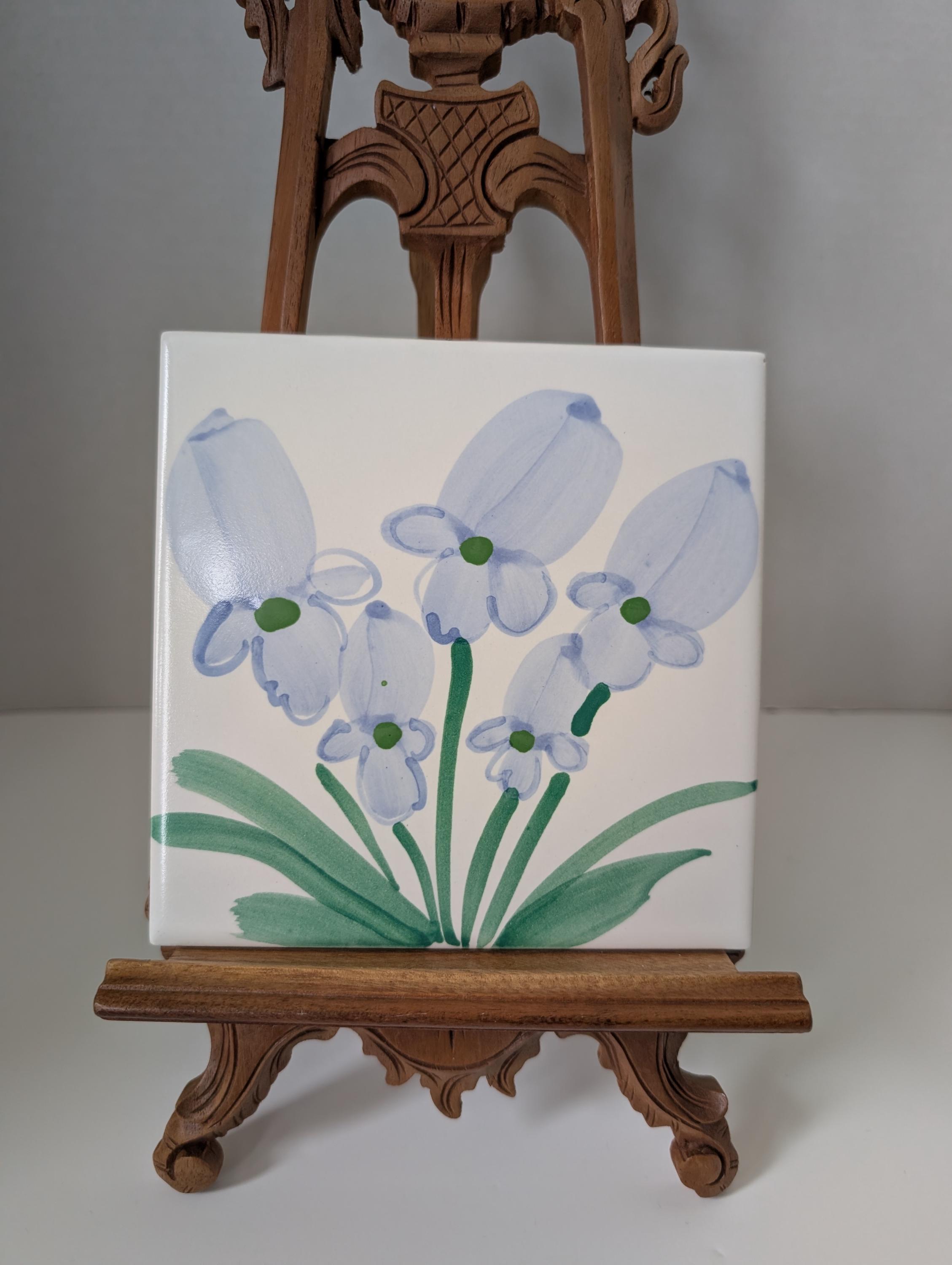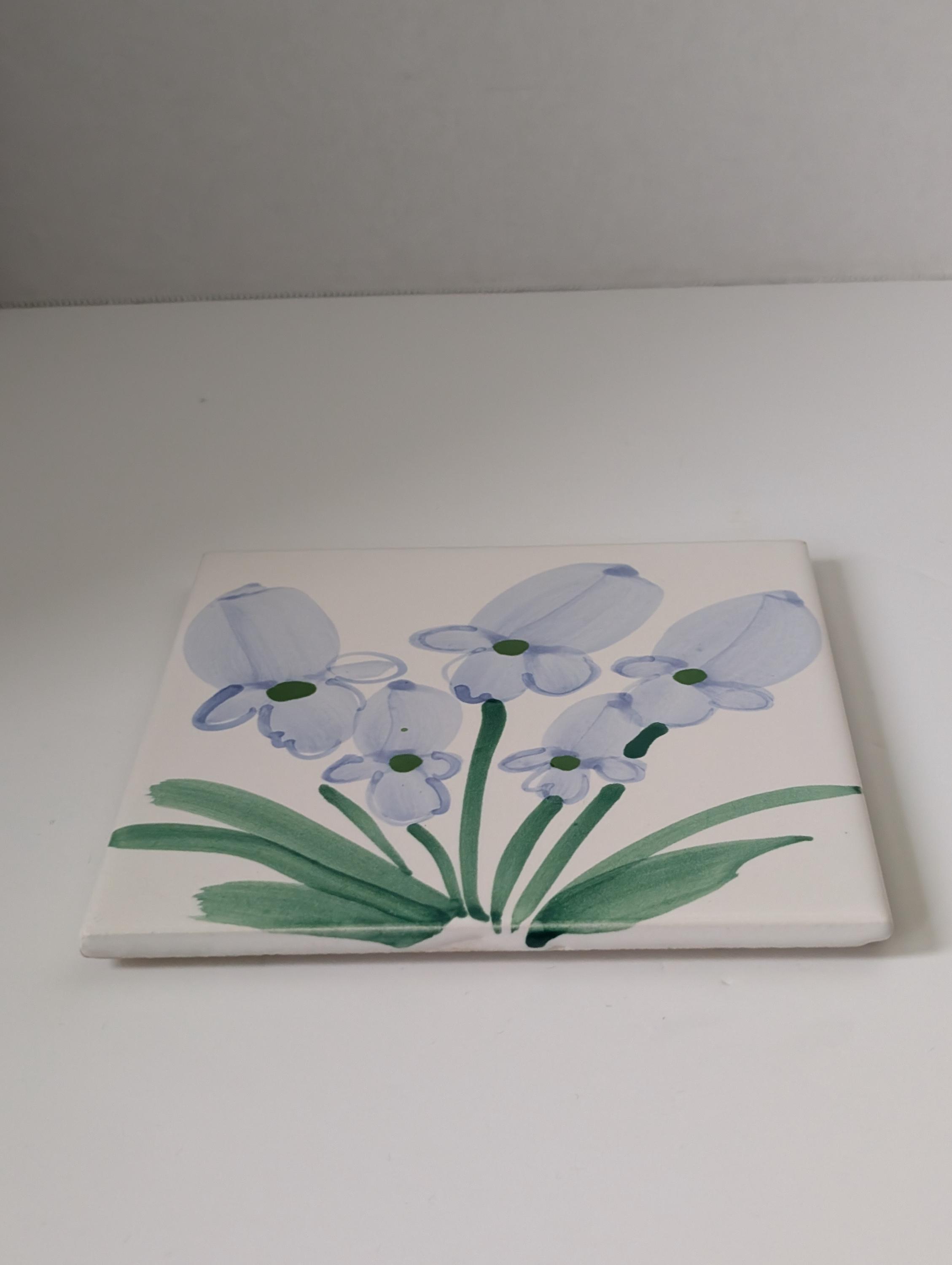Bring a touch of perennial spring into your home with this exquisite hand-painted iris tile. Each petal is captured with delicate brushwork, showcasing the vibrant blues and deep purples of a blooming iris. Perfect as a framed wall accent, a decorative kitchen backsplash centerpiece, or a stunning tabletop trivet. 6 x 6 inch tile. H19