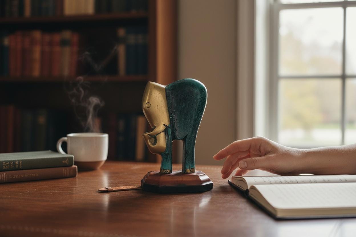 Add a touch of grounded wisdom to your shelf or desk with this striking Mid-Century Modern style elephant figurine.