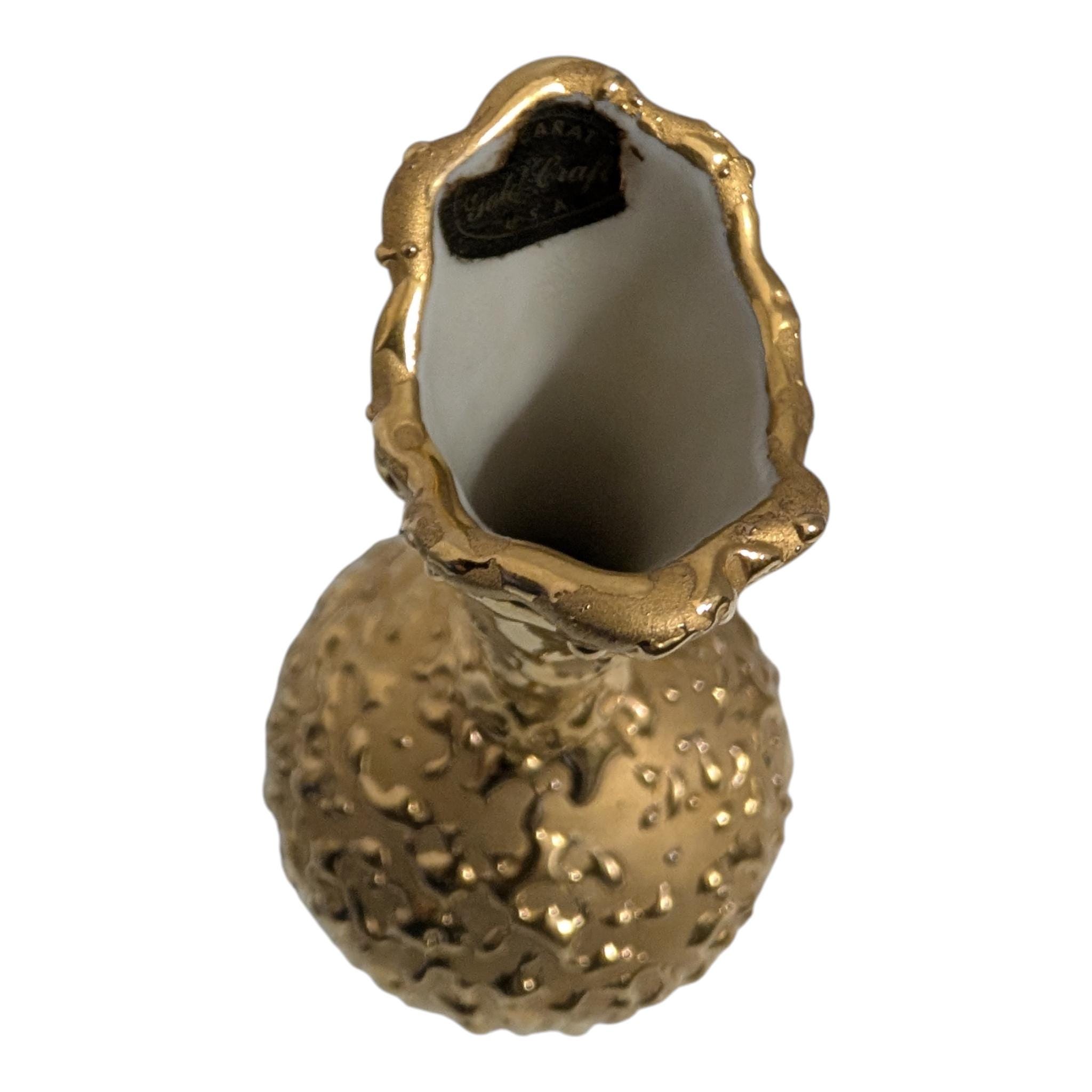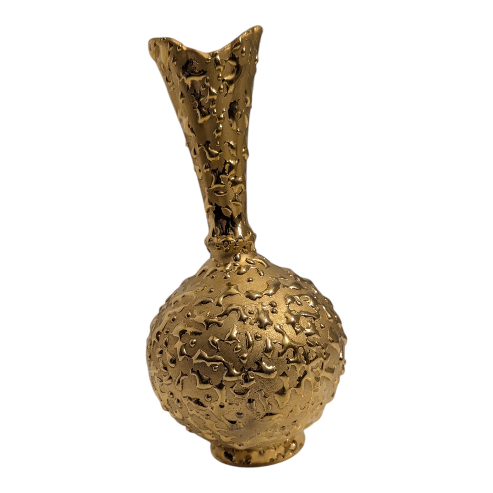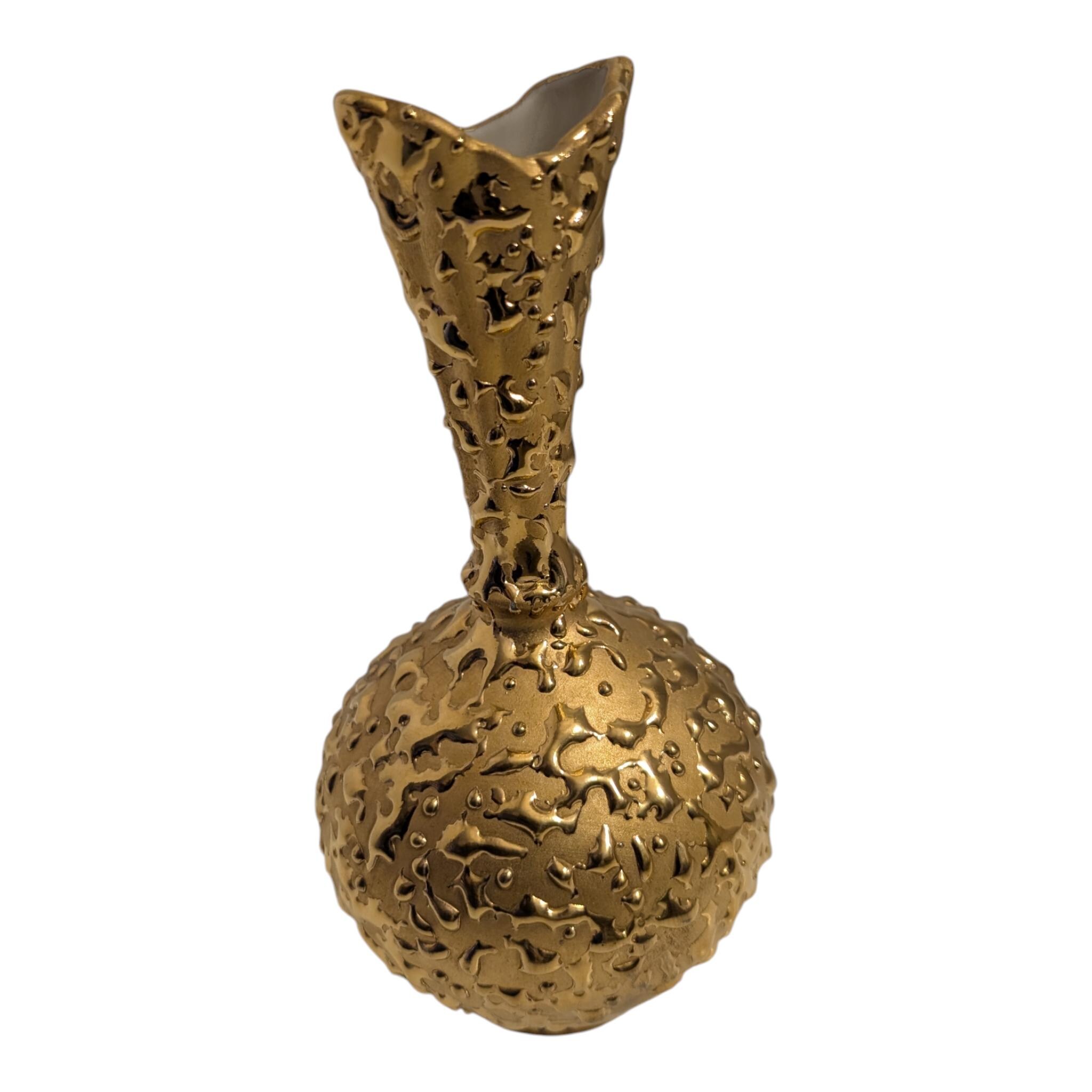 Vintage 22K Weeping Gold Bud Vase by Gold Craft - Mid Century Modern Hollywood Regency Decor - Hand Decorated 1950s Textured Decor