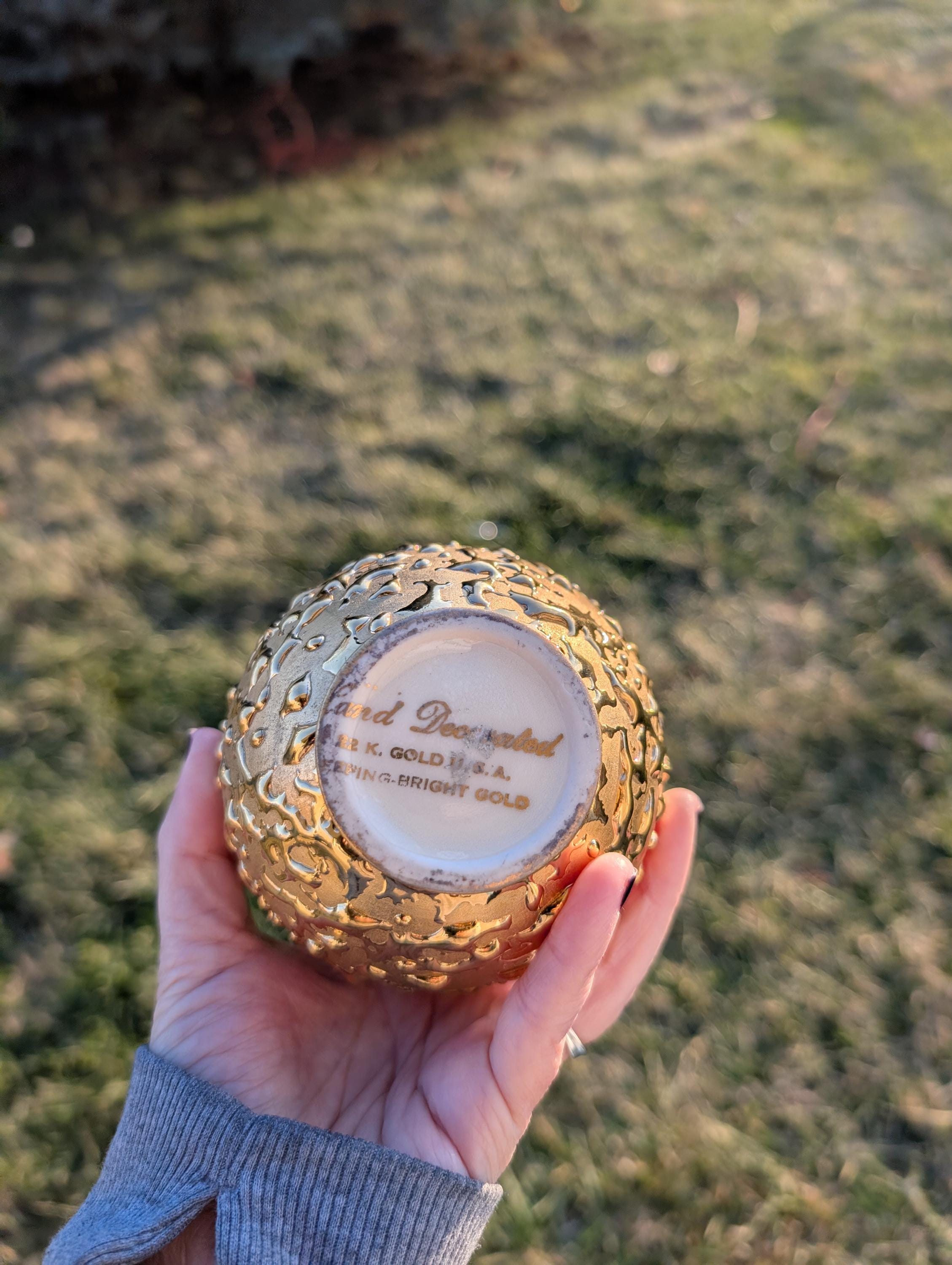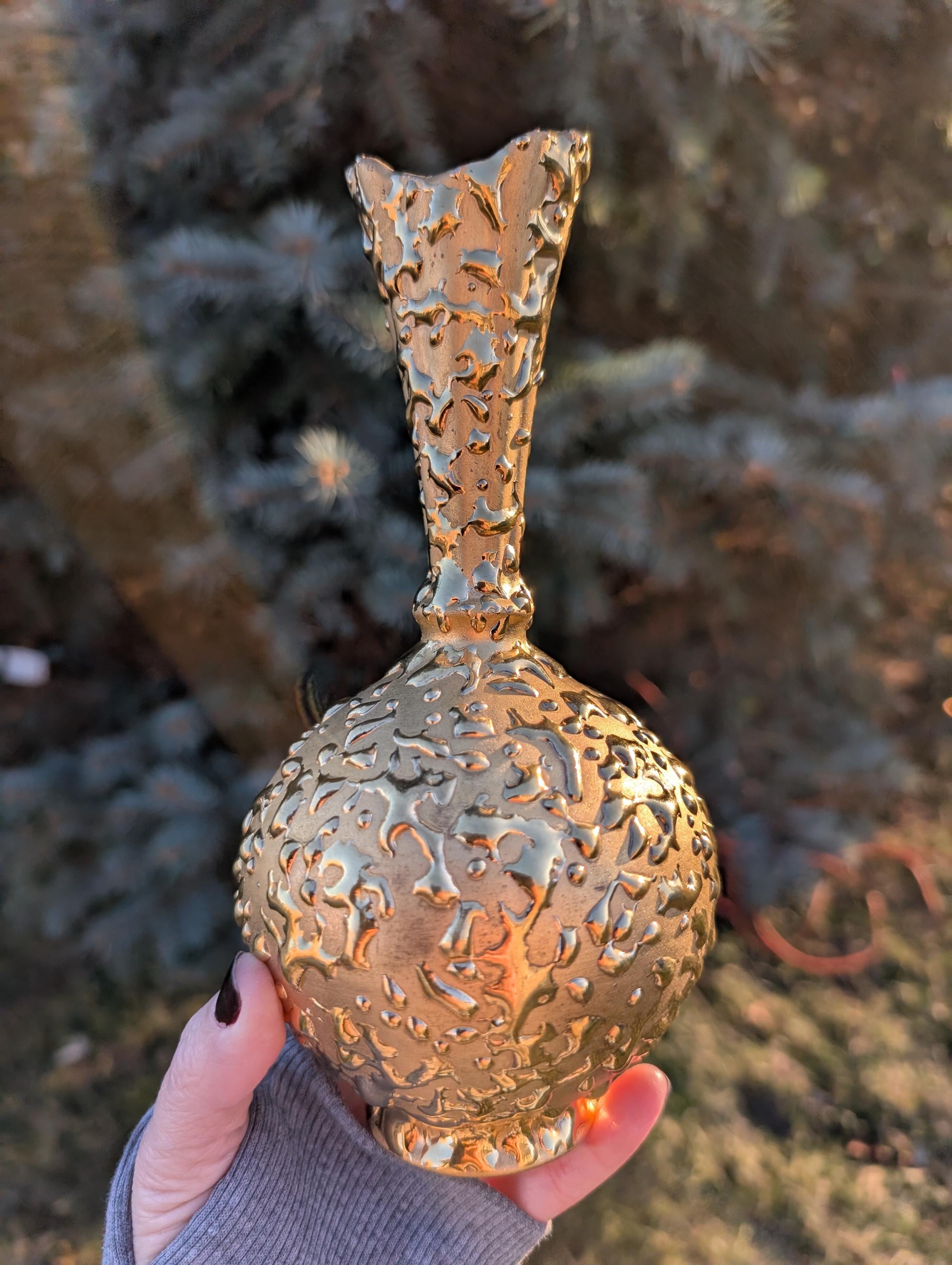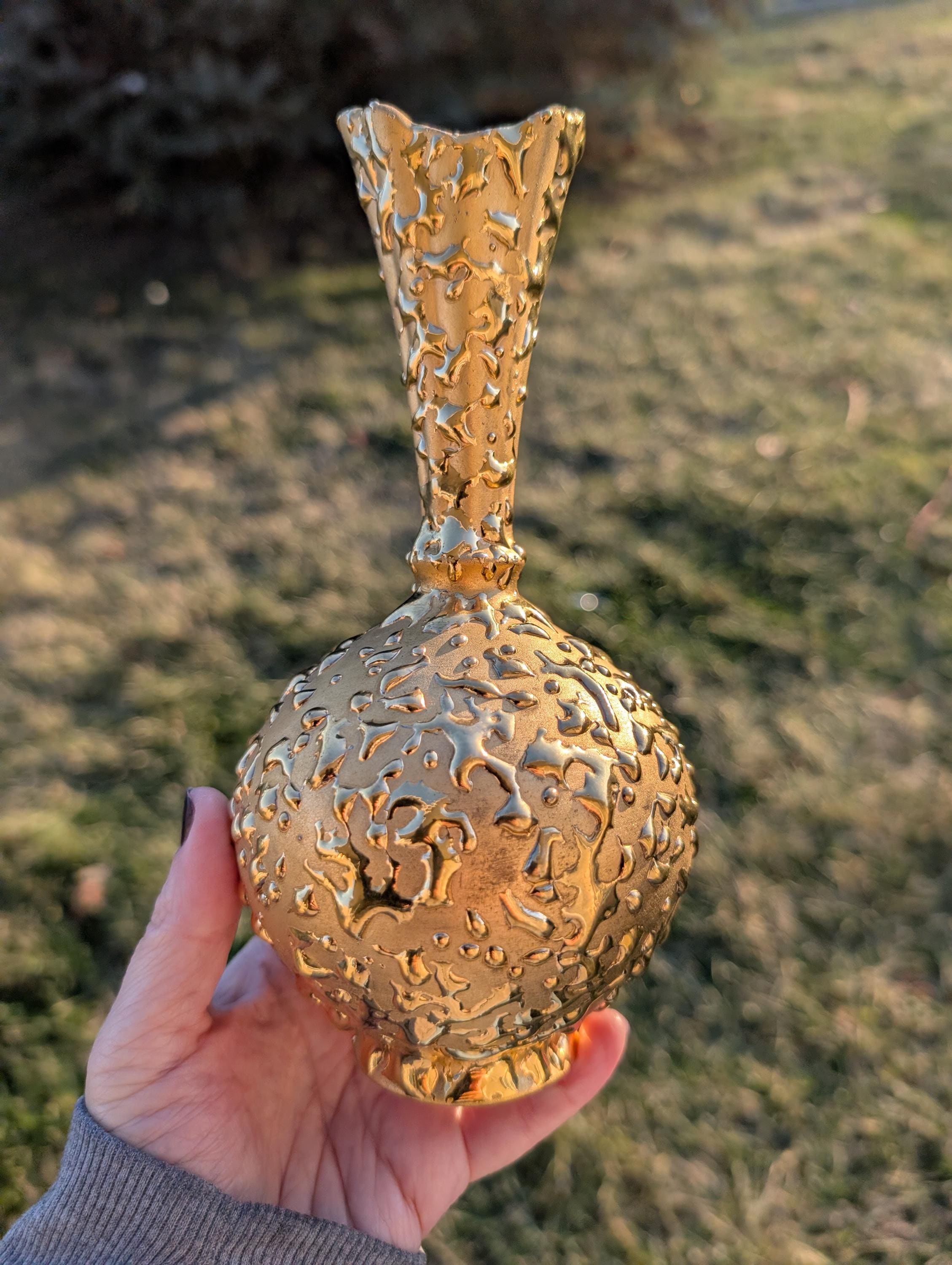 Vintage 22K Weeping Gold Bud Vase by Gold Craft - Mid Century Modern Hollywood Regency Decor - Hand Decorated 1950s Textured Decor