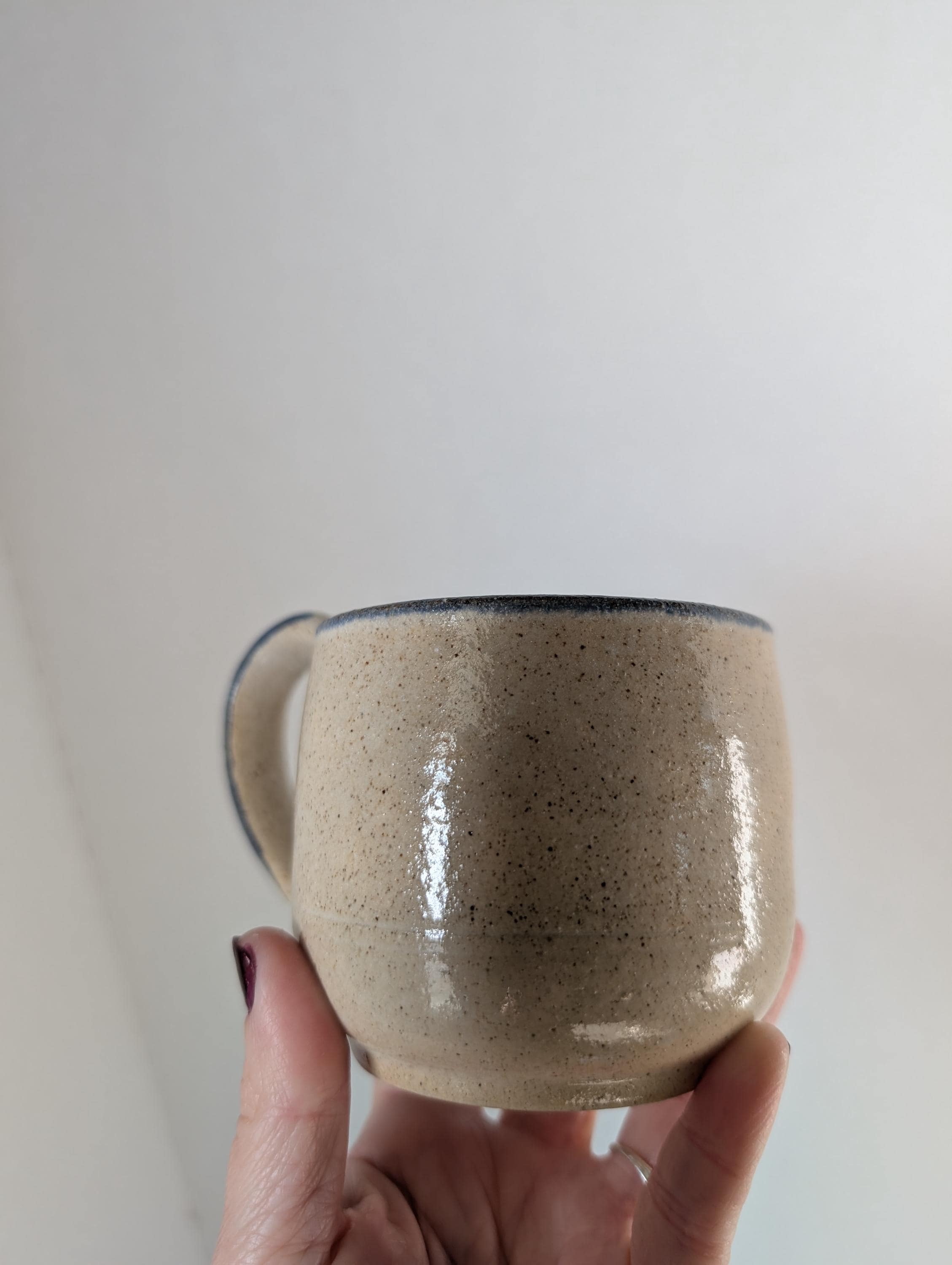 Vintage Signed Studio Pottery Mug - Speckled Stoneware with Cobalt Blue Heart - Hand-Thrown Folk Art Coffee Cup - Country Kitchen Decor