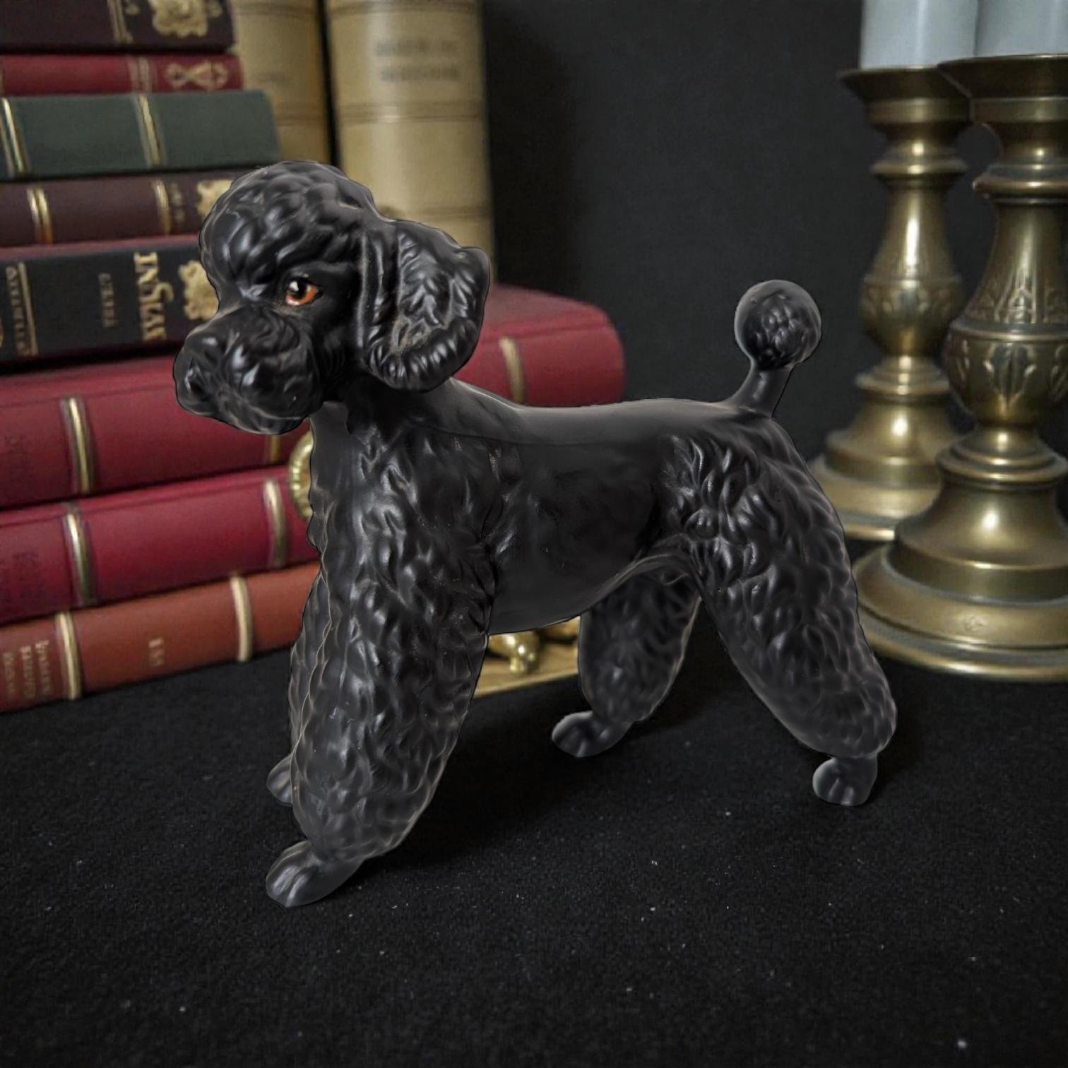 Vintage Black Poodle Figurine - Mid-Century Japan Ceramic - MCM Dog Statue