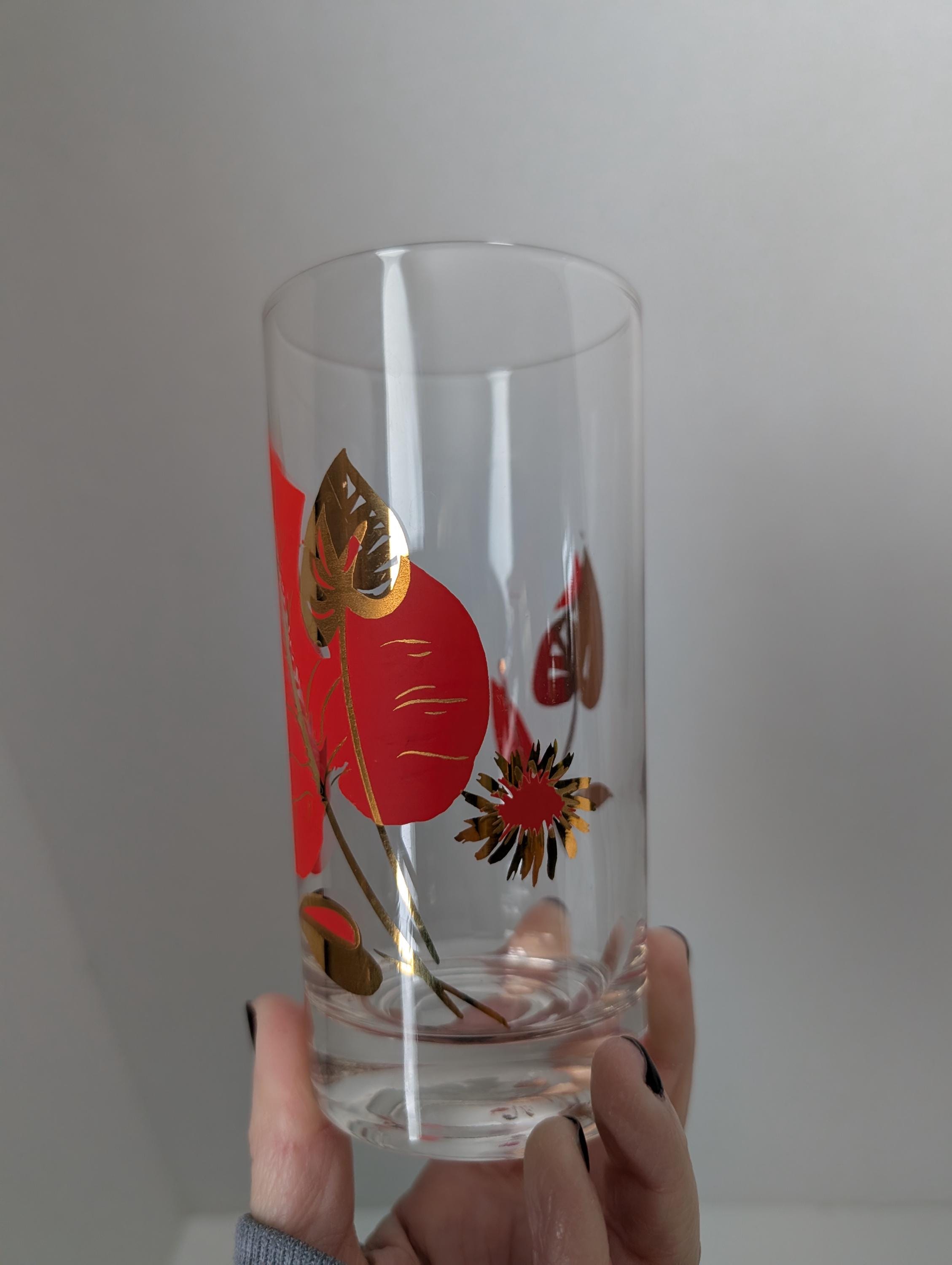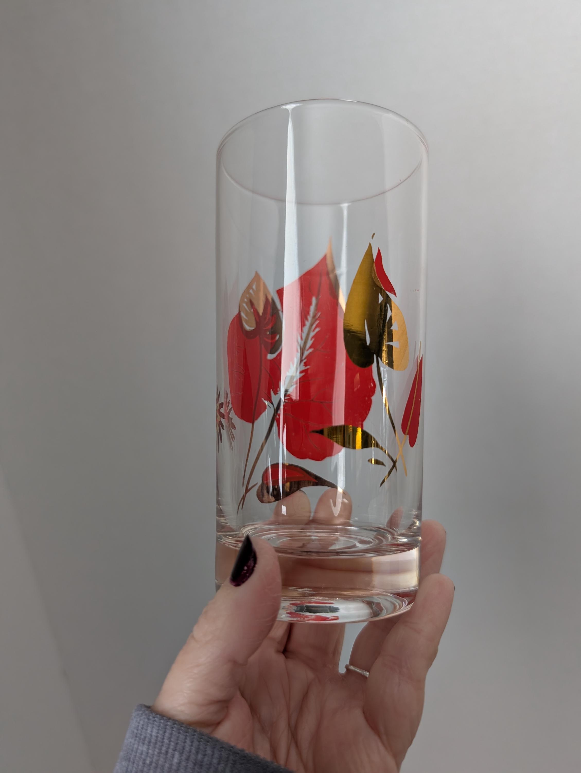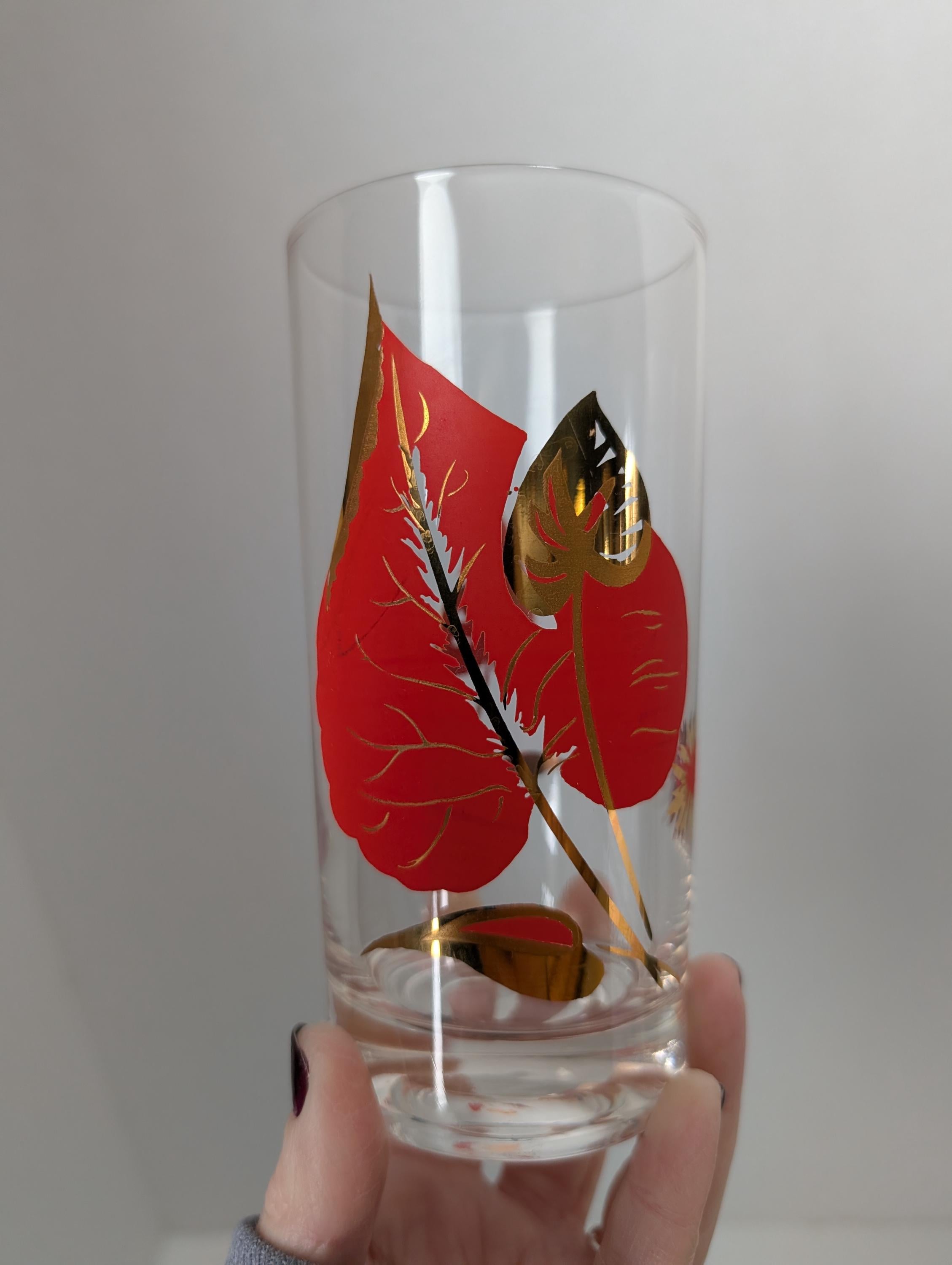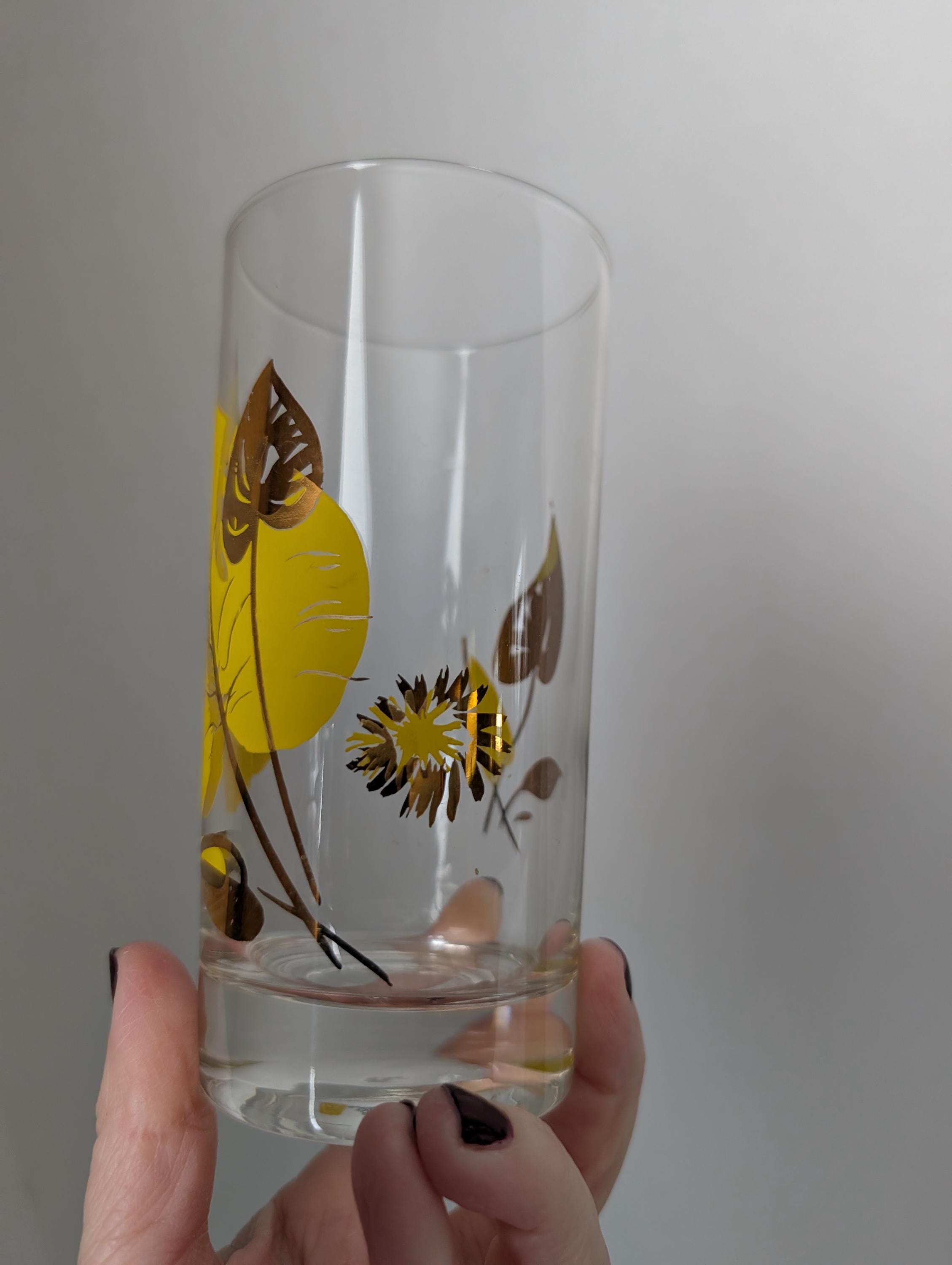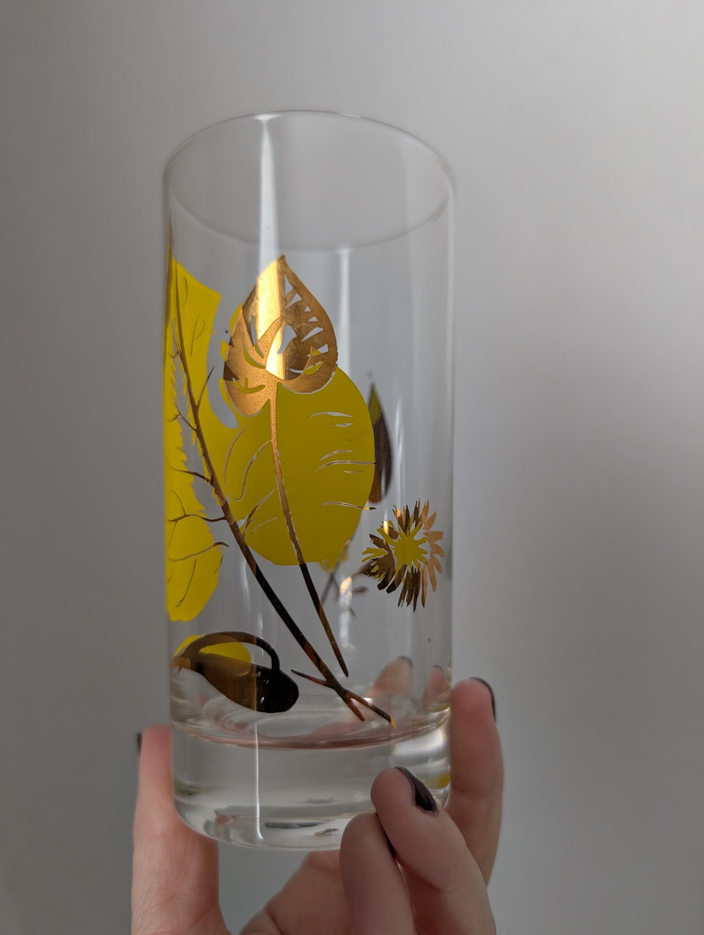 Set of 3 Vintage Federal Glass Highball Glasses - Mid Century Modern Gold Leaf Tumblers - MCM Atomic Leaf Barware