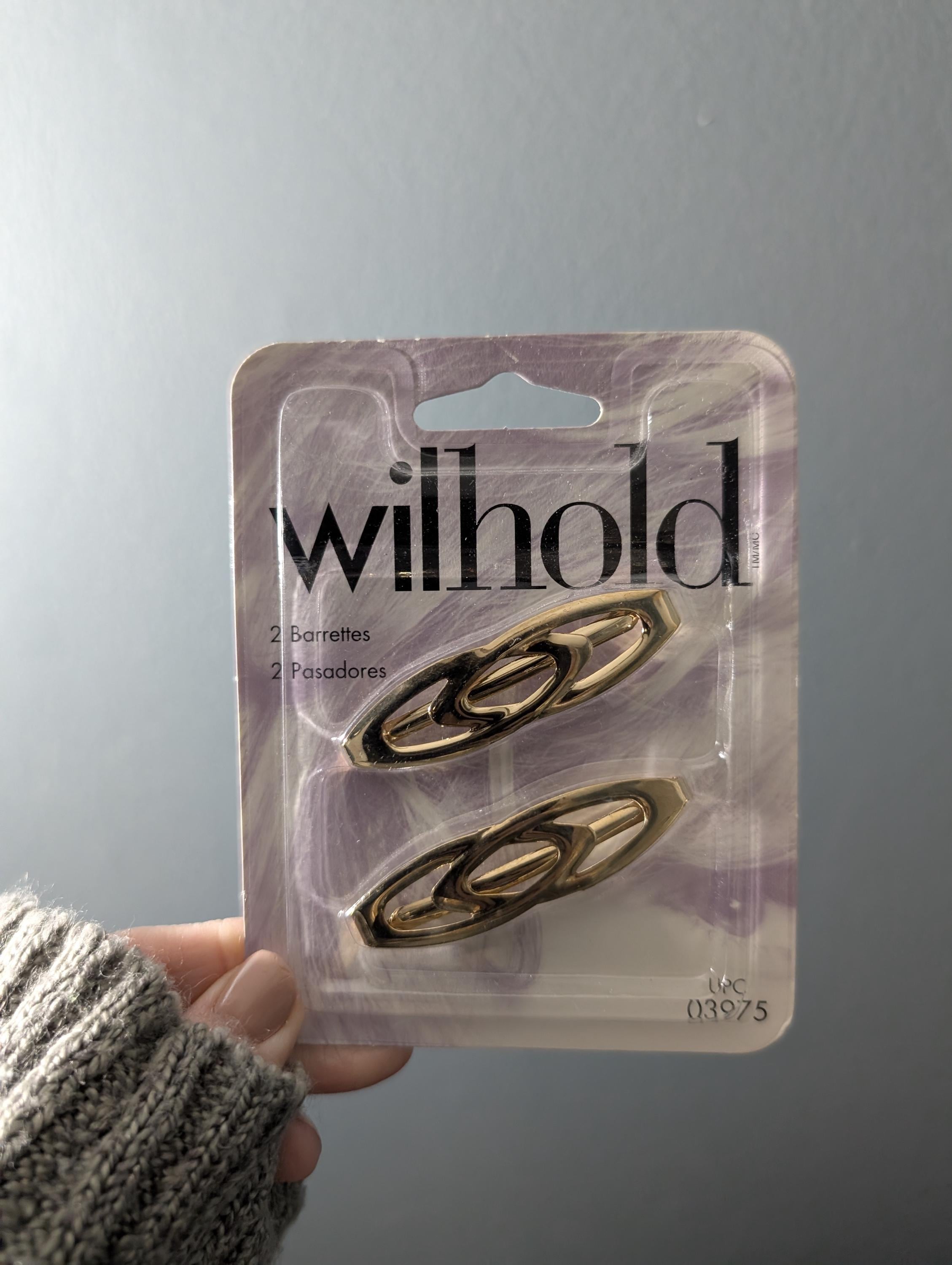 Elevate your daily look with these New Old Stock (NOS) Wilhold barrettes. Featuring a sophisticated interlocking open-swirl design in a polished gold tone, these clips offer a timeless, minimalist aesthetic that works for everything from office wear to a night out.