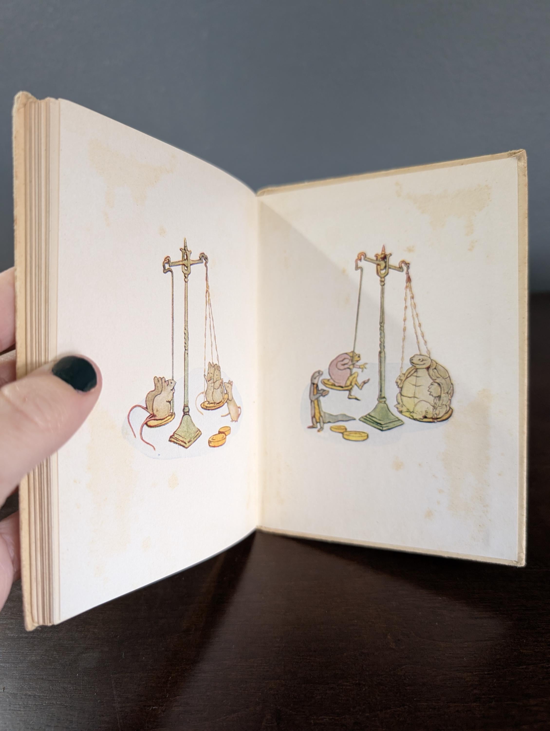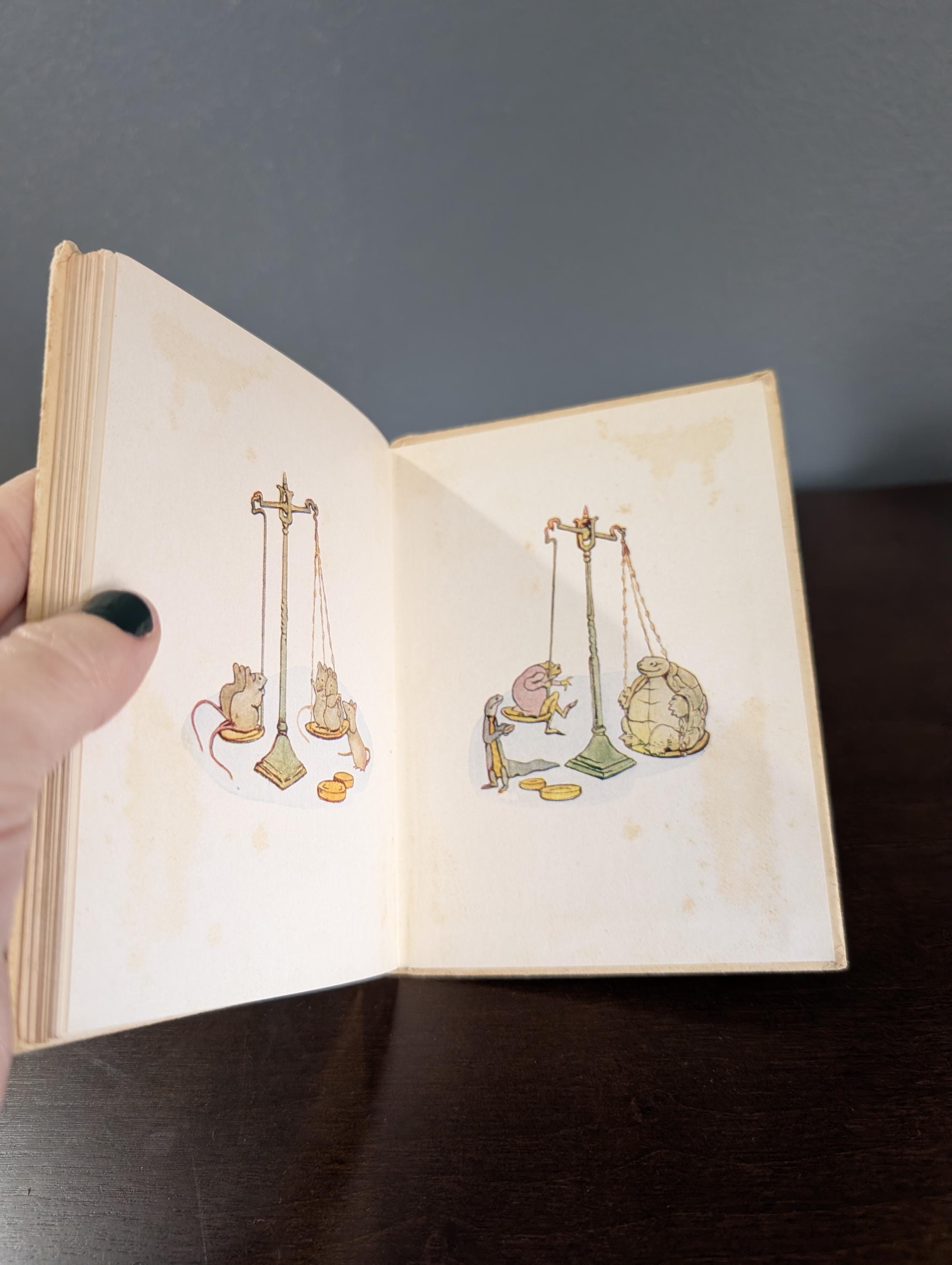 First published in 1909, this charming story follows a cat and a dog who run a village shop—though they have a bit of trouble collecting payments from their animal customers! This specific volume was printed in May 1963 by the legendary firm Edmund Evans, Ltd., known for maintaining the high-quality color standards Beatrix Potter demanded for her work.