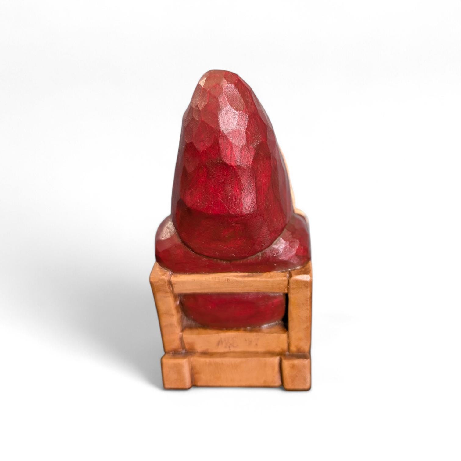 Condition: Excellent vintage/artisan condition. The natural wood grain and tool marks are intentional features of the primitive style. 5 inches tall. X9