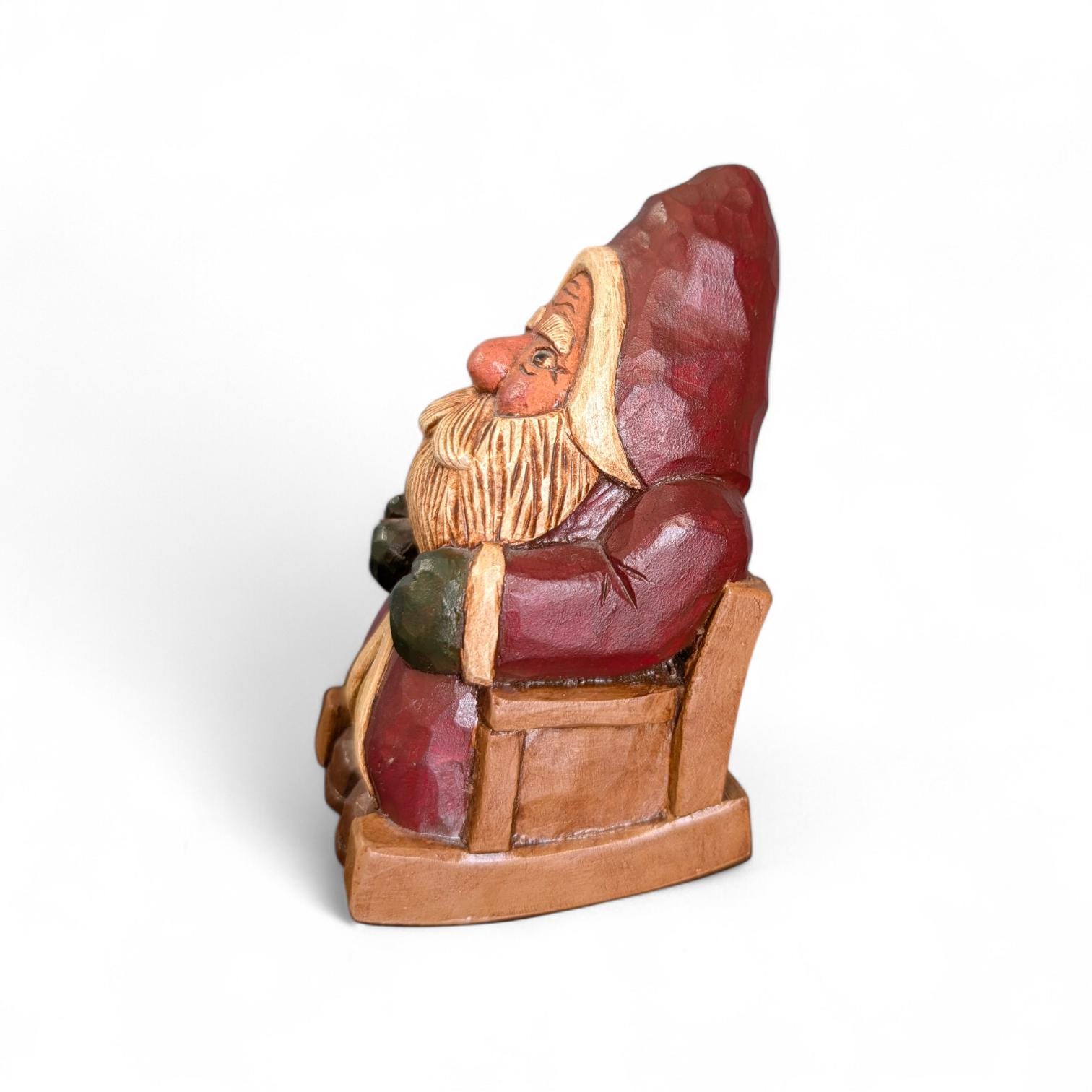 Hand Carved Wood Primitive Santa in Rocking Chair- Artist Signed Folk Art - Rustic Father Christmas Figure