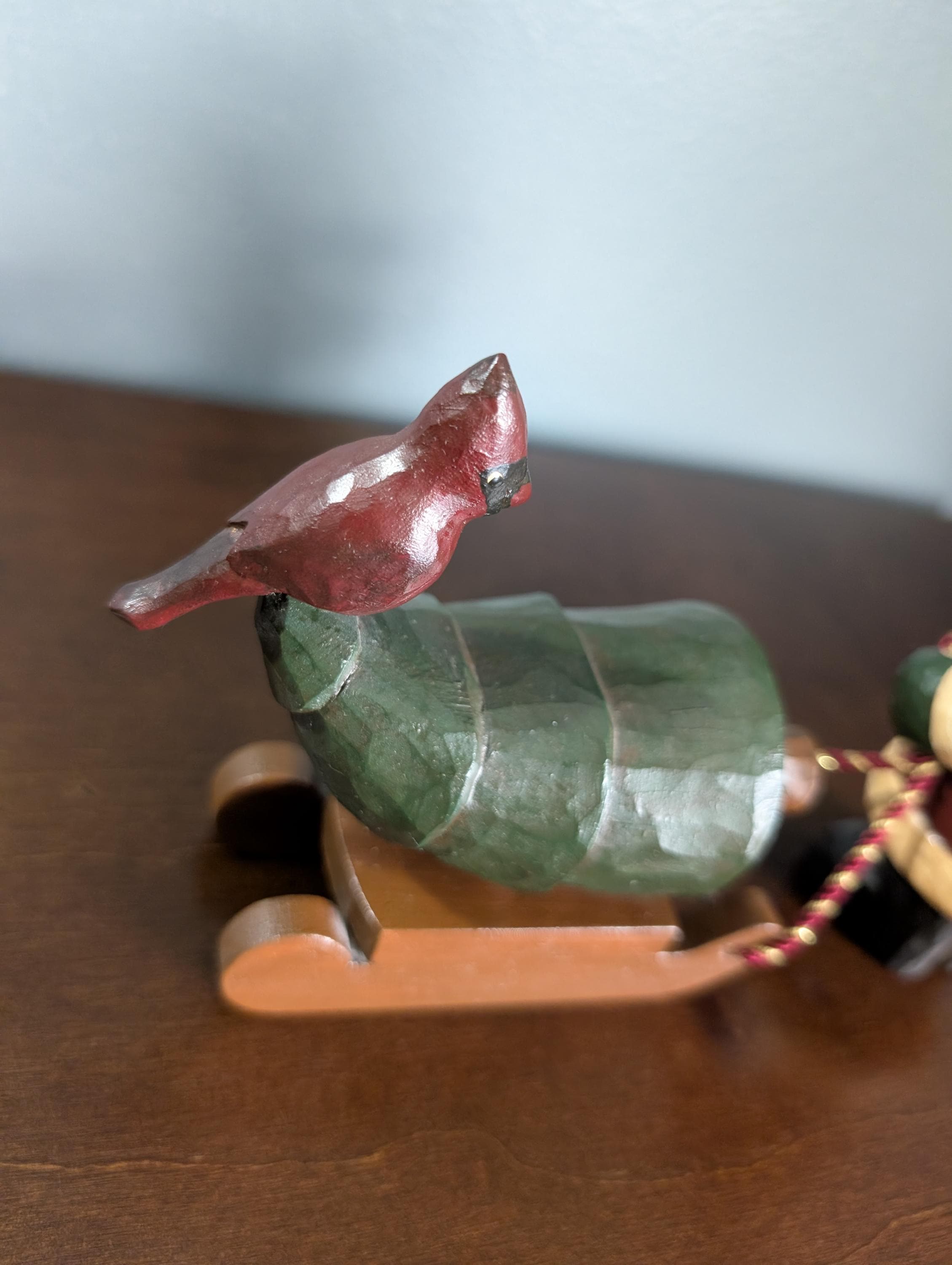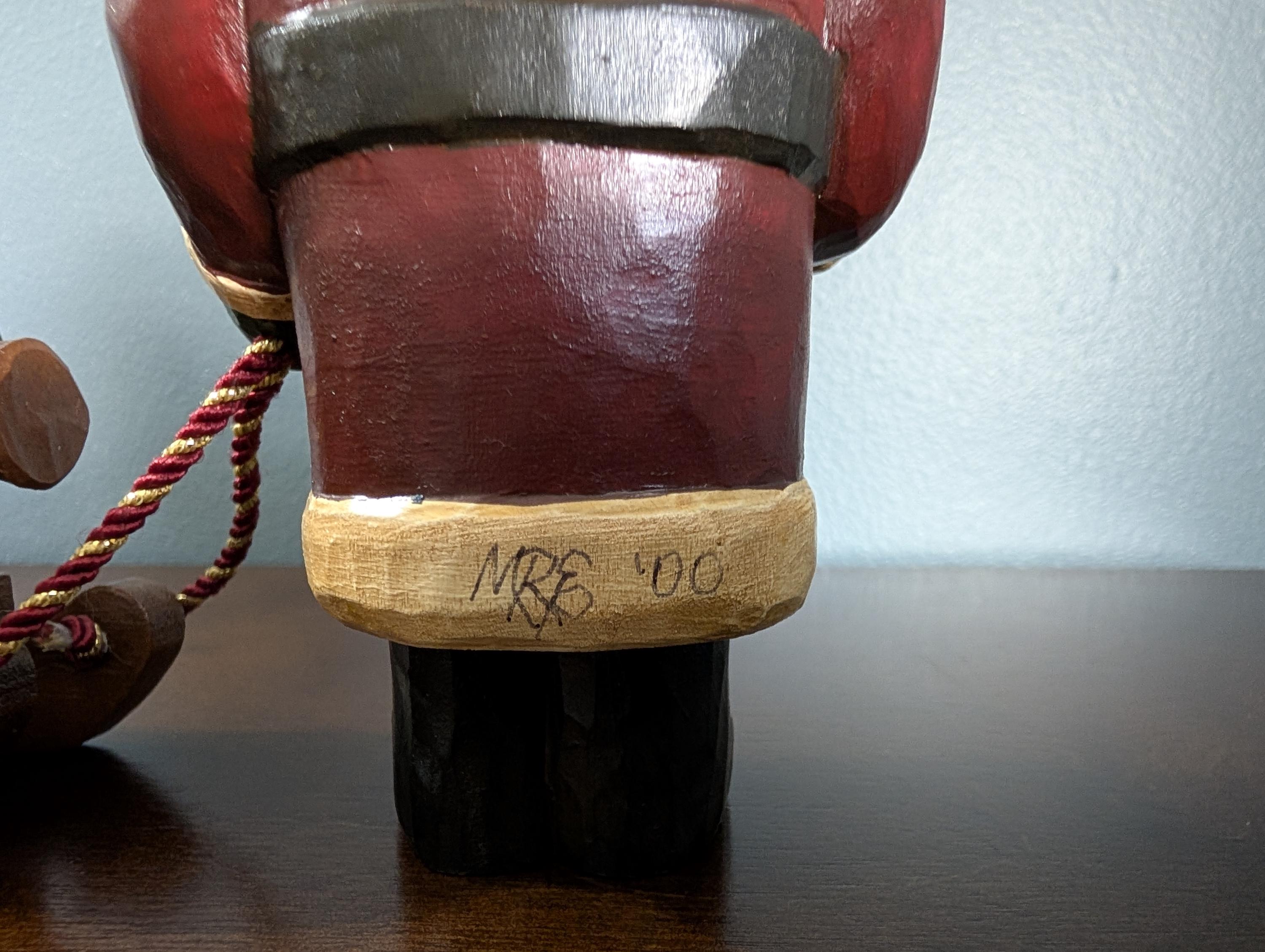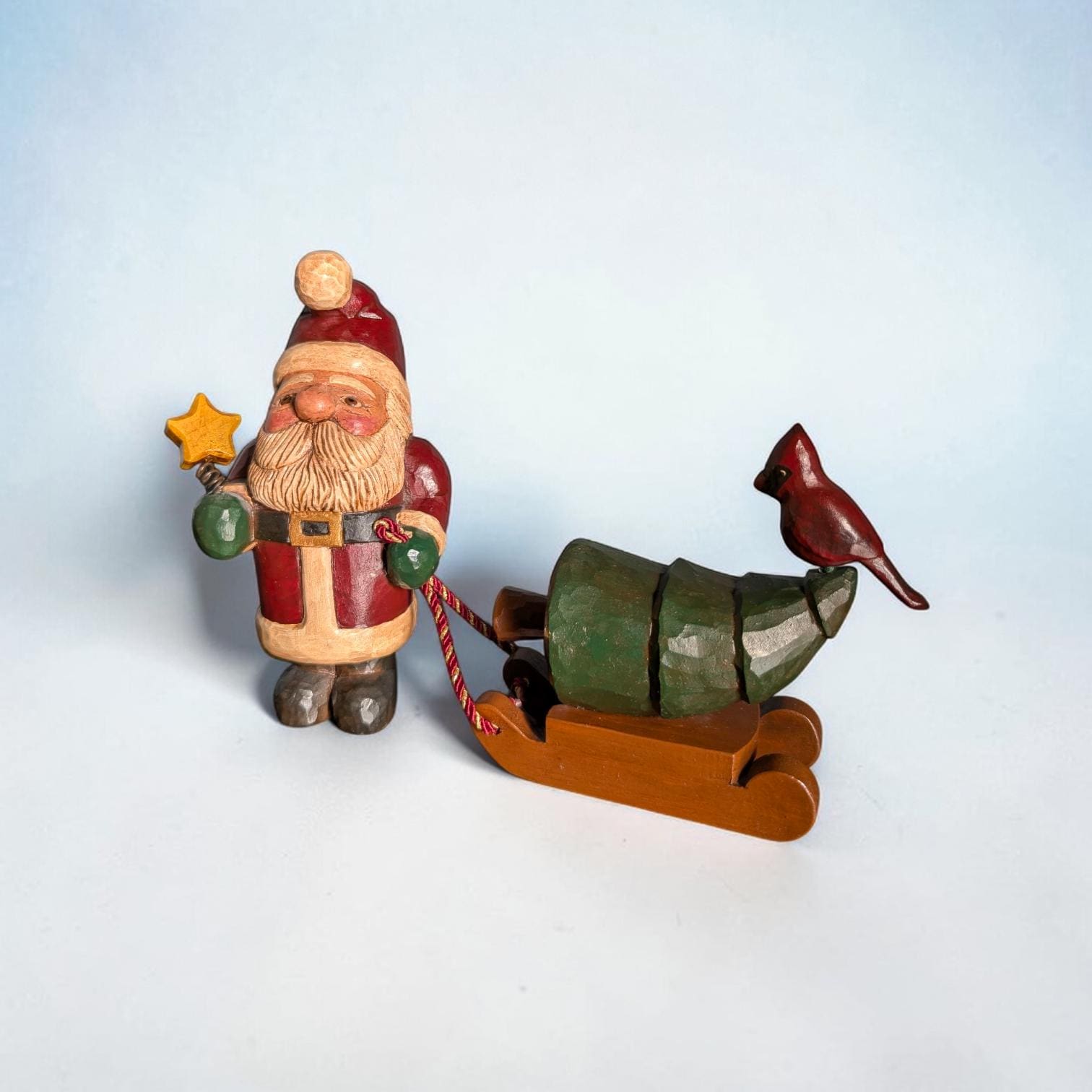 OOAK Hand Carved Wood Primitive Santa with Sled - Artist Signed Folk Art - Rustic Father Christmas Figure - Cardinal